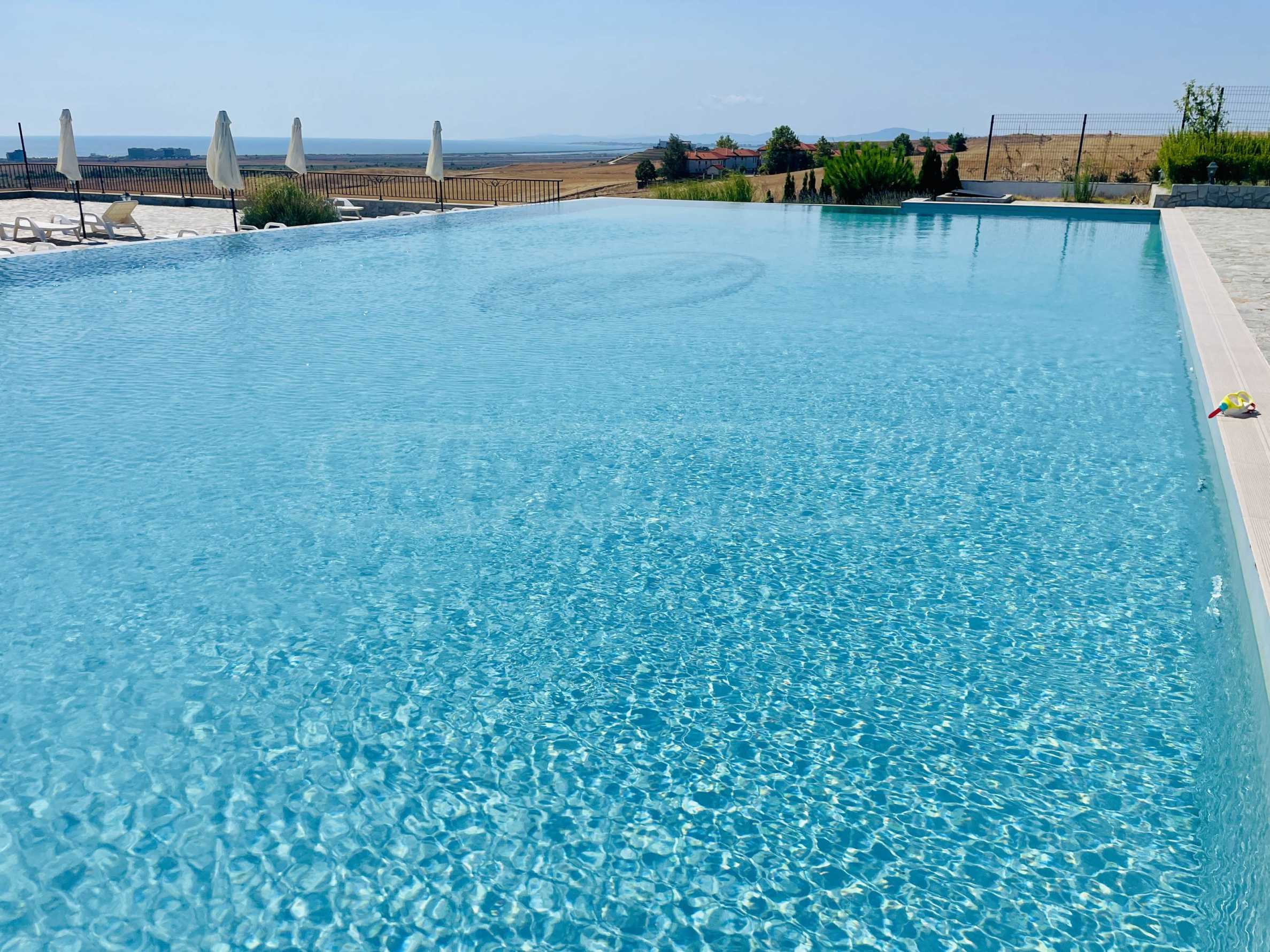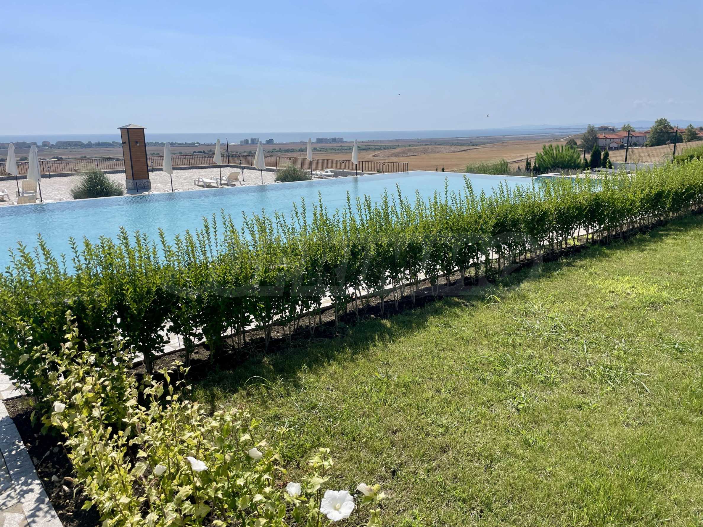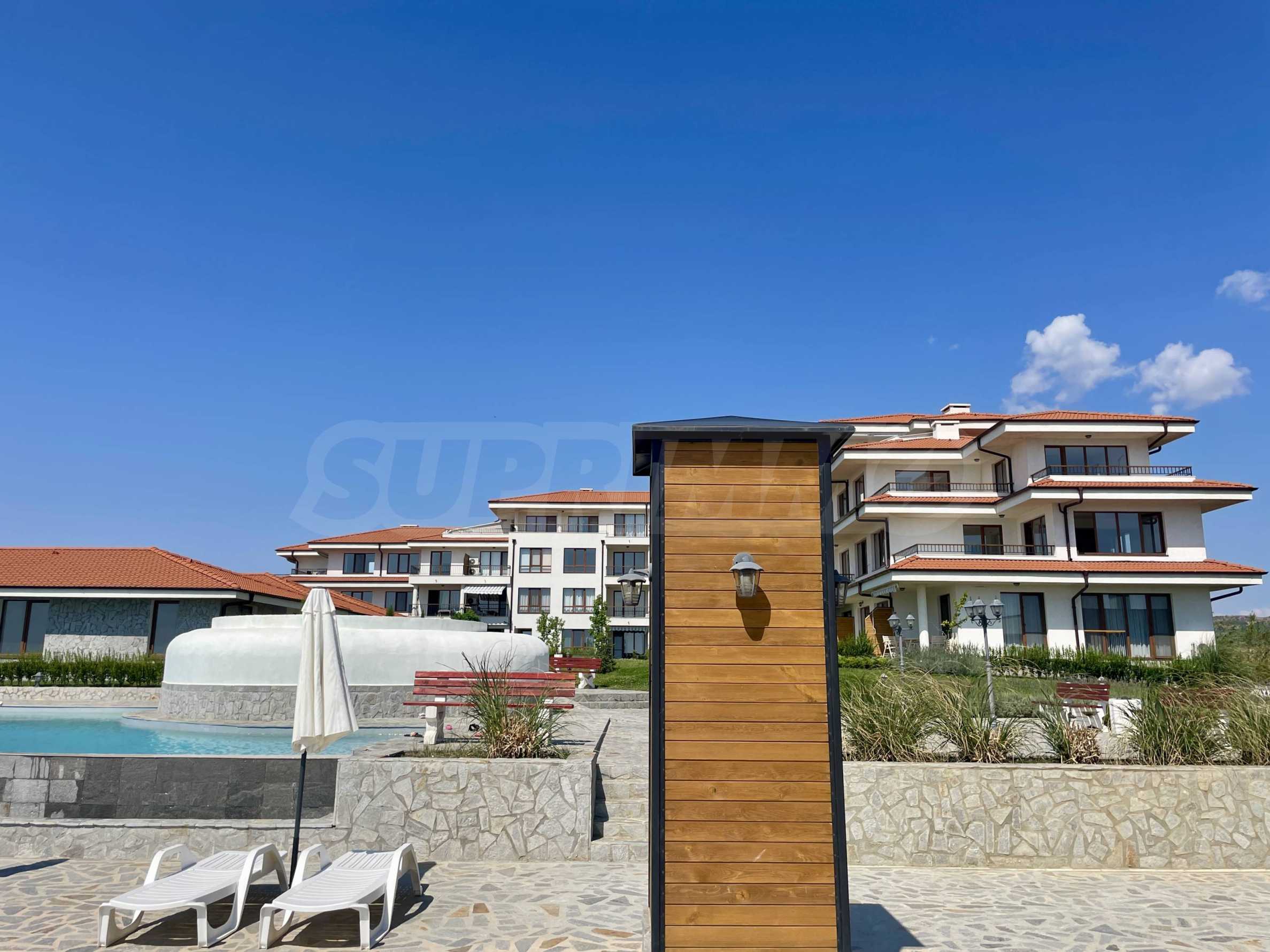 We present for sale a one-story house, part of a new complex, a continuation of an already built and successfully functioning resort of complexes and villas, in the ecologically clean area next to the towns of Aheloy and Kableshkovo. The project includes 2 buildings called "Panorama" and "Muscat", located on the hill with a sea panorama and views of the hills of Stara Planina.