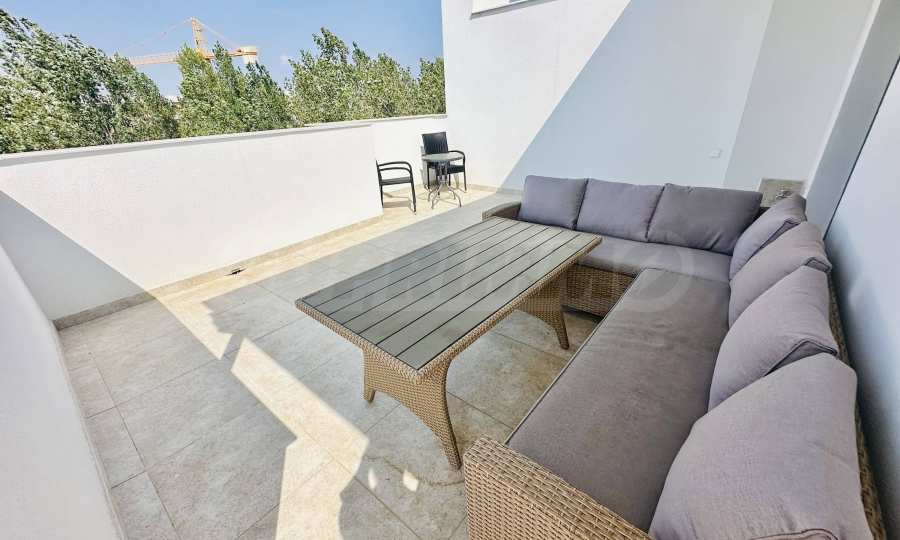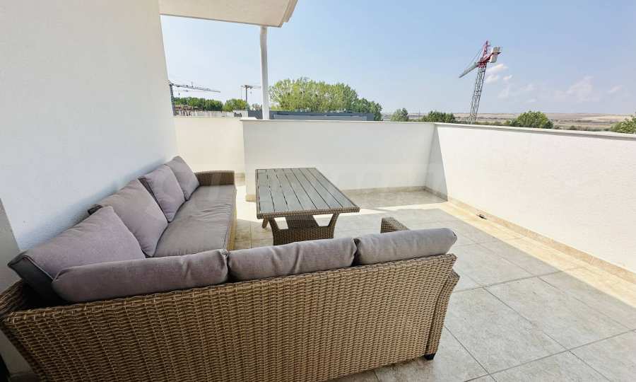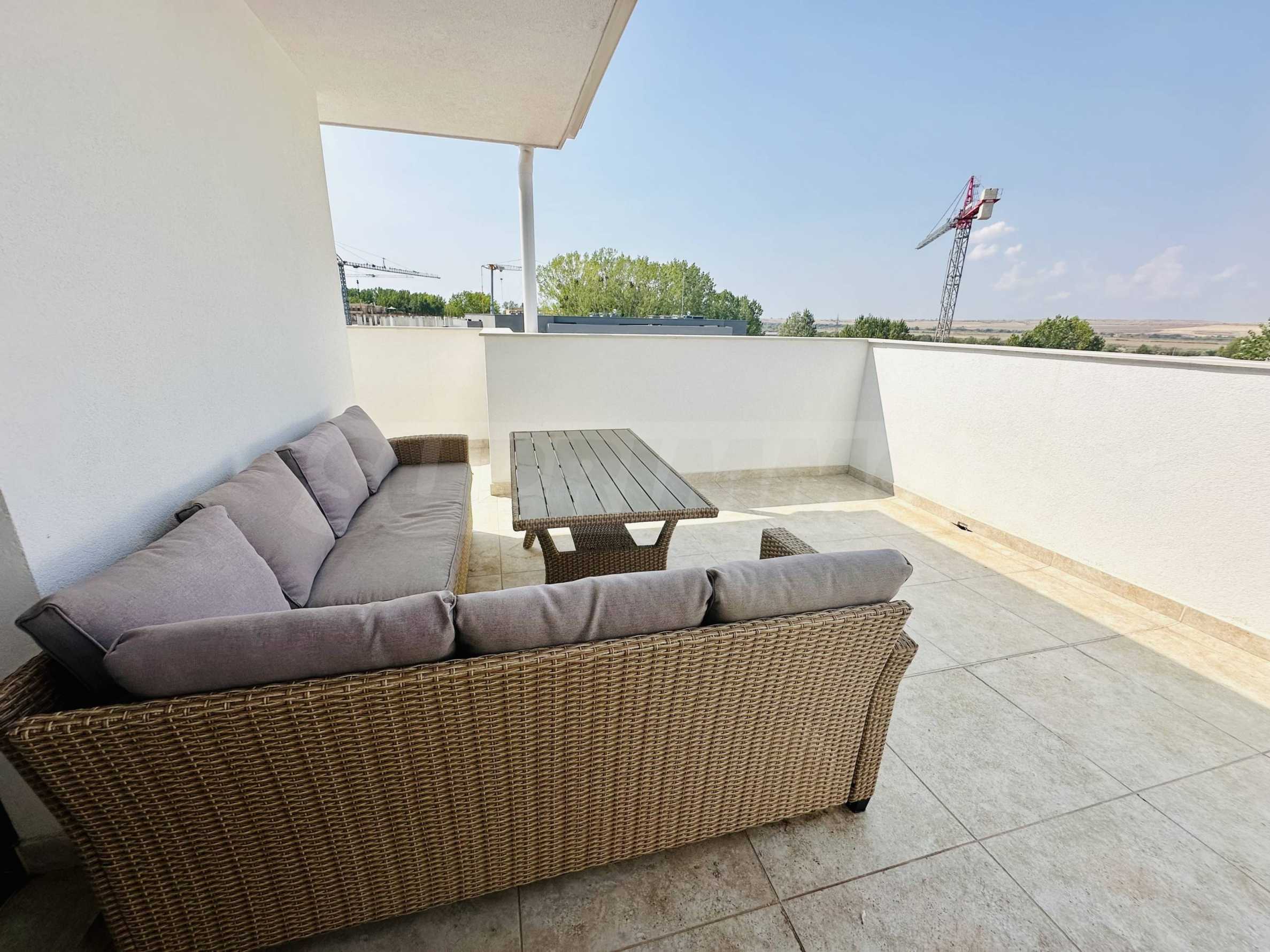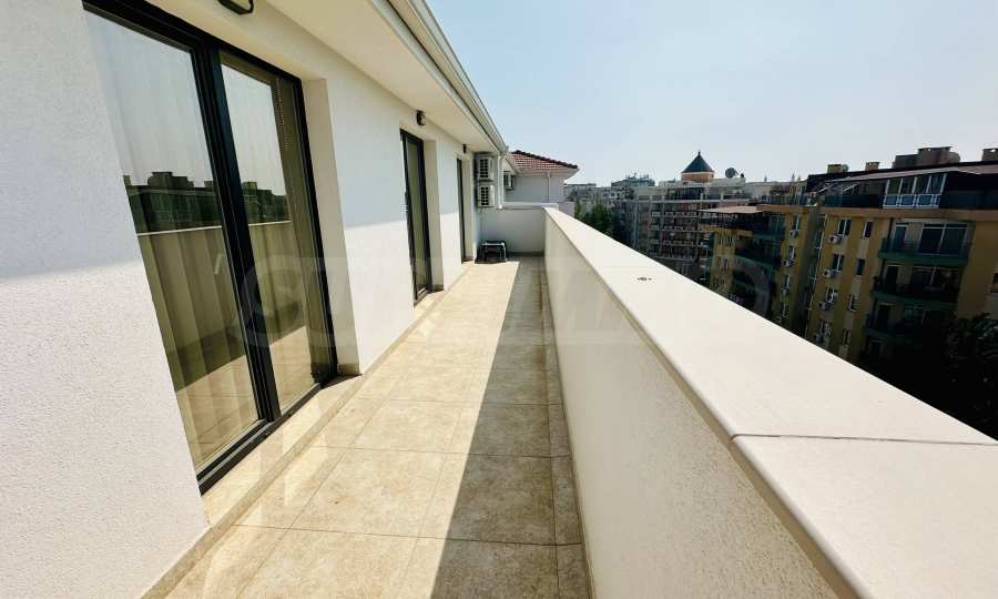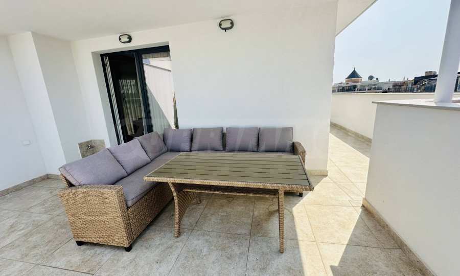 The property has an area of 102.11 m2 and is located on the 6th floor. It is offered fully furnished and equipped, has everything you need for a comfortable life, including underfloor heating. Fully ready to move in or to rent. It has an entrance hall, a spacious living room with a fully equipped kitchen, a bathroom with a toilet, a bedroom and a large roof terrace with a view of the garden of the complex and neighboring buildings.