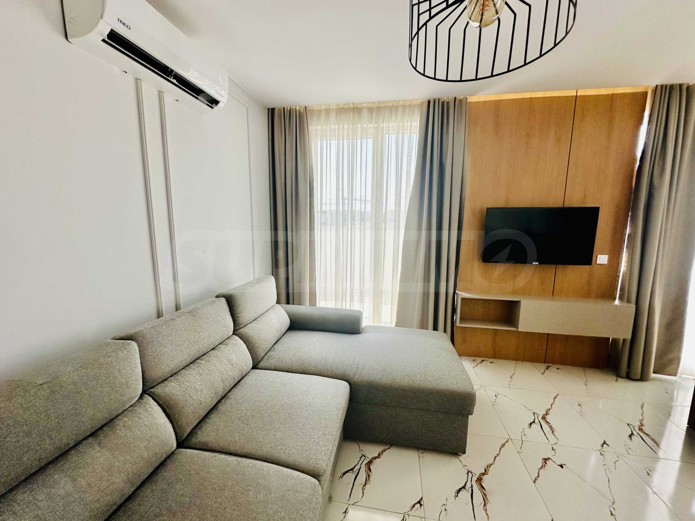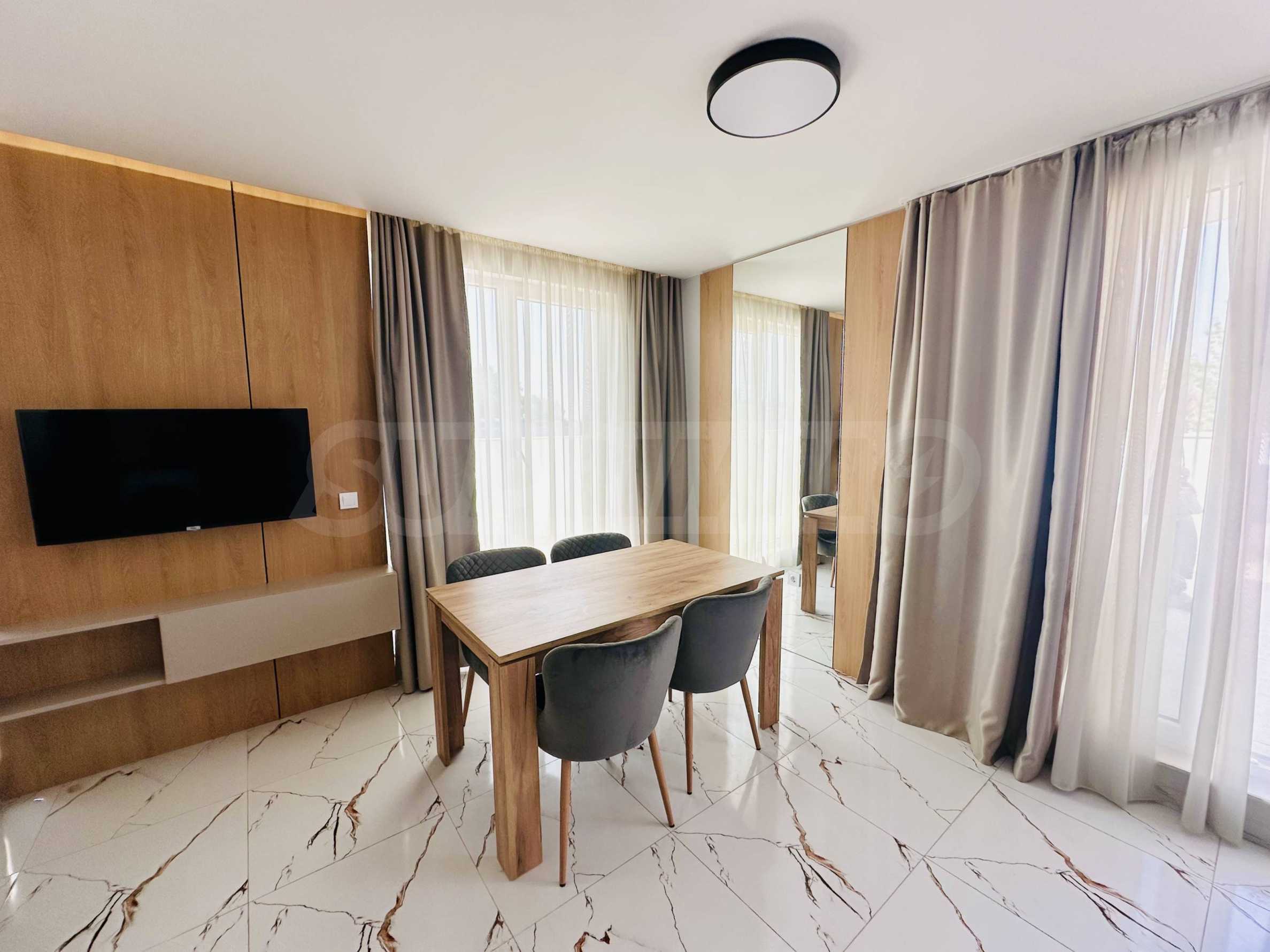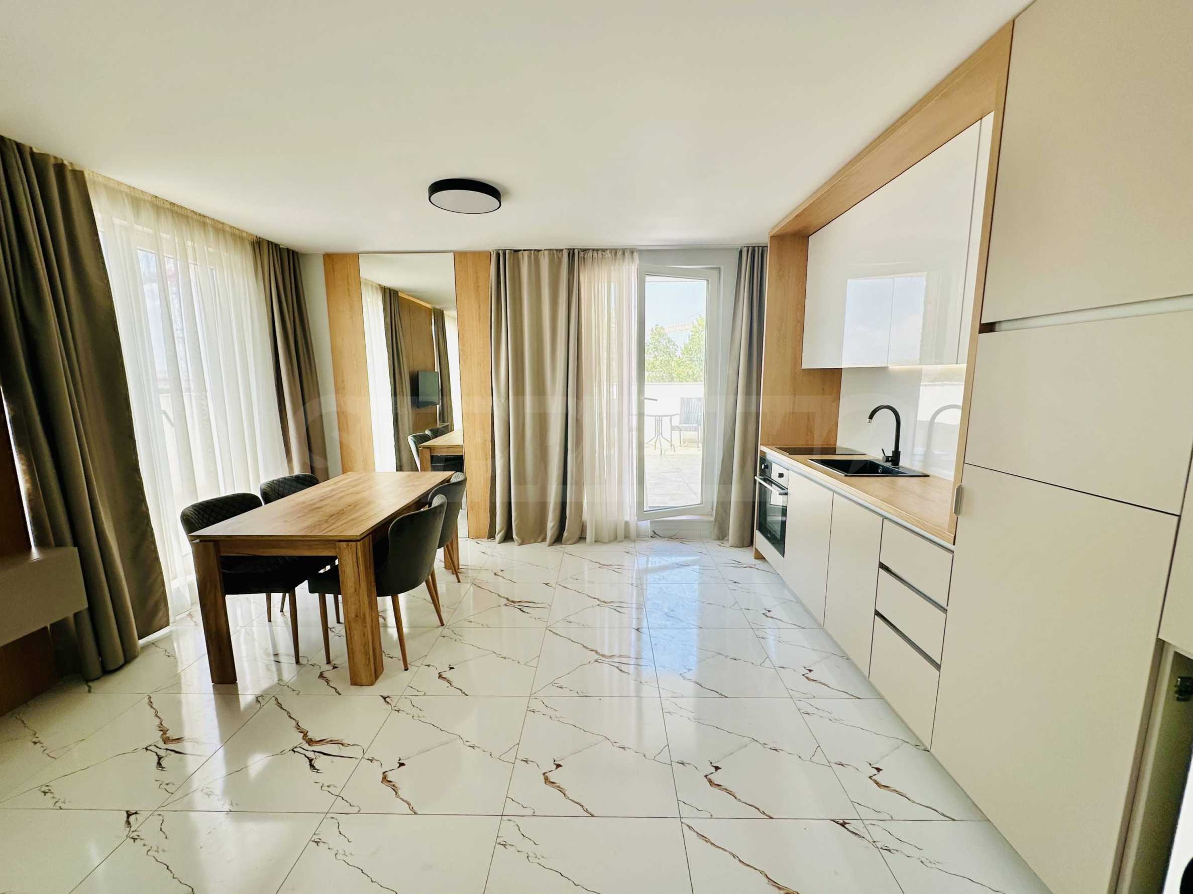 We present for sale a modernly furnished two-room apartment, in a new complex with a boutique design next to the park in Sunny Beach.