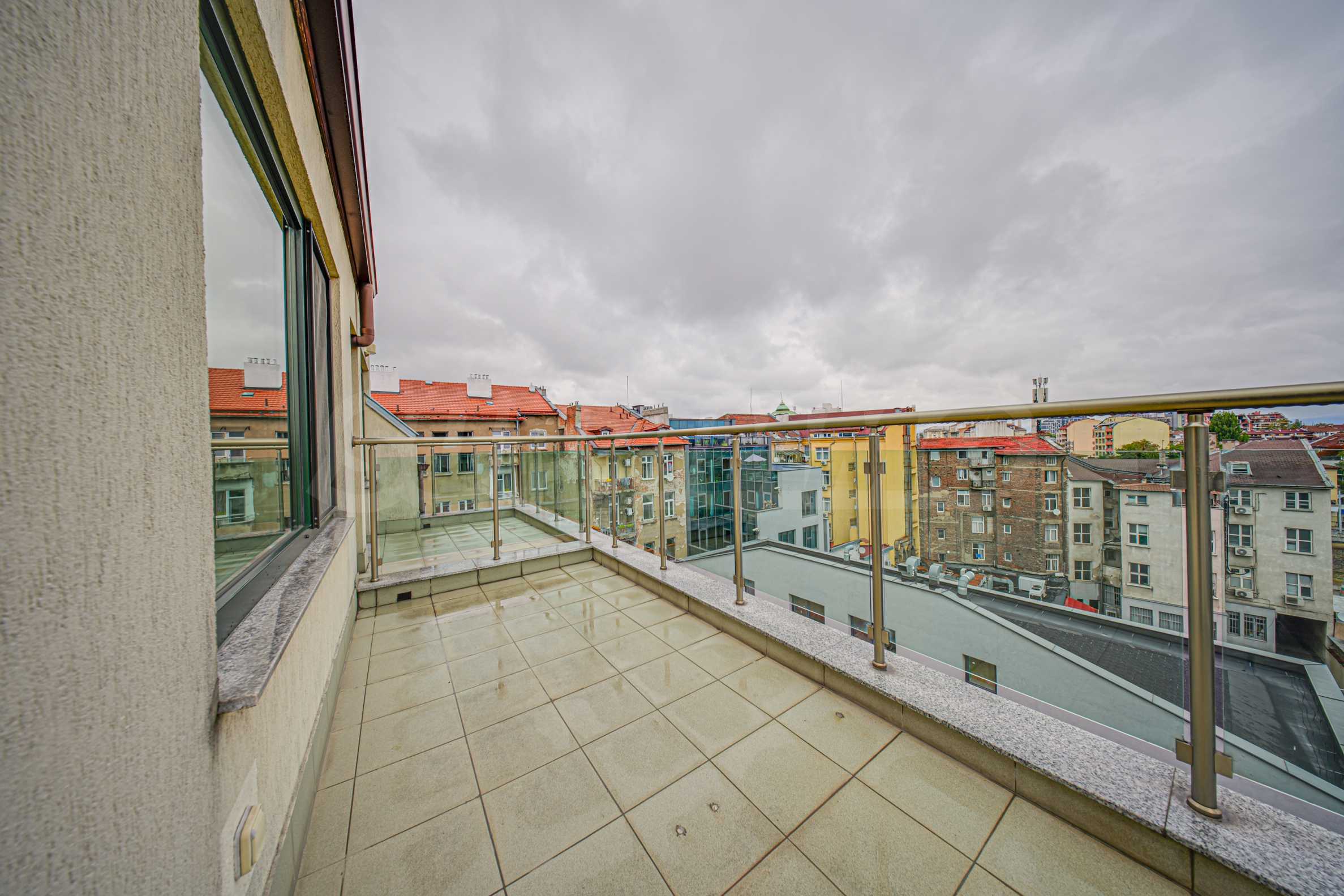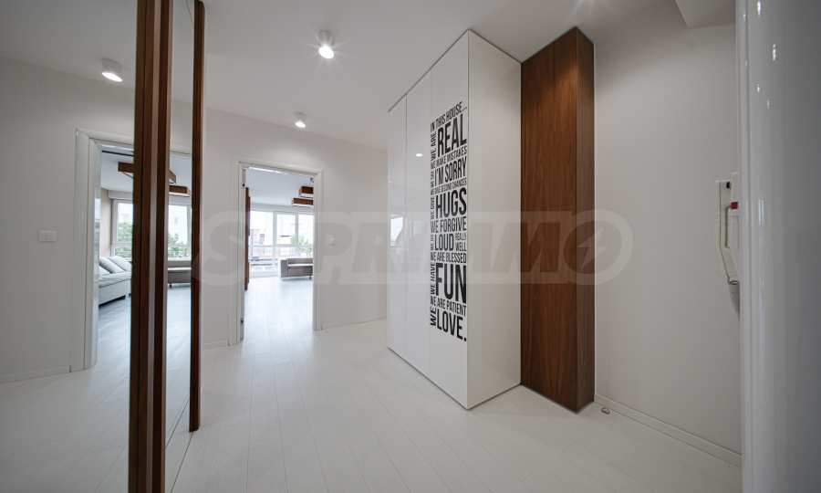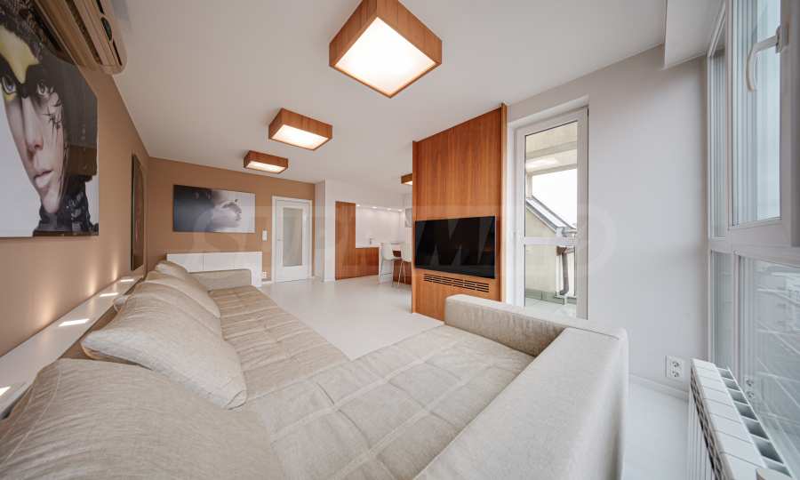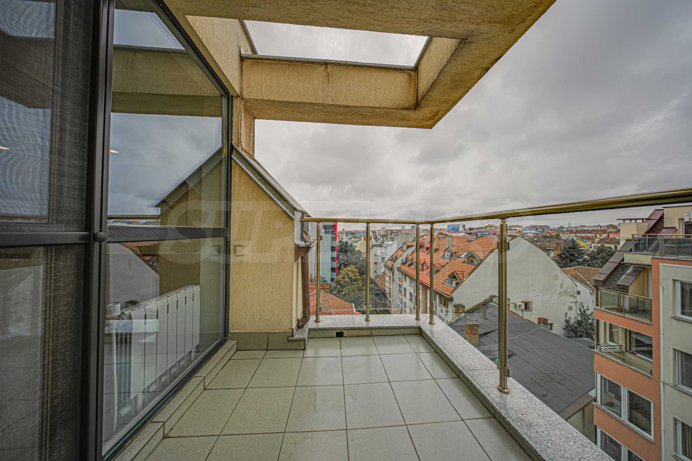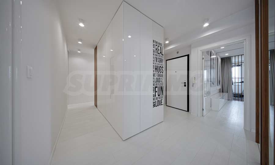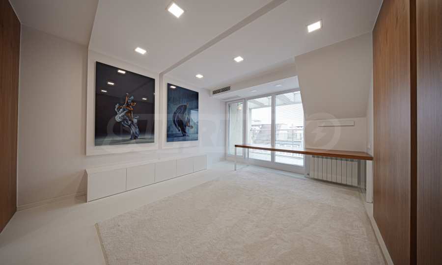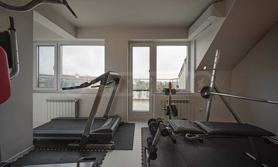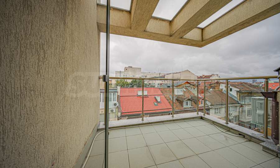 We present a spacious, very luxuriously furnished apartment in the ideal city center, in a new building, with an underground parking space (200 euros/391 leva per month). It is located on the entire seventh floor and has wonderful panoramic views.