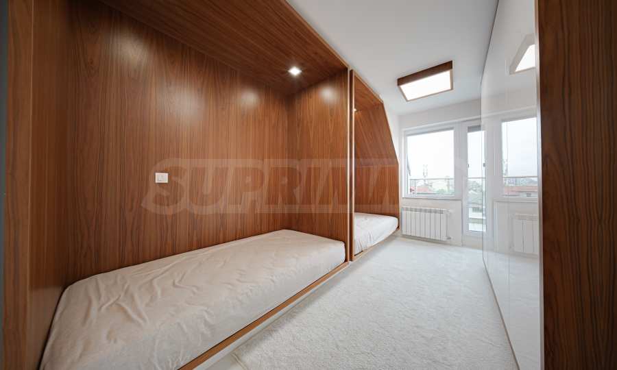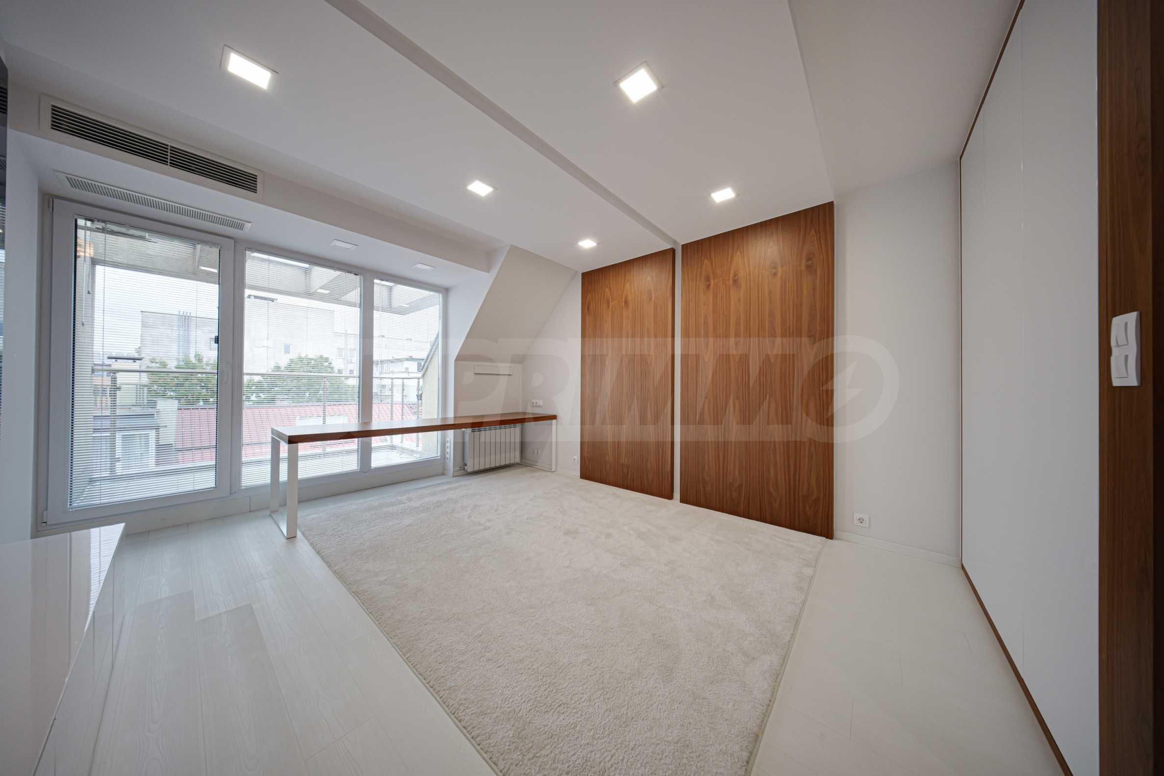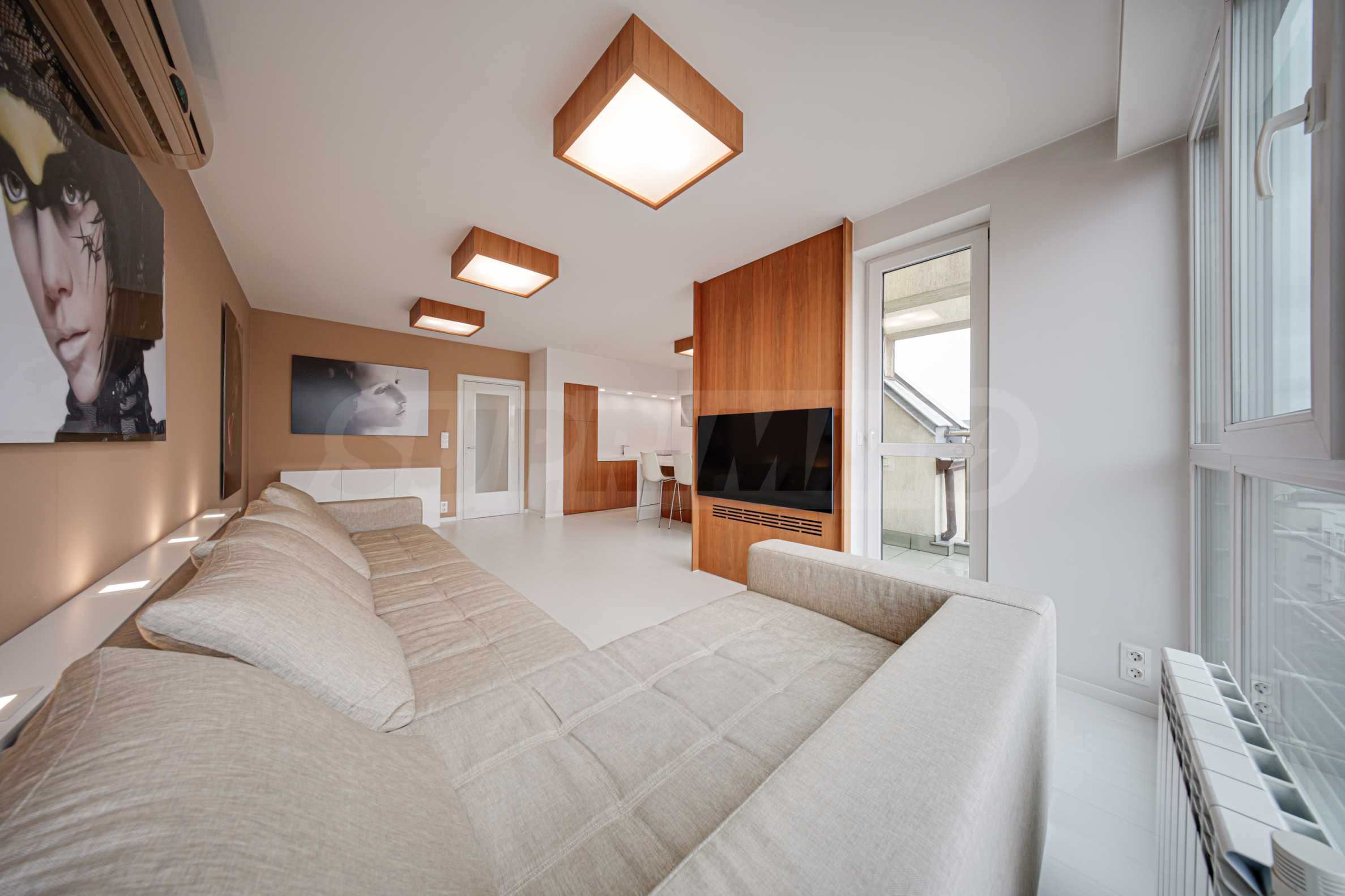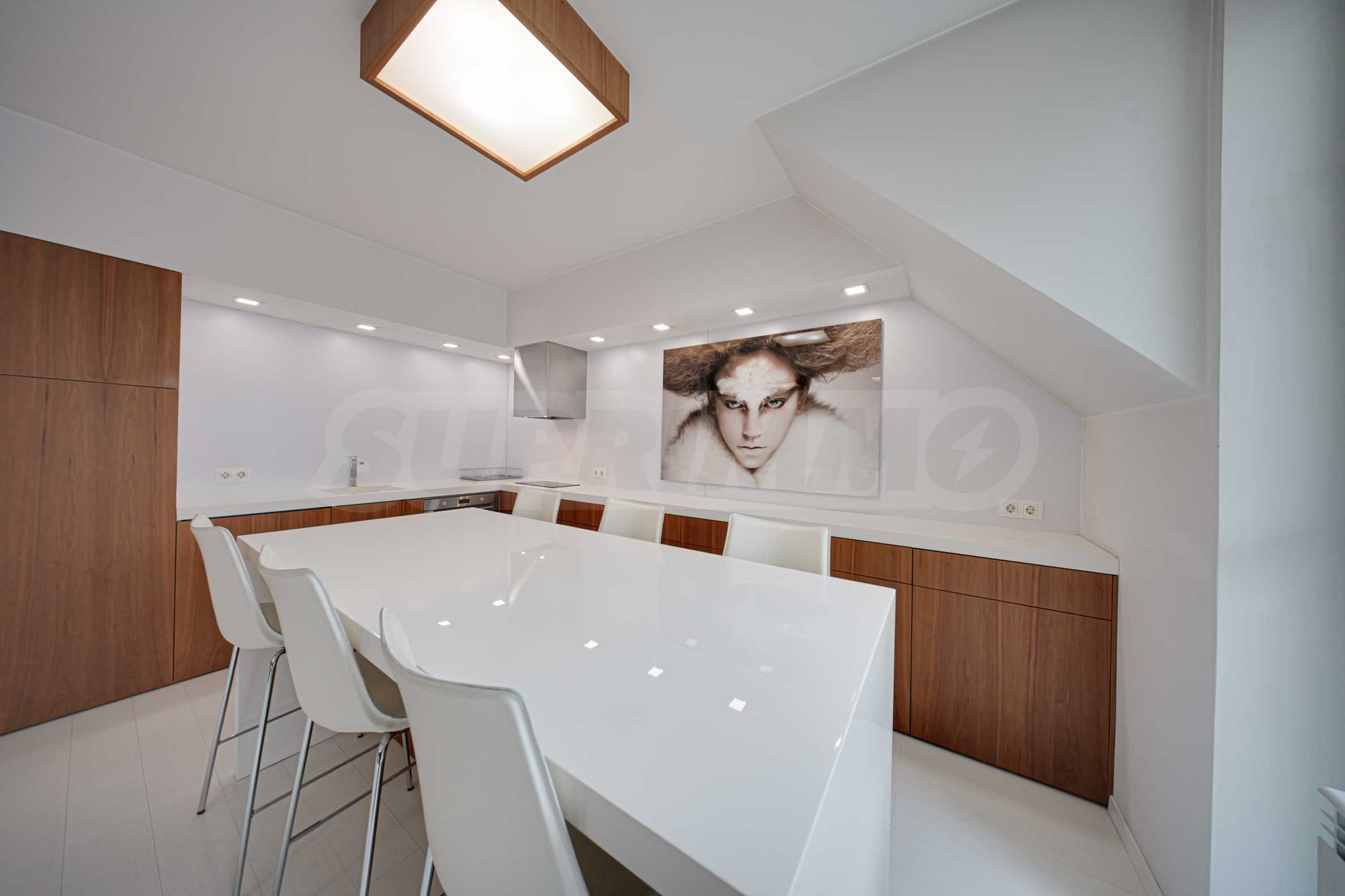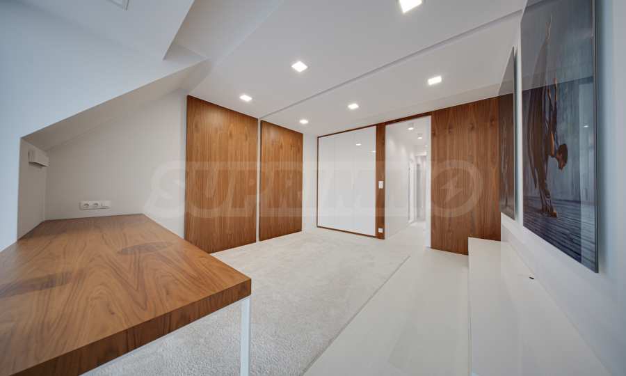 We present a spacious, very luxuriously furnished apartment in the ideal city center, in a new building, with an underground parking space (200 euros/391 leva per month). It is located on the entire seventh floor and has wonderful panoramic views.