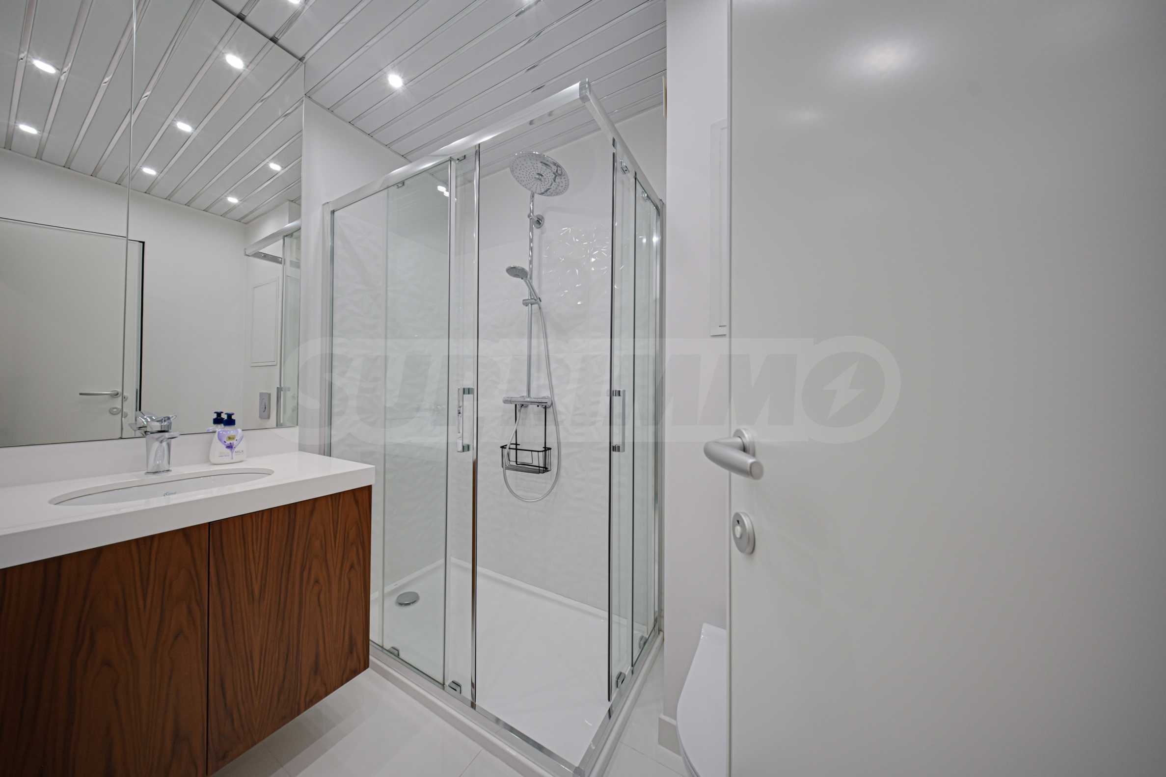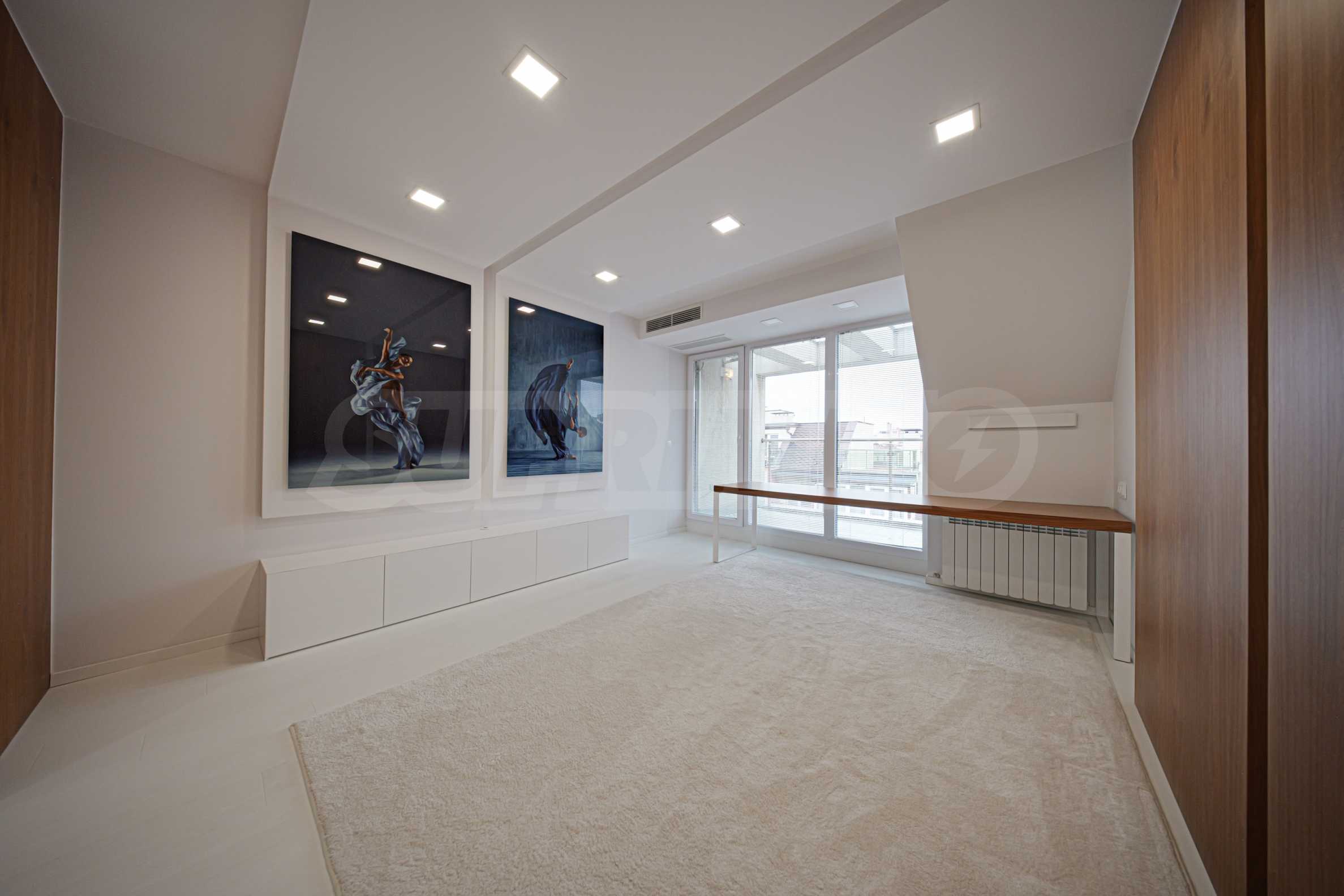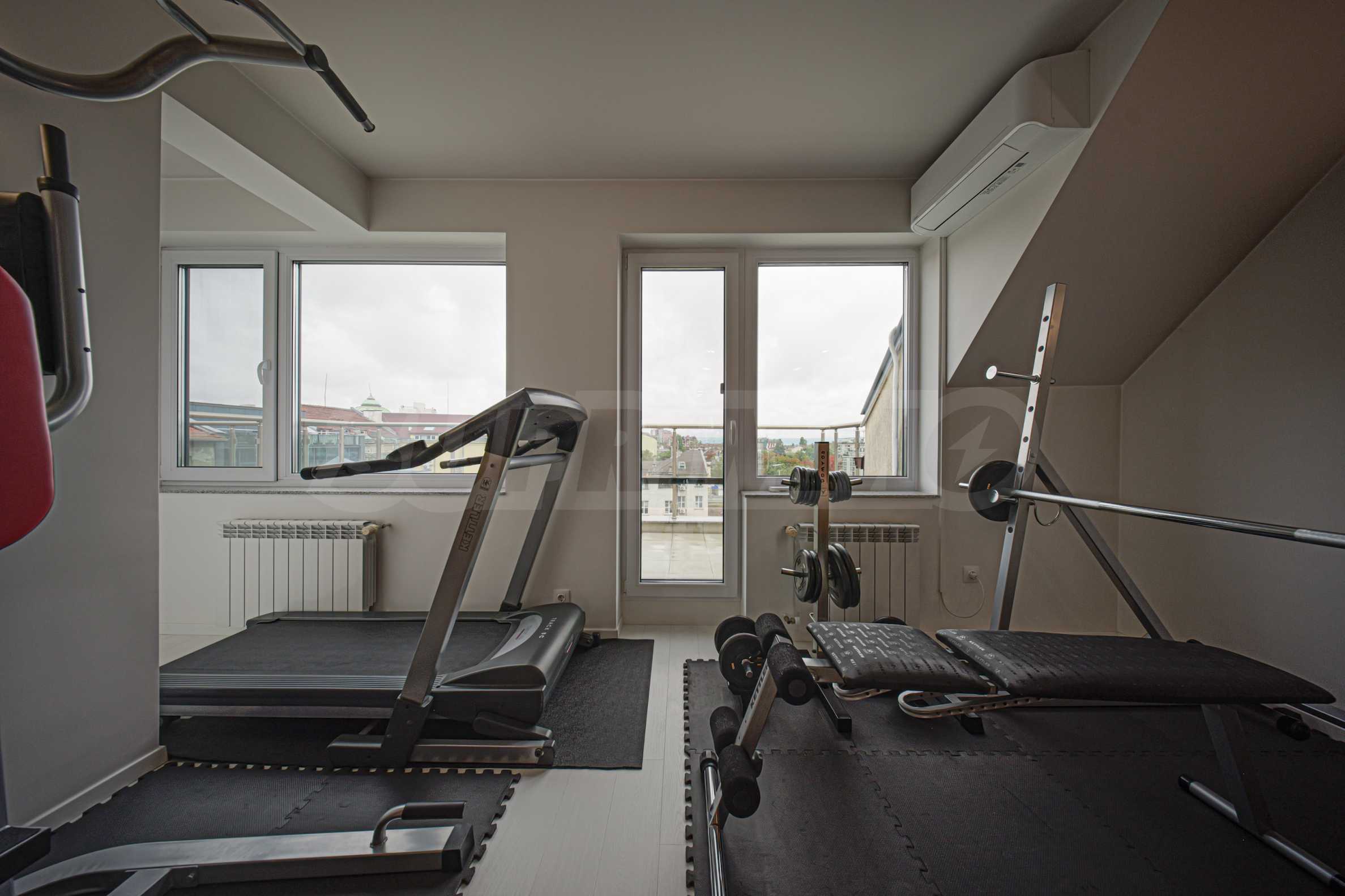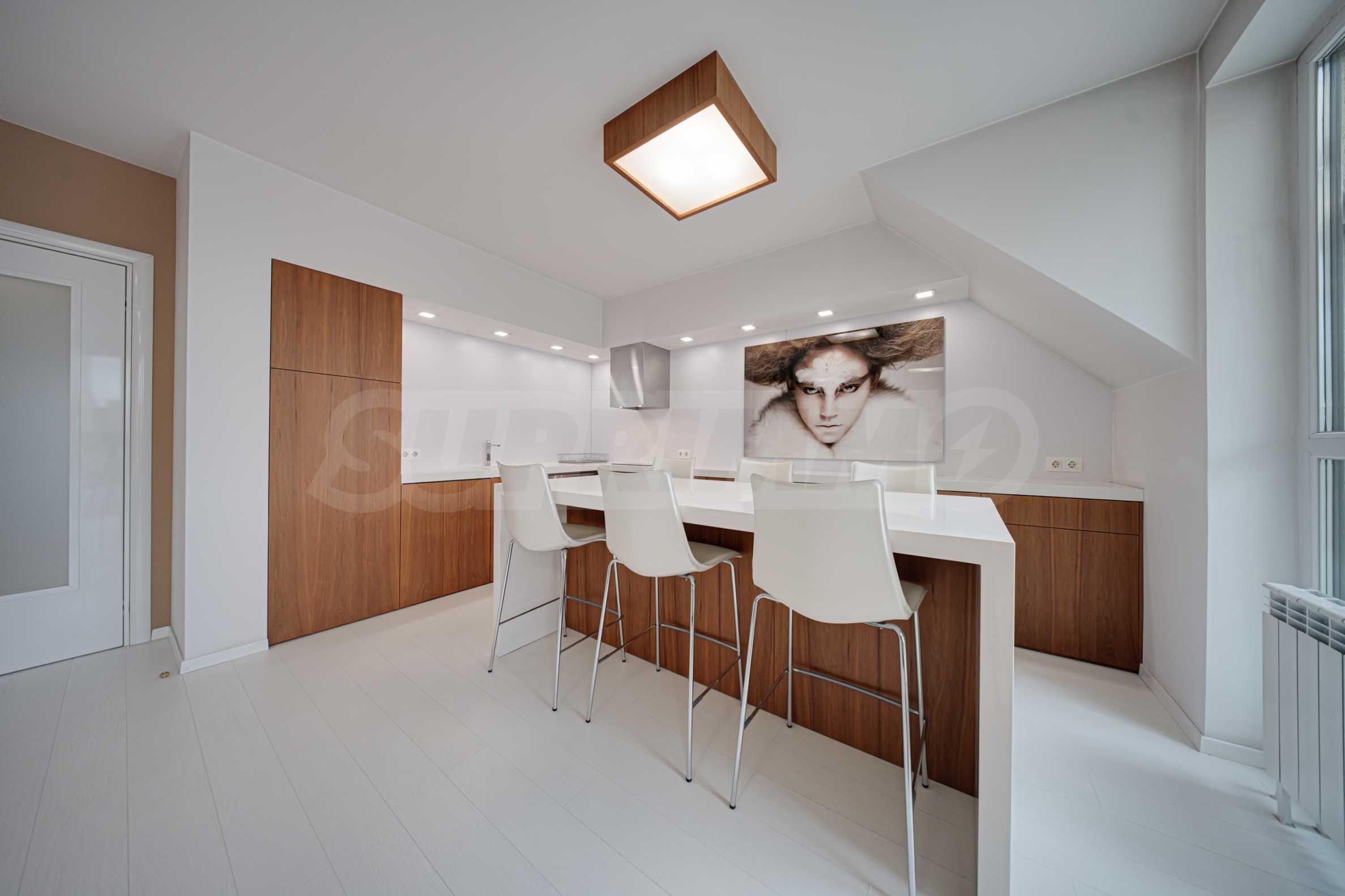 We present a spacious, very luxuriously furnished apartment in the ideal city center, in a new building, with an underground parking space (200 euros/391 leva per month). It is located on the entire seventh floor and has wonderful panoramic views.