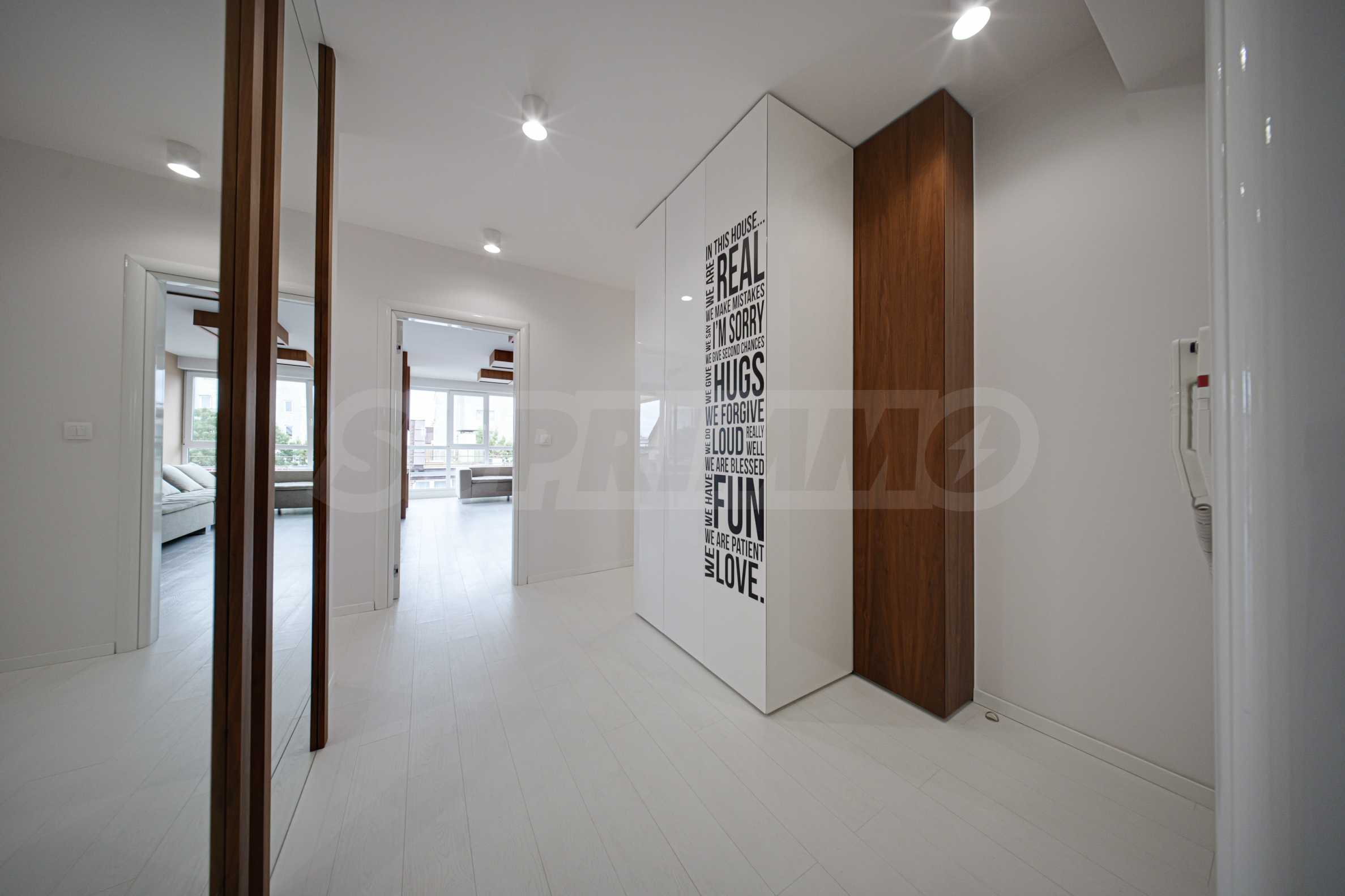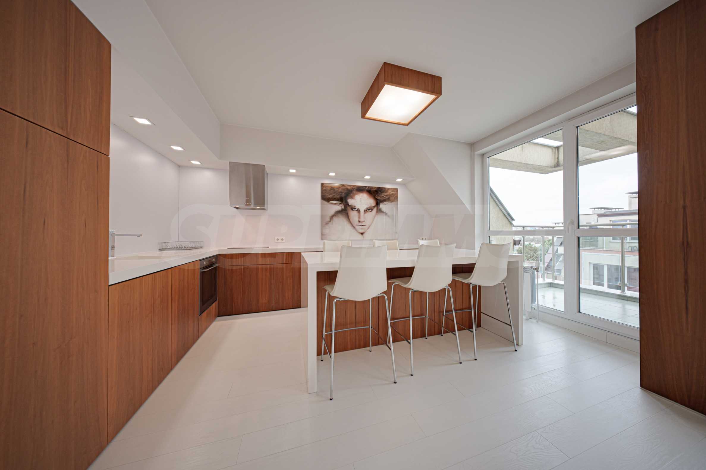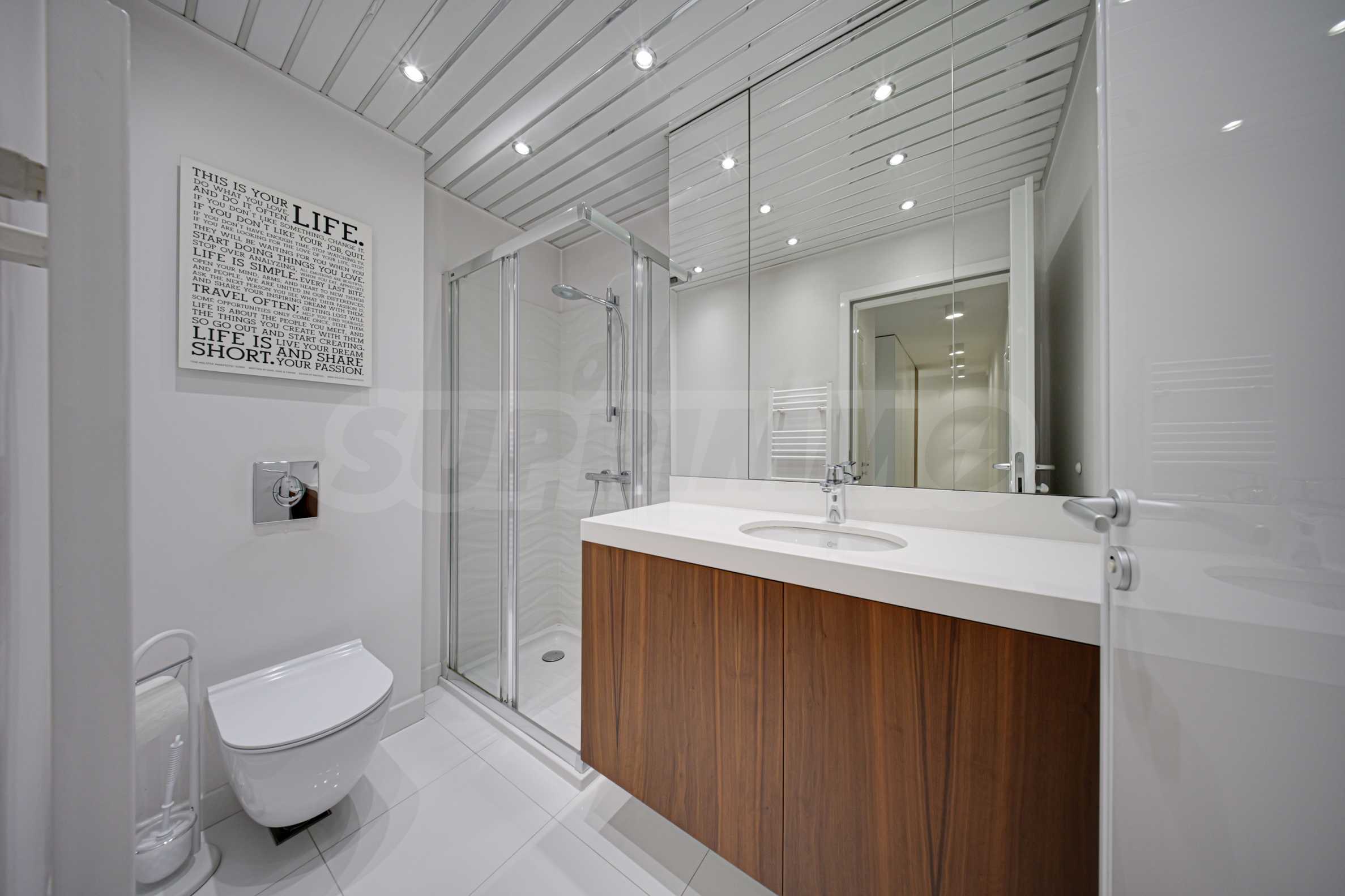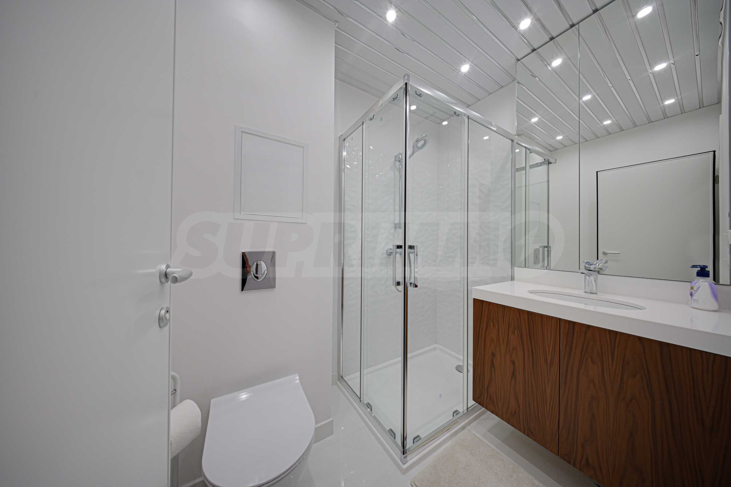 We present a spacious, very luxuriously furnished apartment in the ideal city center, in a new building, with an underground parking space (200 euros/391 leva per month). It is located on the entire seventh floor and has wonderful panoramic views.