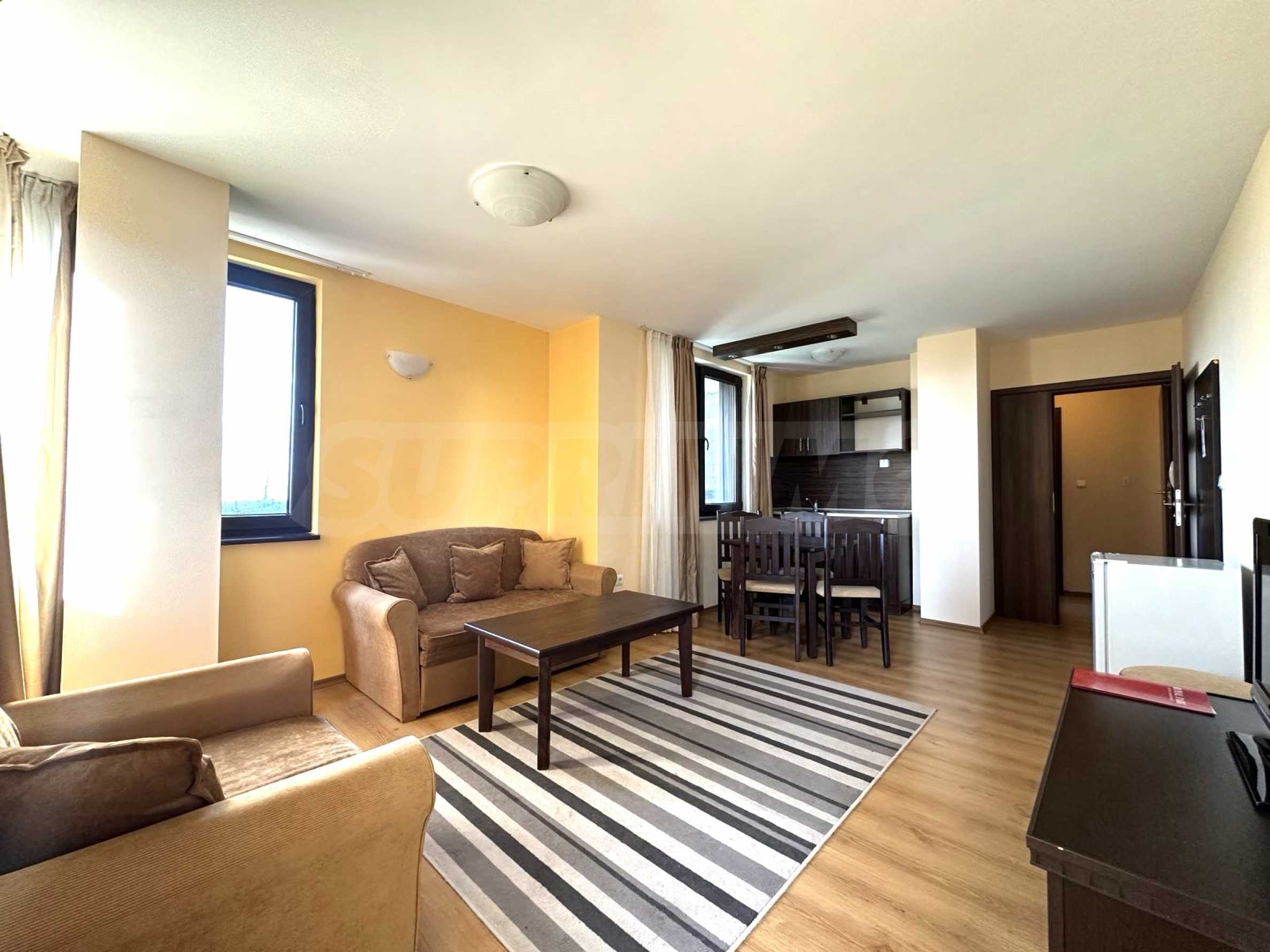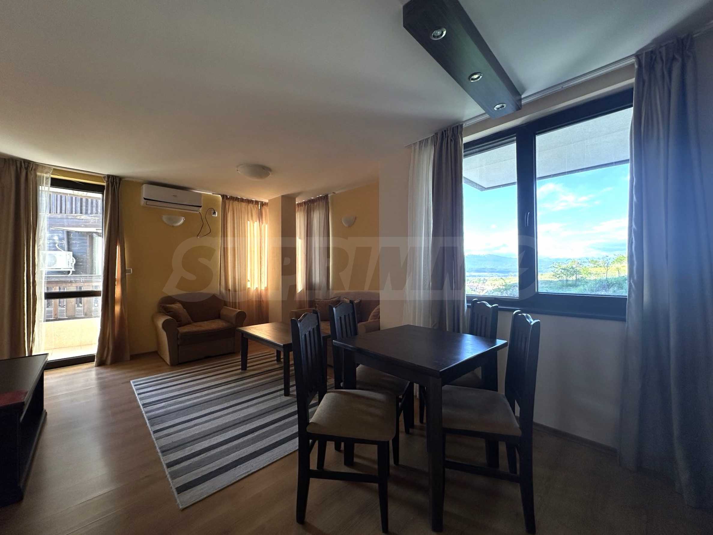 Fully furnished two-room apartment in a hotel complex, located at the foot of the Pirin mountain, just a few minutes from the gondola lift and the ski slopes of Bansko.