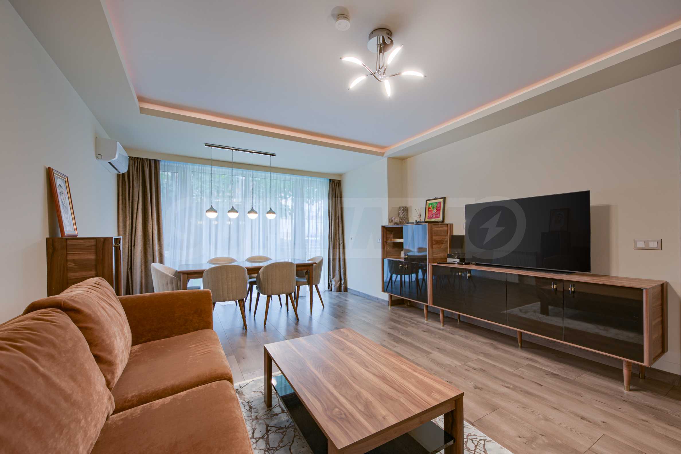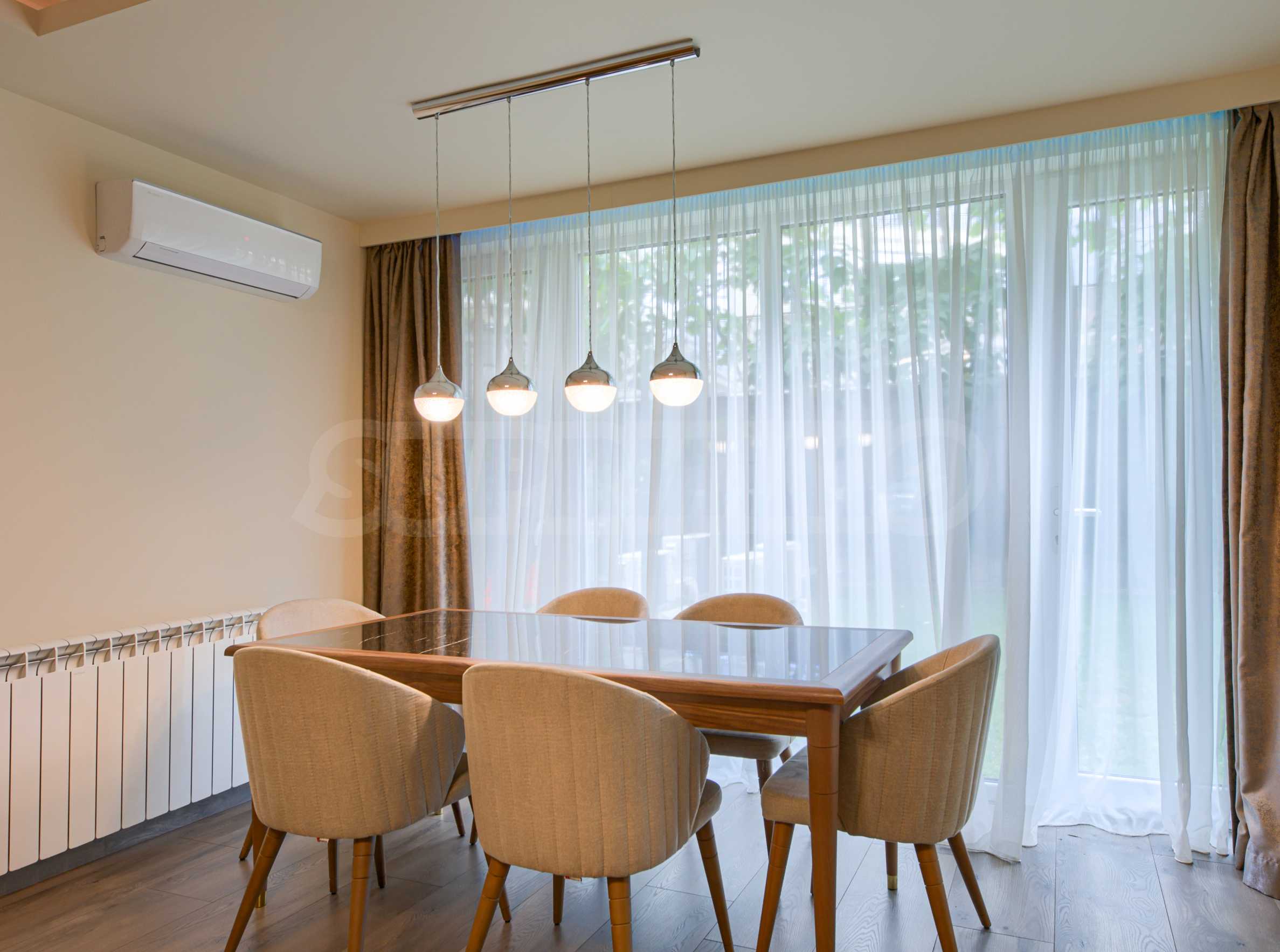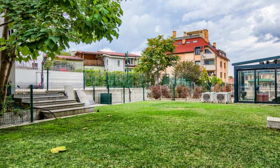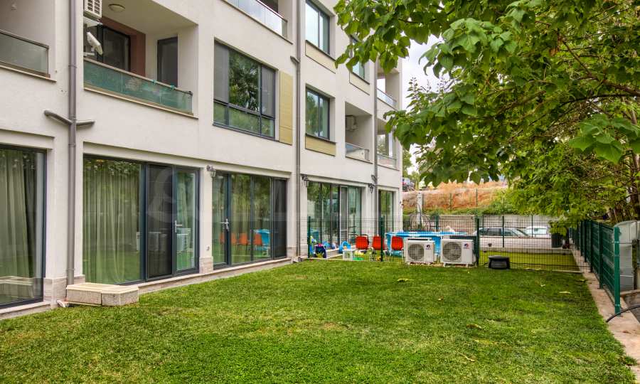 We present a brand new three-room apartment with a yard in the preferred Sofia neighborhood "Dragalevtsi". This part of the city offers cleaner air, more peace and quiet at the foot of Vitosha Mountain. The National Nature Park is only one and a half kilometers away, and the National Palace of Culture is a 12-minute drive away.