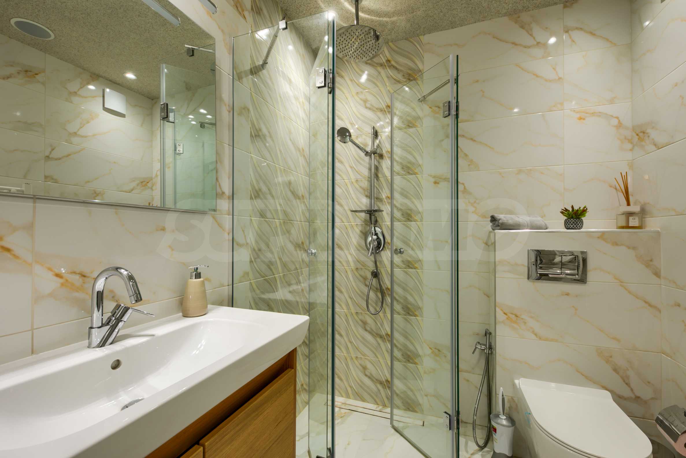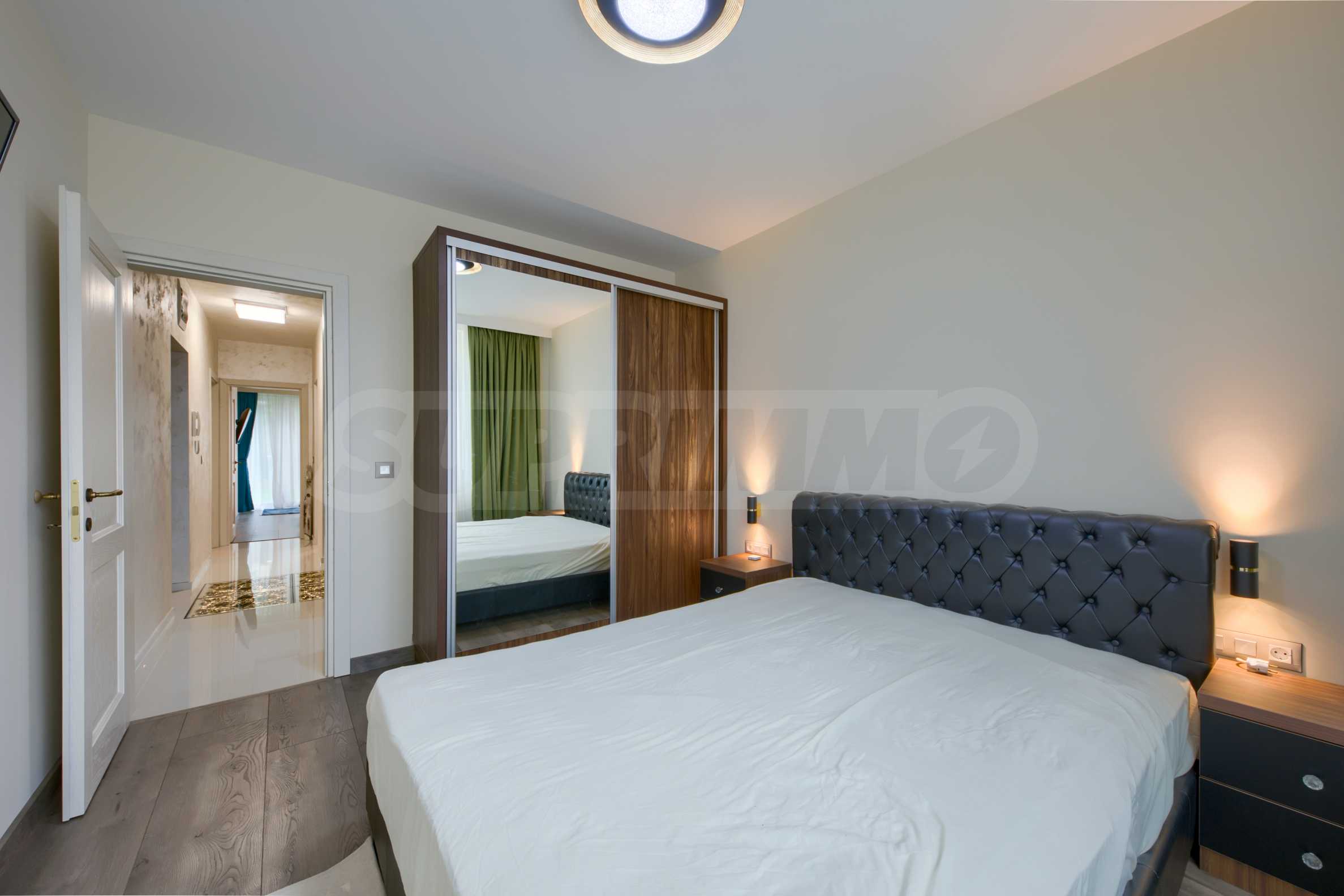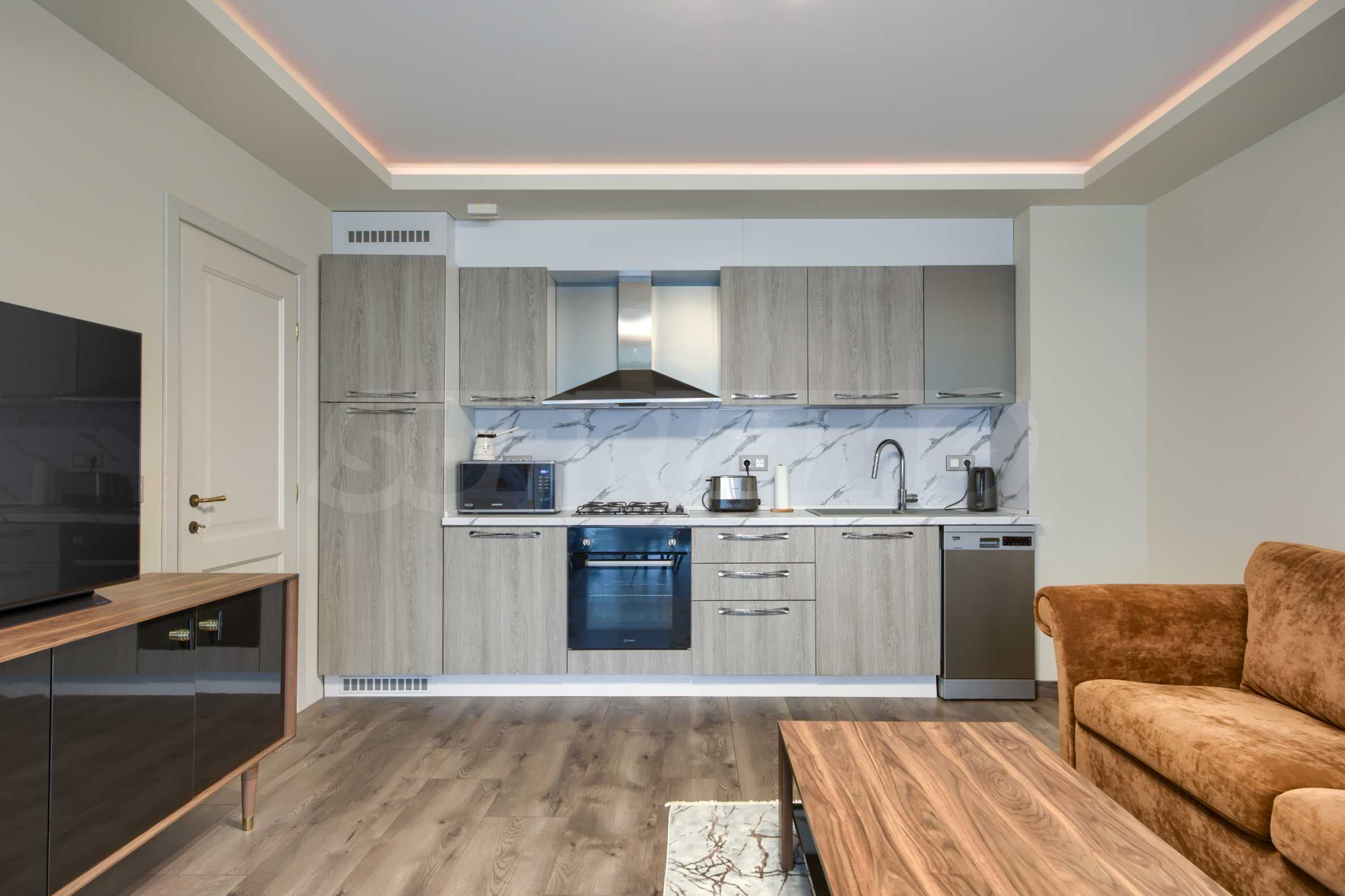 We present a brand new three-room apartment with a yard in the preferred Sofia neighborhood "Dragalevtsi". This part of the city offers cleaner air, more peace and quiet at the foot of Vitosha Mountain. The National Nature Park is only one and a half kilometers away, and the National Palace of Culture is a 12-minute drive away.
