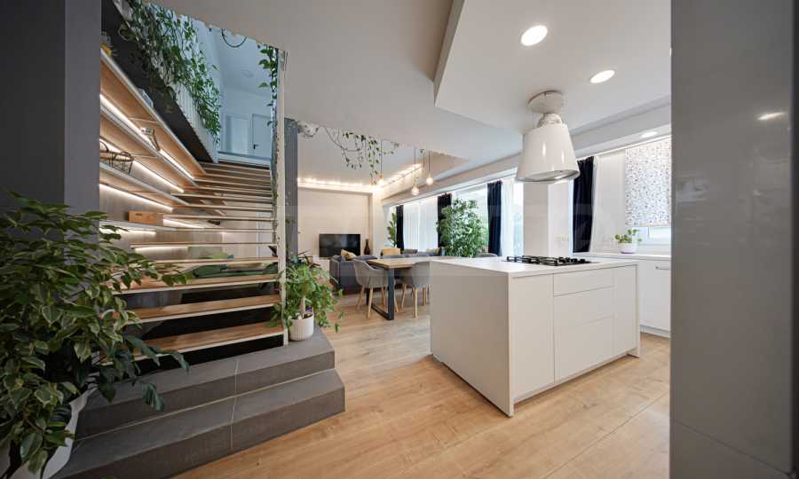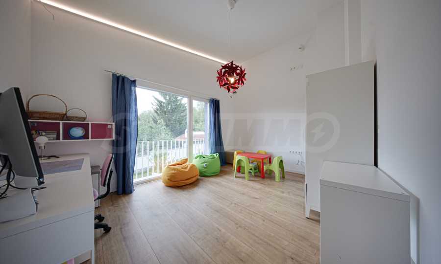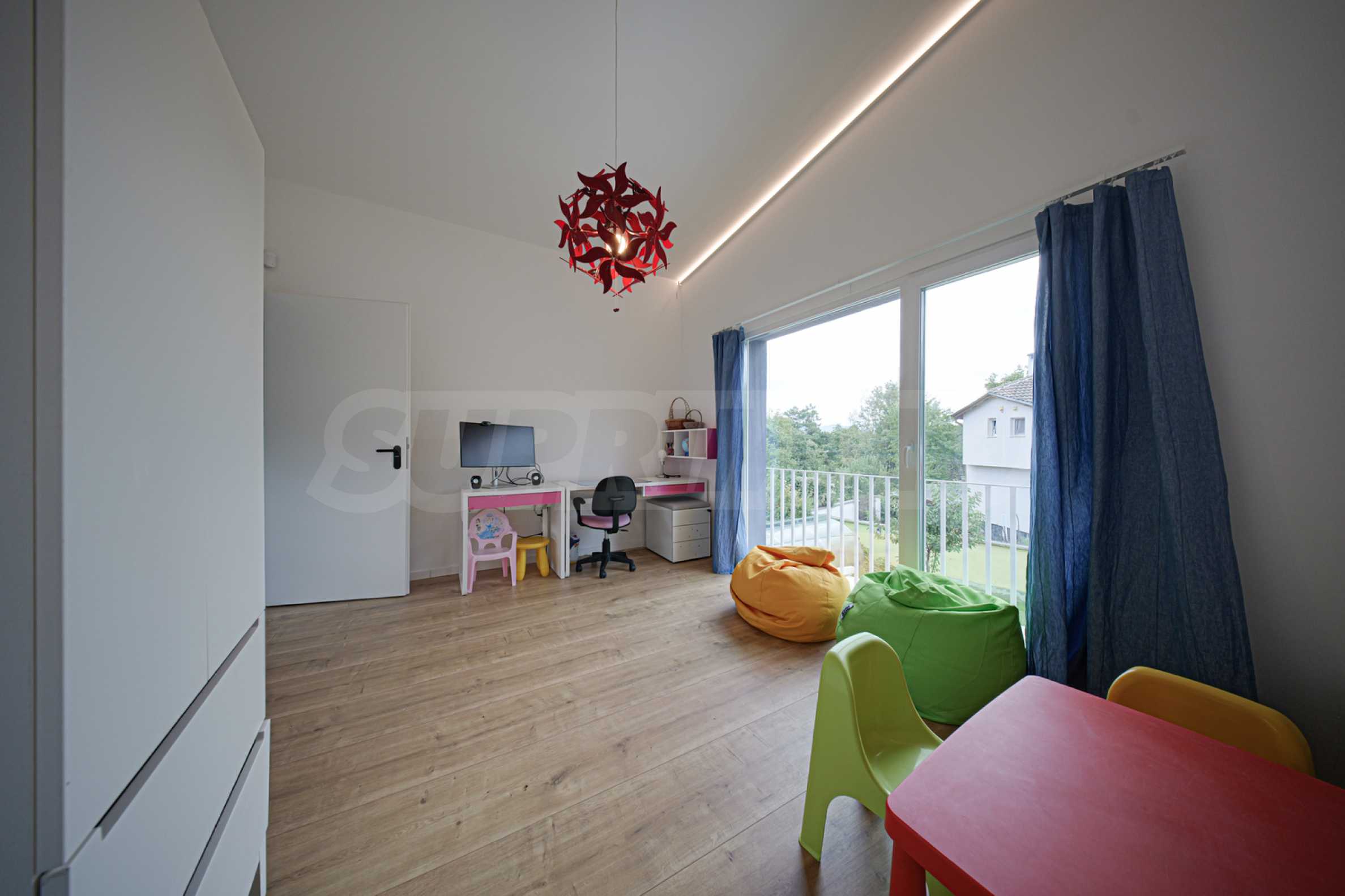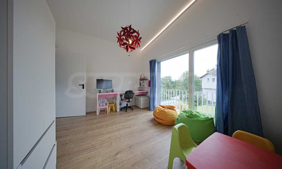 The house is built of high-quality materials, fully furnished and equipped with all electrical appliances, which make it extremely comfortable and energy-efficient. The windows have excellent heat and noise insulation characteristics, the heating throughout is water-based underfloor heating with a highly efficient heat pump or gas, controlled by room thermostats in each room.