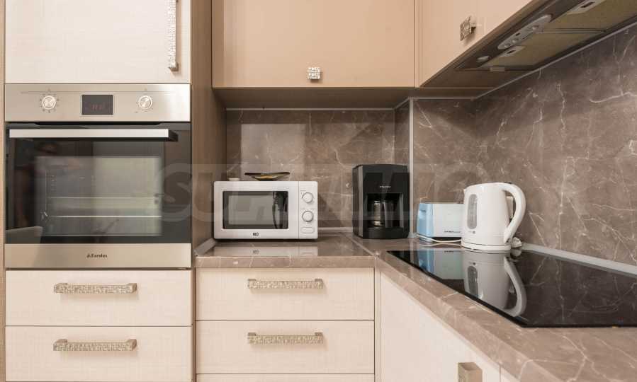The apartment offers all communications and amenities for the most comfortable stay. Available in the property are high-class electrical appliances, as well as stylish furniture, which creates the feeling of coziness, luxury and tranquility. Heating is solved with air conditioners.