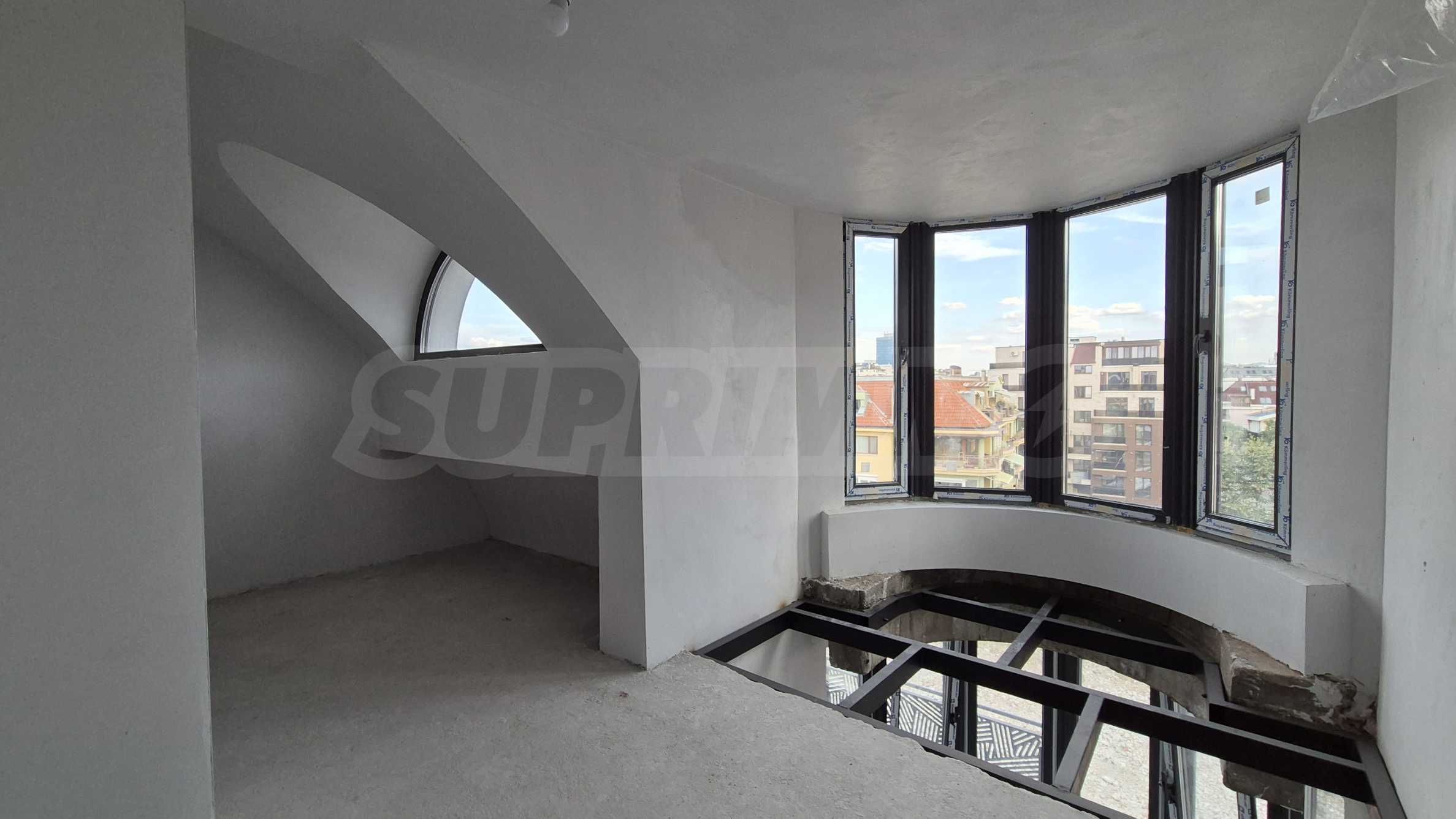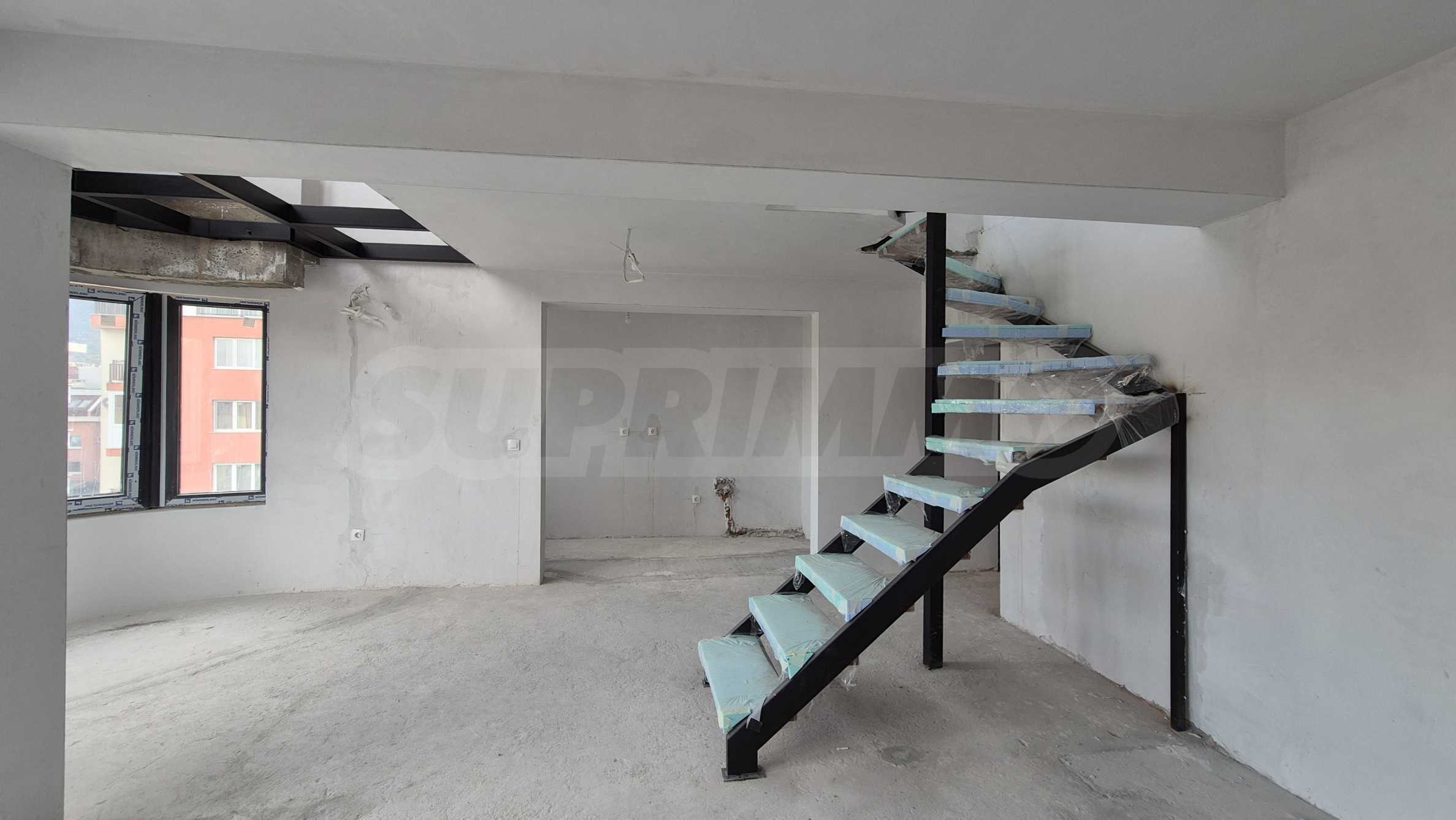 The property is situated on the 5th and 6th floors and offers 133.80 m2 of total area, divided between an entrance hall, a living room with a separate kitchen area, an attractive internal staircase, two bedrooms, two bathrooms, a balcony.