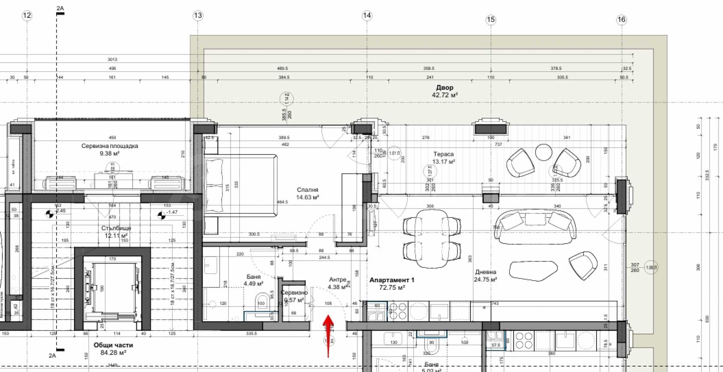• terrace - 13.17 sq m, with access from both rooms;