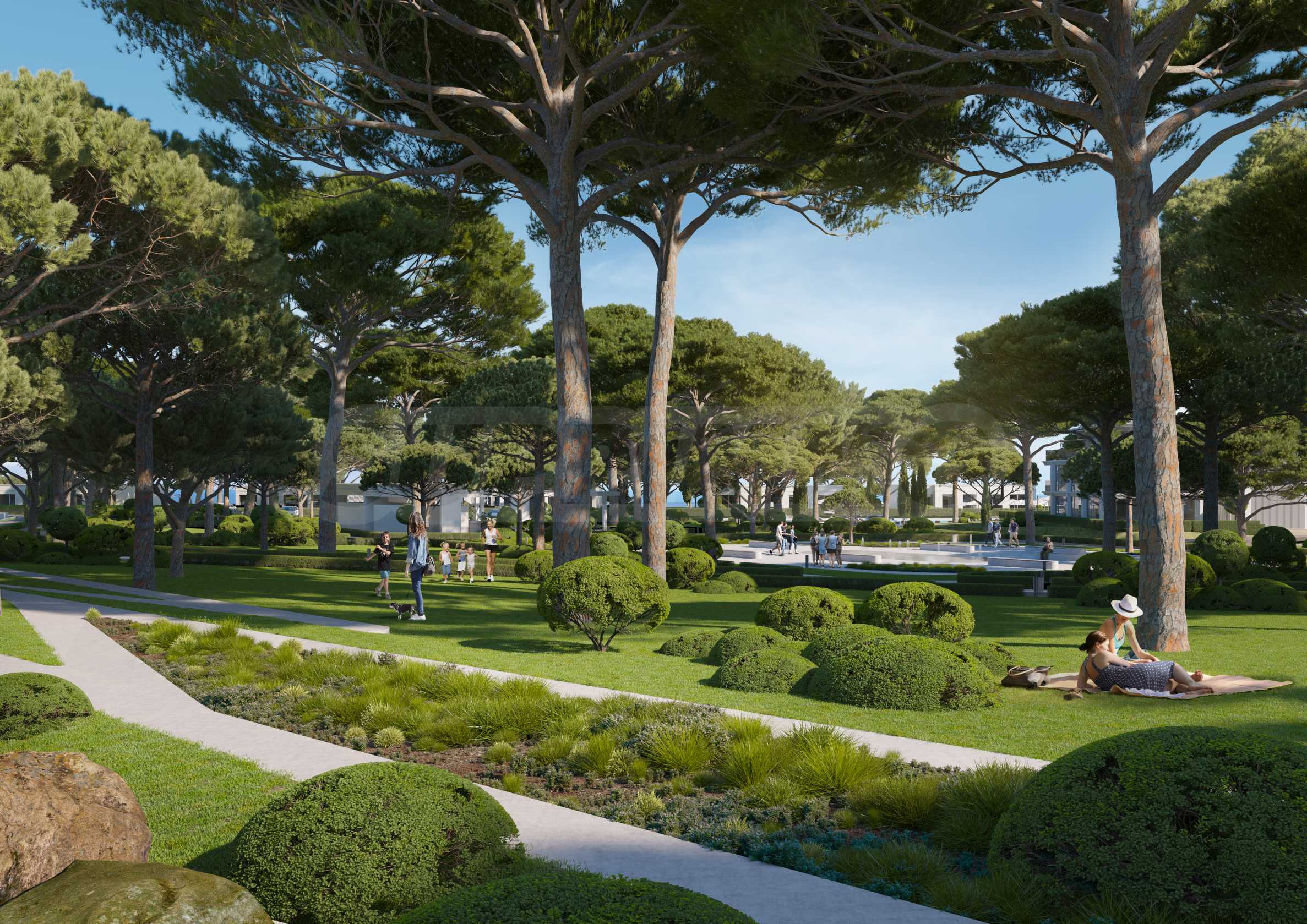 From the first to the fourth line of the sea, on an impressive 200,000 sq m , the project will have built-up buildings, streets, alleys and over 130,000 sq m of unique park area, and will include:
