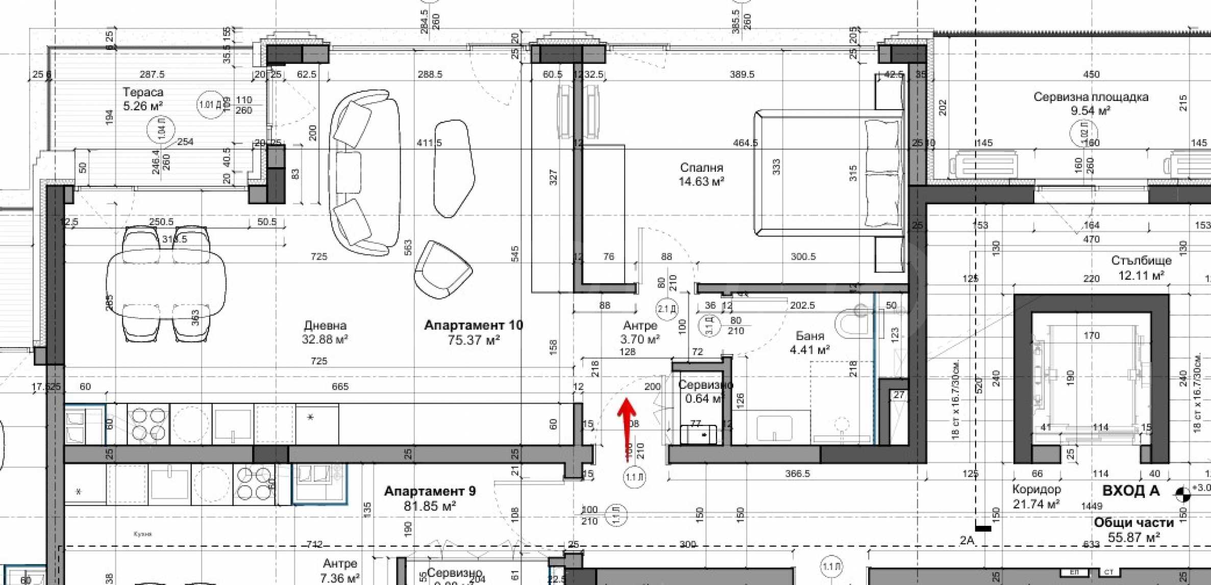 The property we are presenting for sale is part of a four-story building No. 4, Entrance "A". It is located on the second floor, with a favorable south/north exposure and has a total area of 85.46 m2.