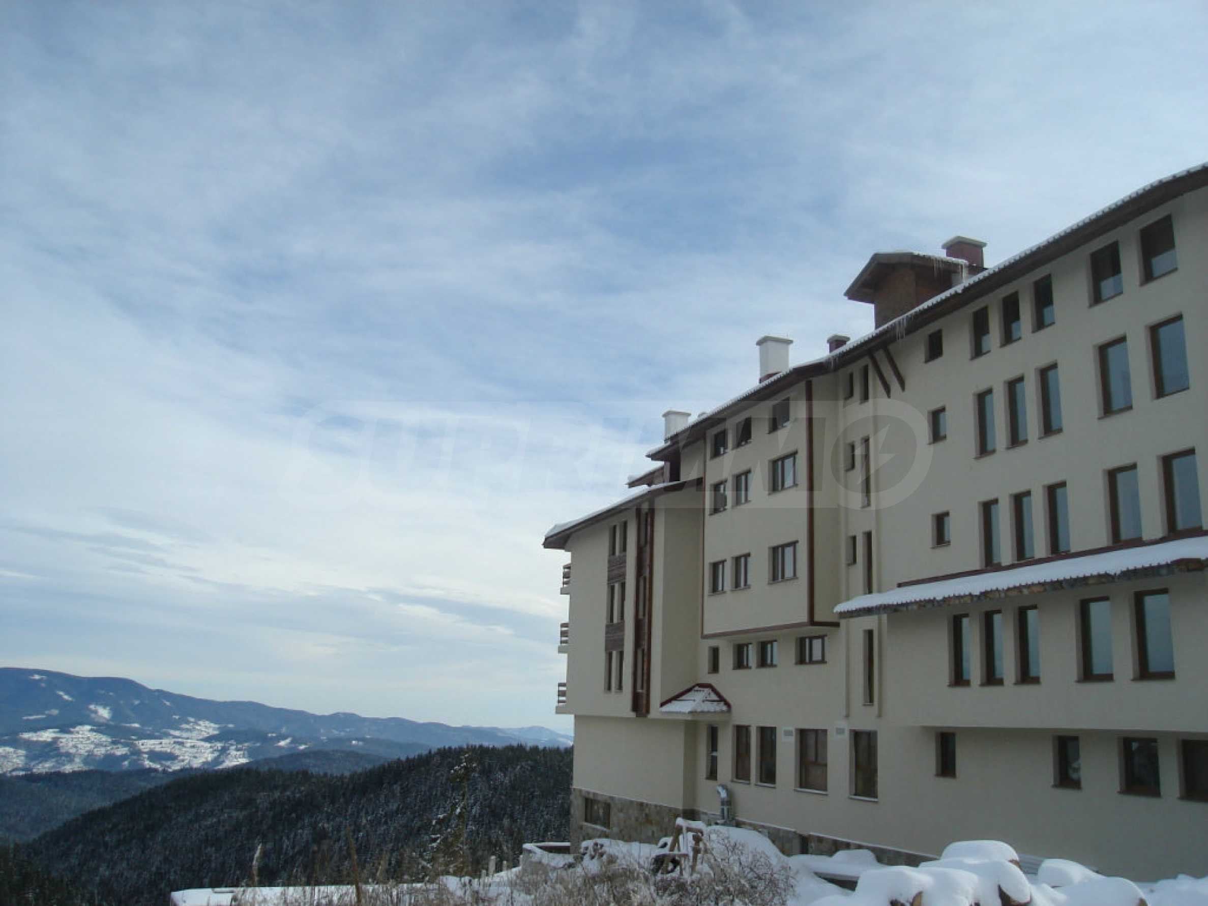 We present for sale a spacious two-bedroom apartment in a modern mountain complex in Pamporovo, located in a quiet, green and extremely picturesque location, just minutes from the ski slopes and the most popular attractions in the region.