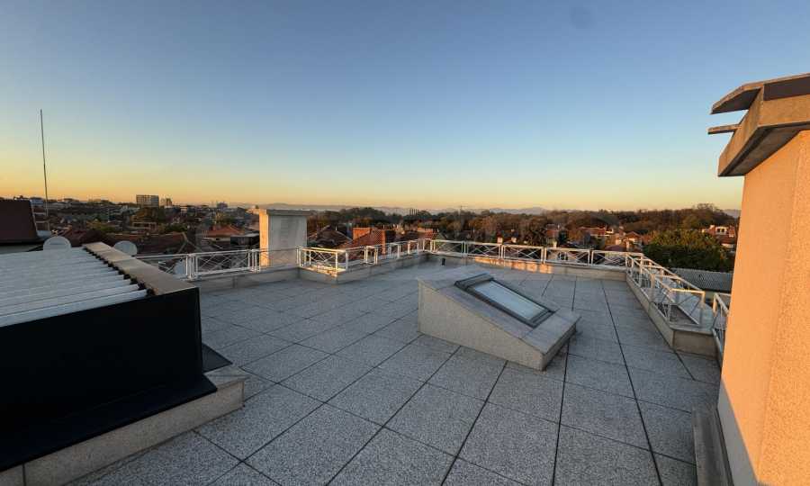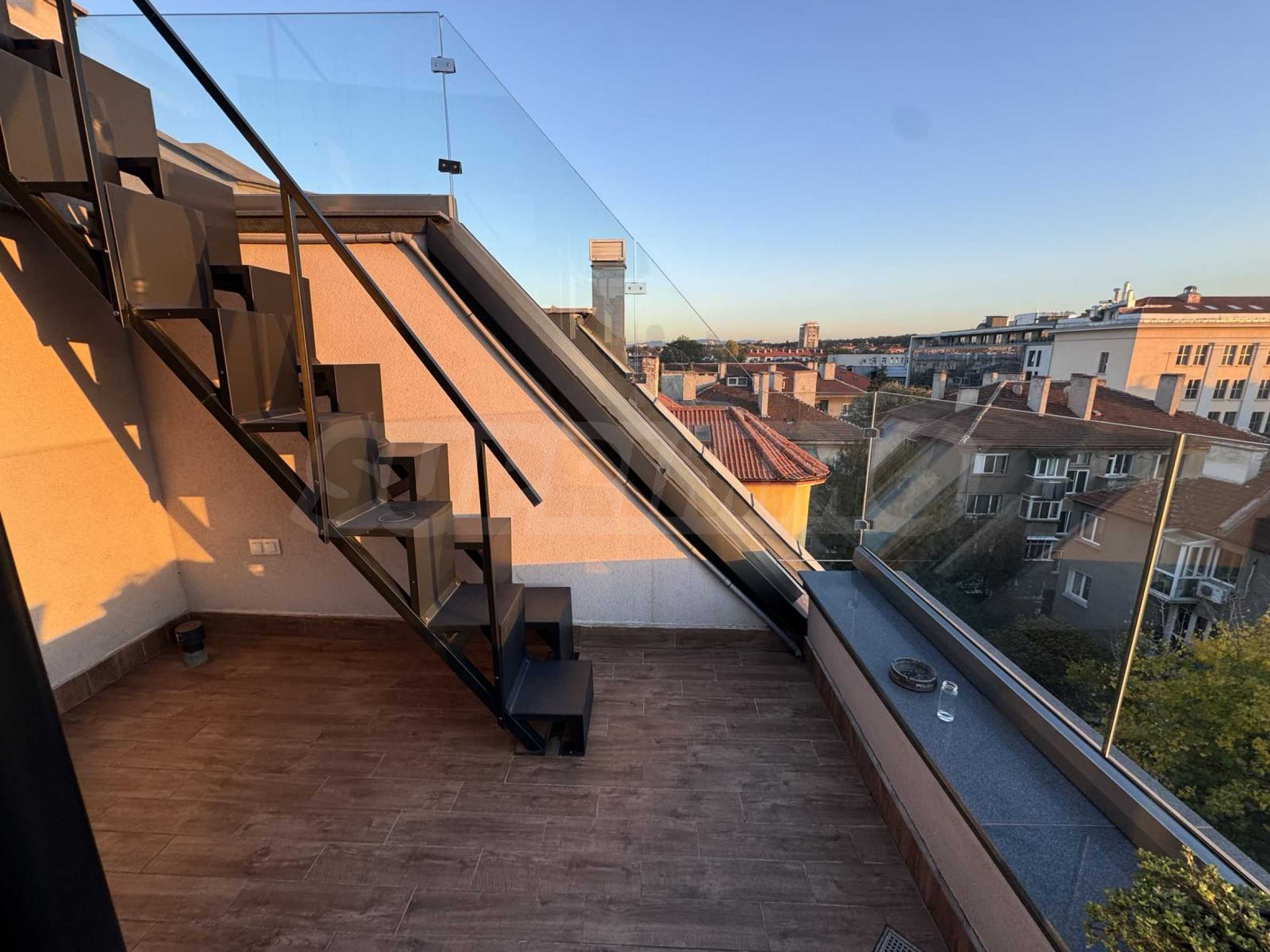 We present a maisonette on two levels, with an exceptional panoramic view, stylish design and an impressive roof terrace, in a prime location next to the Eagle Bridge, in the center of the capital.