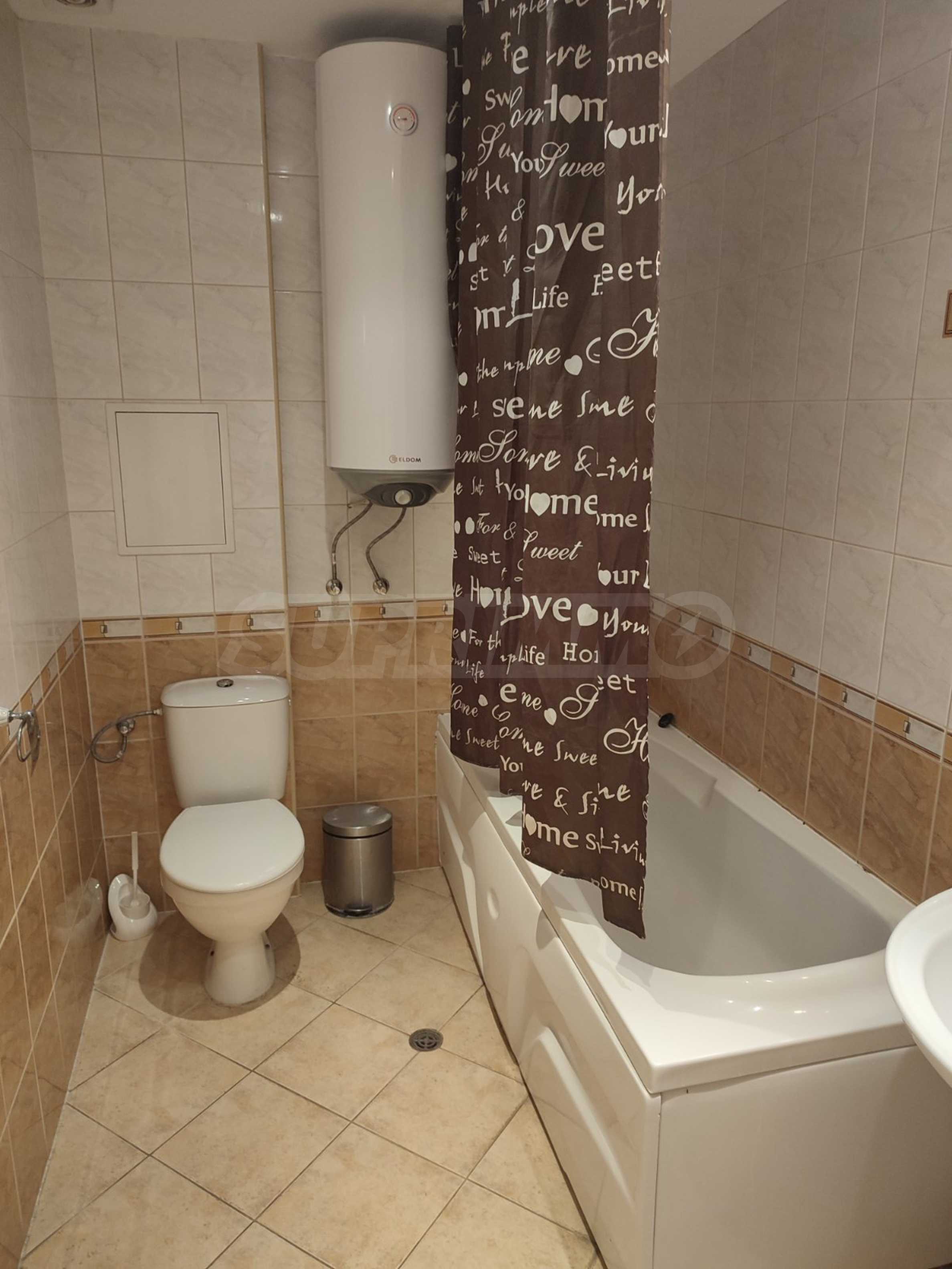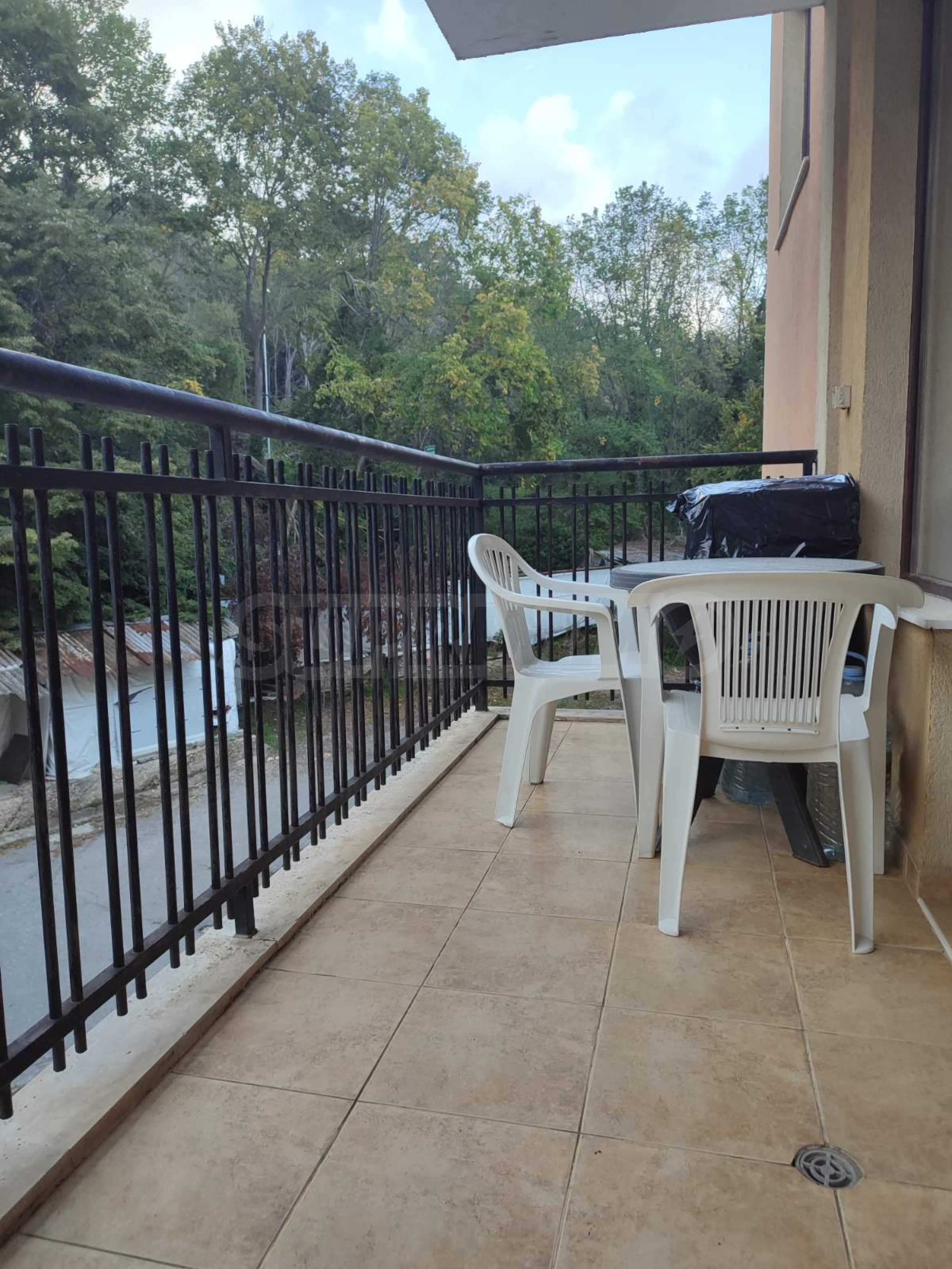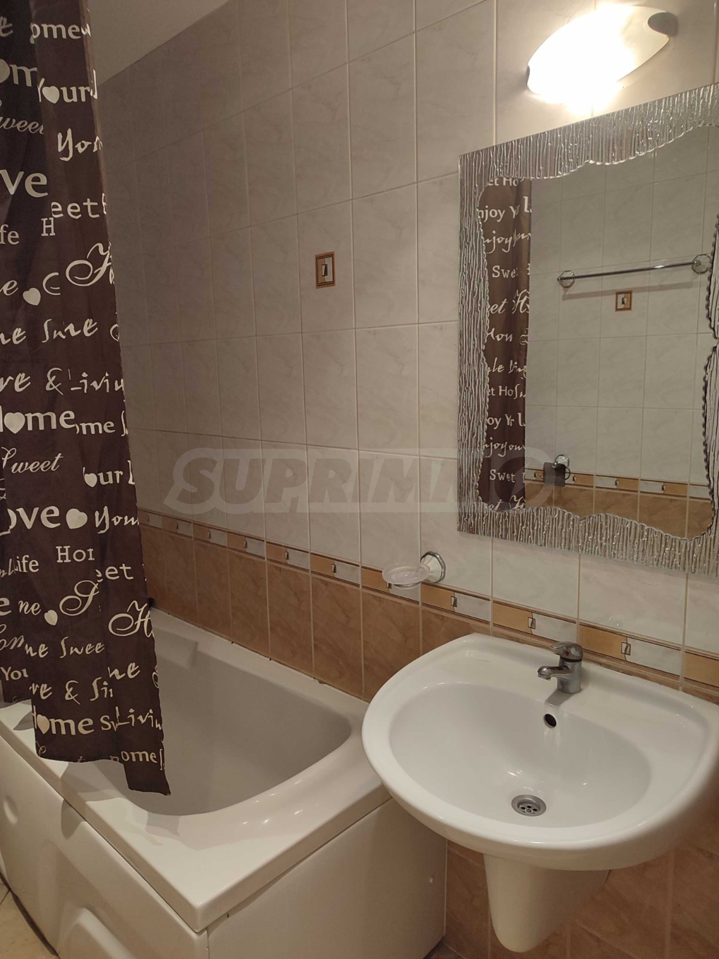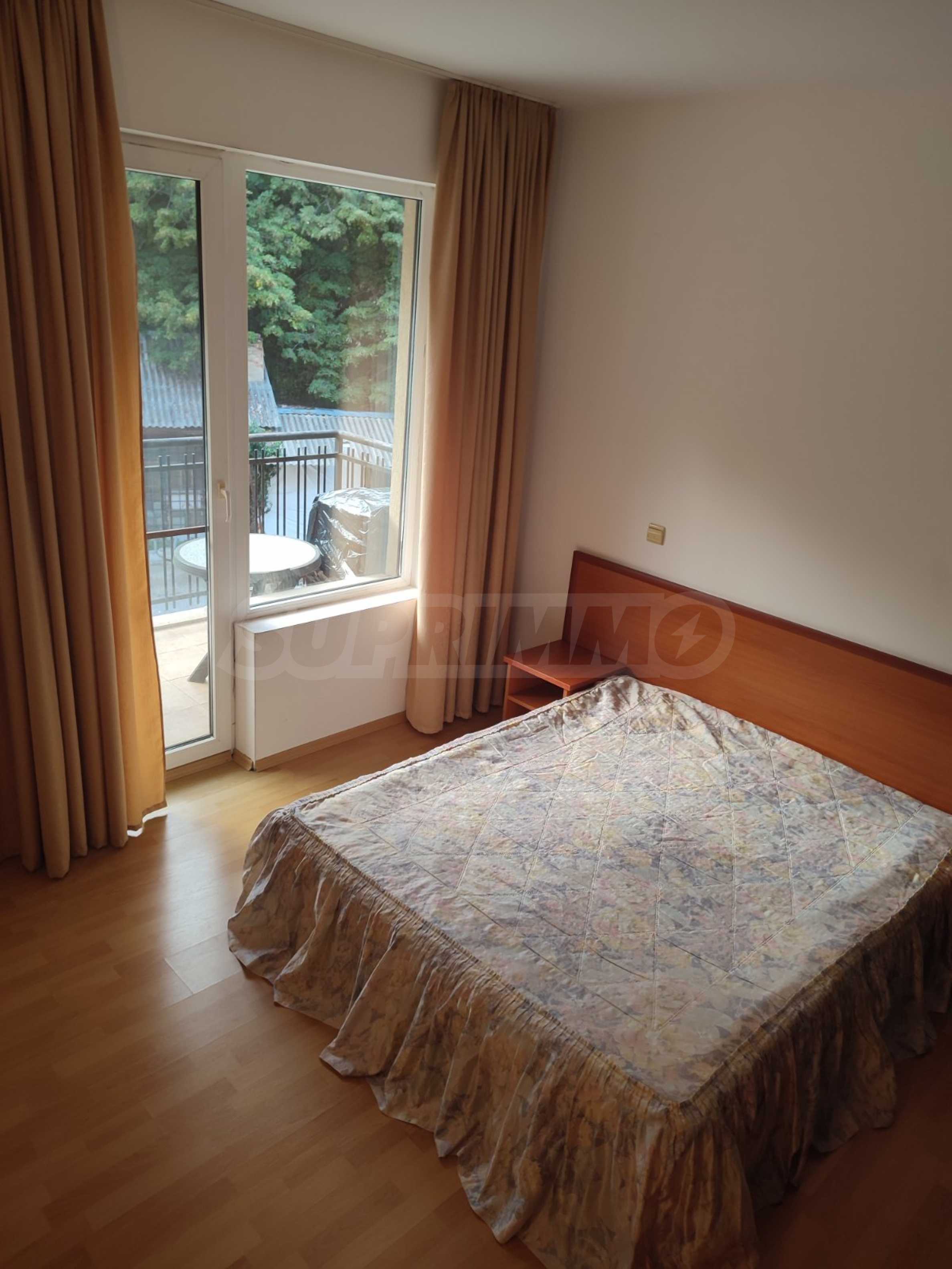 The complex is located near a bus stop and with very quick access to the main road to Varna. It has a garden, outdoor pool, bar, parking spaces and security. It takes about 15 minutes to walk to the beach of the resort.