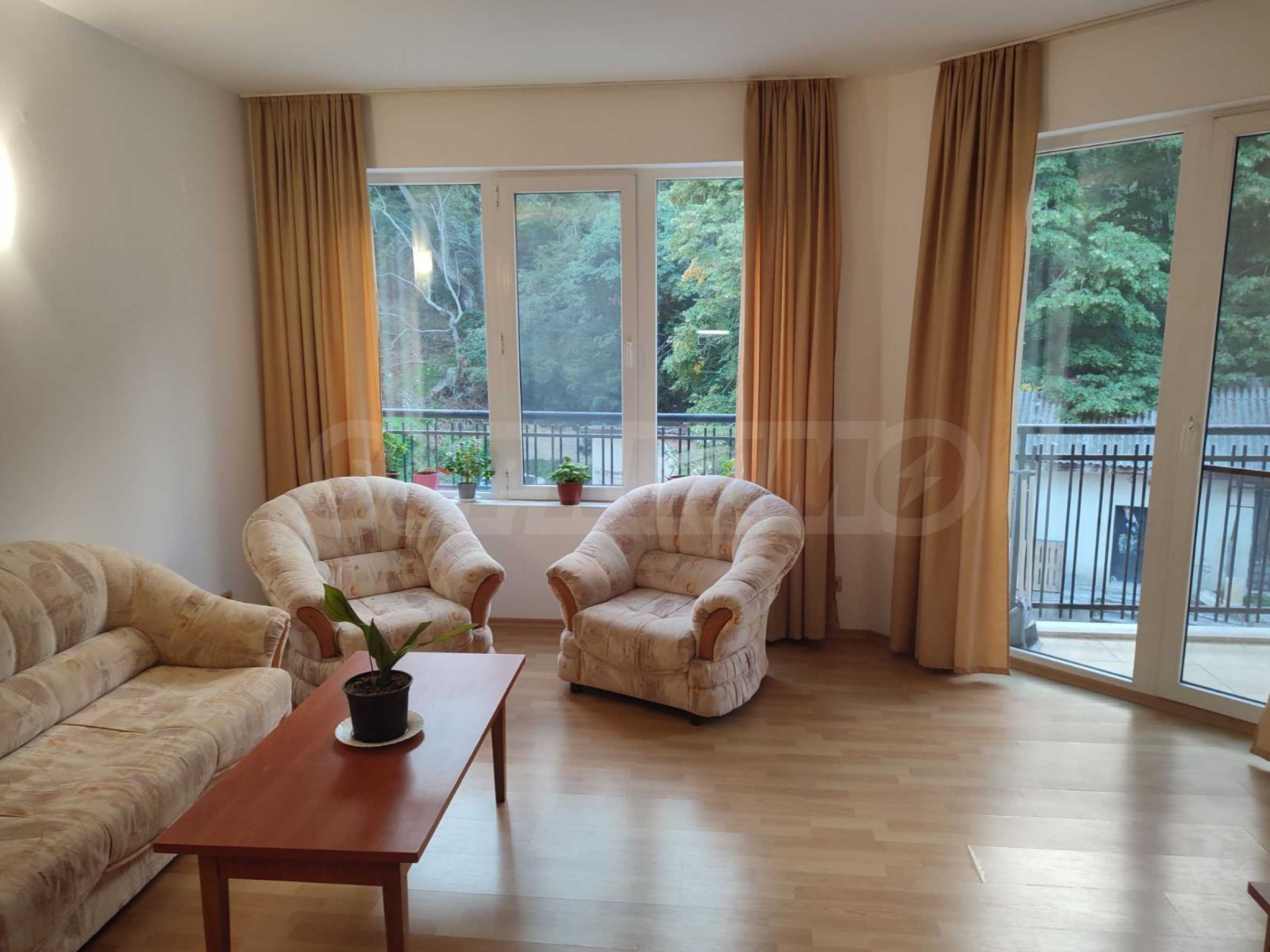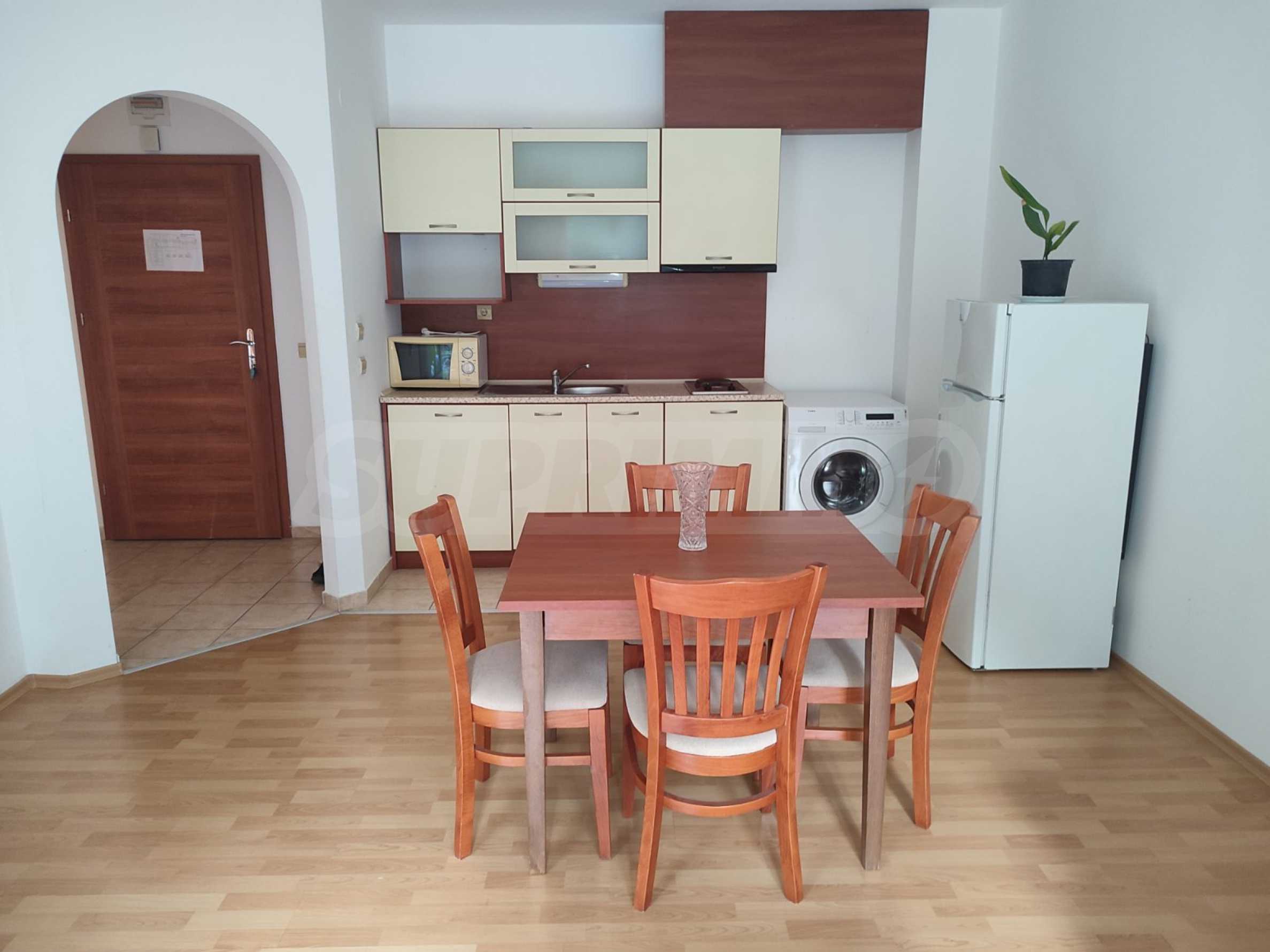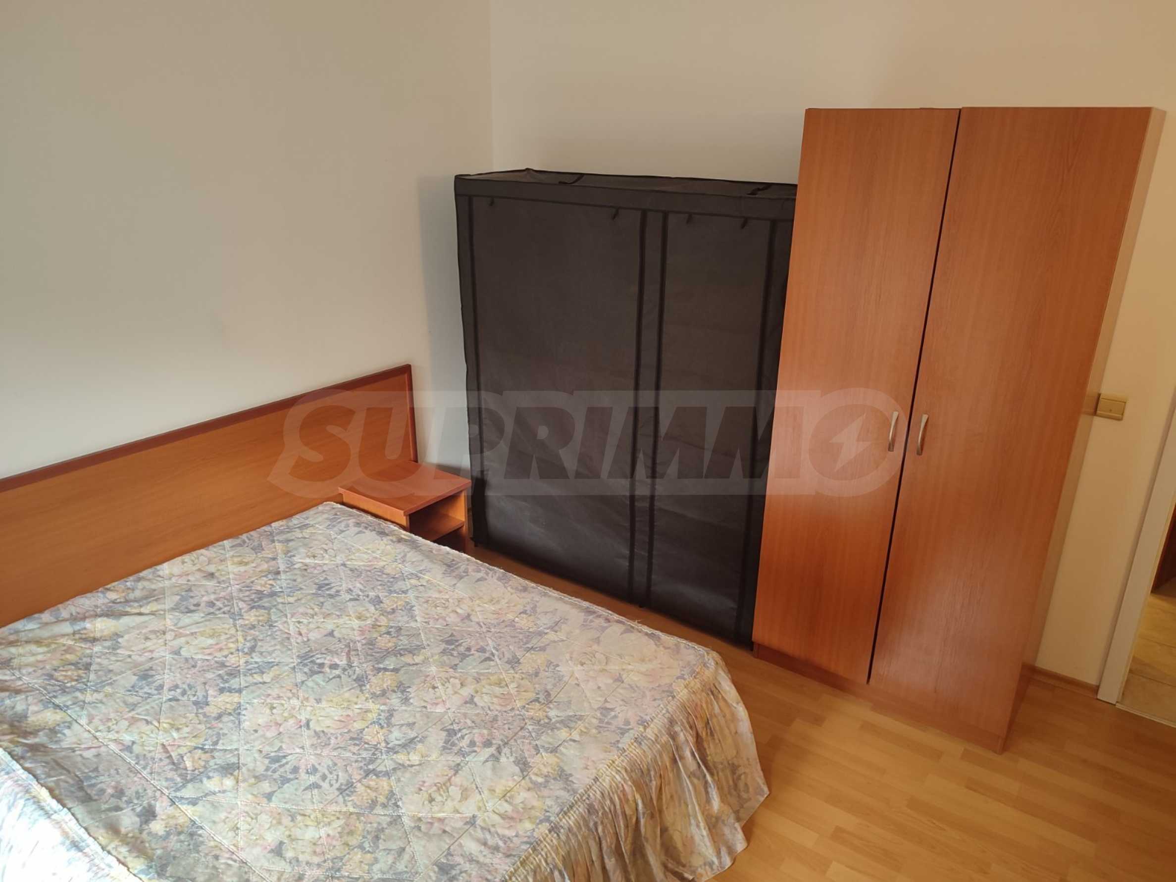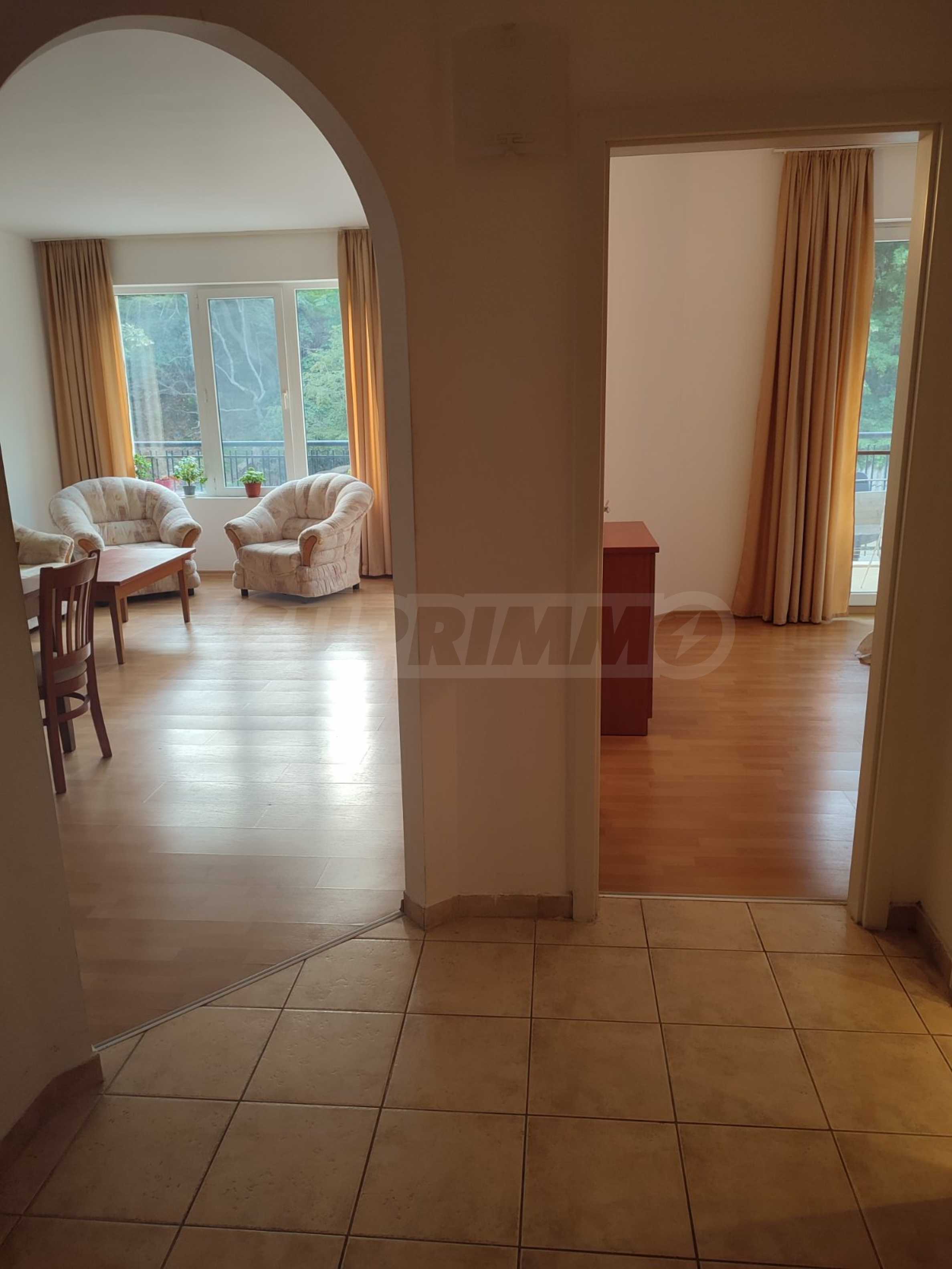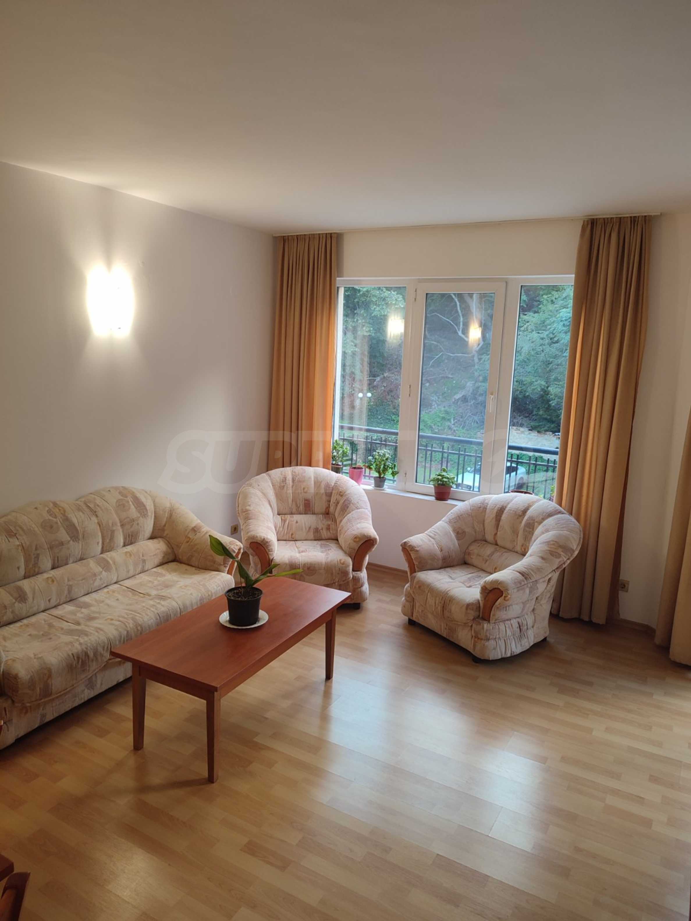 The complex is located near a bus stop and with very quick access to the main road to Varna. It has a garden, outdoor pool, bar, parking spaces and security. It takes about 15 minutes to walk to the beach of the resort.