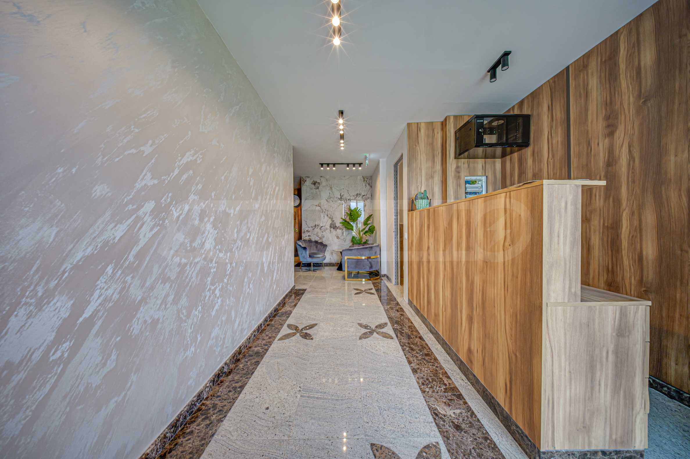 - lobby and common areas under a special interior design with an entirely stone interior design - marble and onyx;