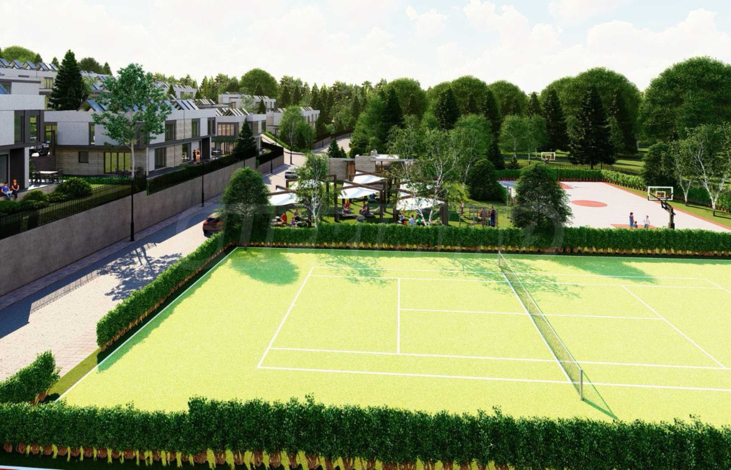 The project consists of 70 neat and modern houses with a private courtyard, united in a gated complex with access control and excellently planned common spaces, meeting the highest requirements. Among the amenities provided are two playgrounds, tennis, soccer and basketball courts, as well as walking and picnic areas. The land on which the complex is built has a southeast exposure, which provides enough sunlight and heat throughout the day, as well as a captivating view of the Vitosha mountain. Take advantage of the opportunity to live in a calm and cozy environment that will offer you all the comforts of city life amidst lots of greenery and fresh air.