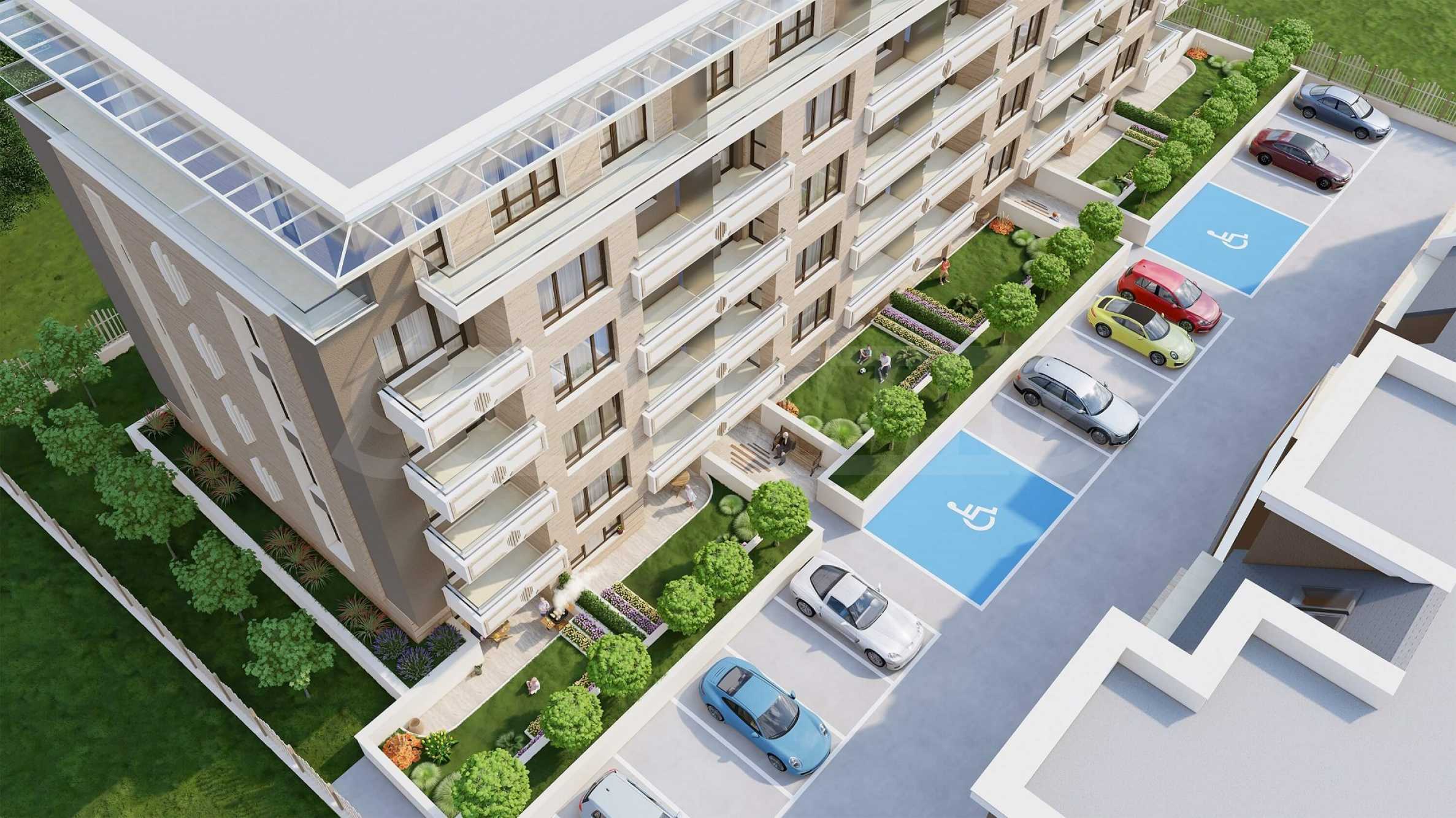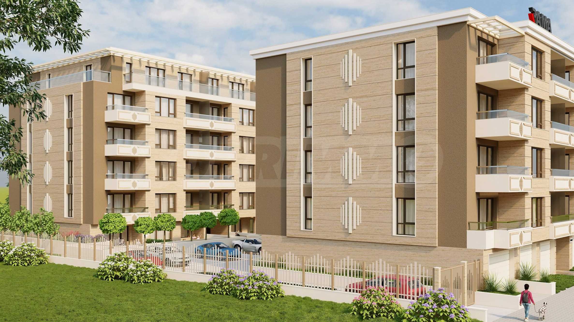 The complex includes two buildings, mainly oriented to the southeast, with all two-bedroom apartments facing entirely southeast. The buildings contain 74 apartments - two-bedroom and three-bedroom, and on the first floor of Building 2 the apartments have landscaped courtyards to them. There are also 84 underground and above-ground garages and parking spaces.