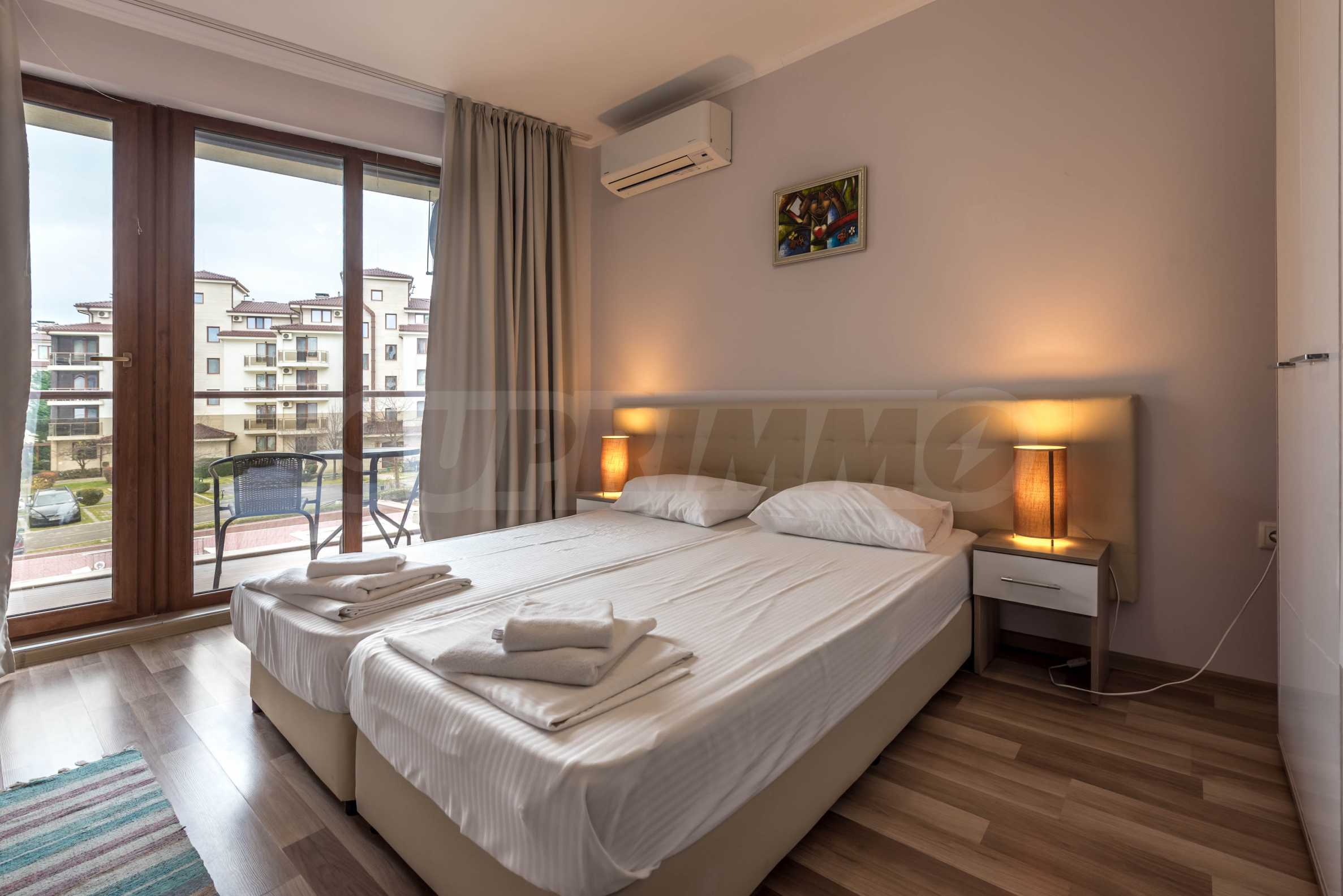 We present a two-room apartment in a gated complex on the first line to the seashore, in Shkorpilovtsi. The village is known for its beautiful nature, combining a forest massif and a large beach. The area falls into a protected area for the protection of the habitat and the environment. Here you can enjoy fresh air, natural facilities and clear sea.