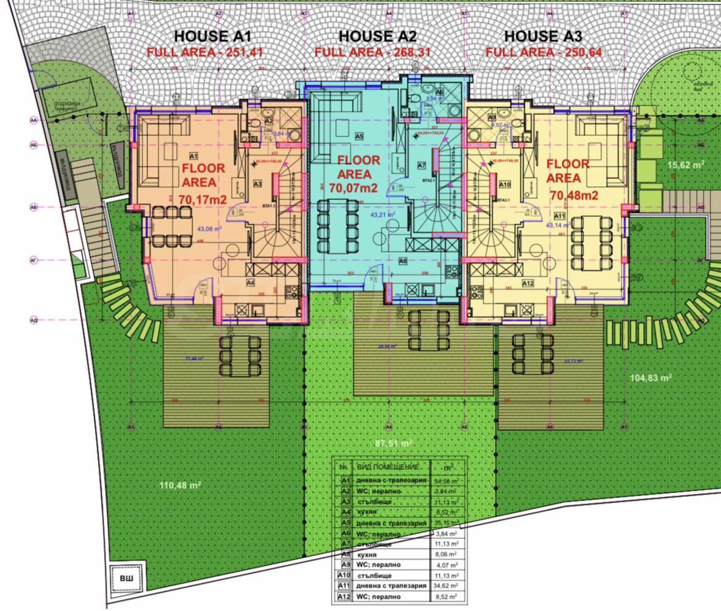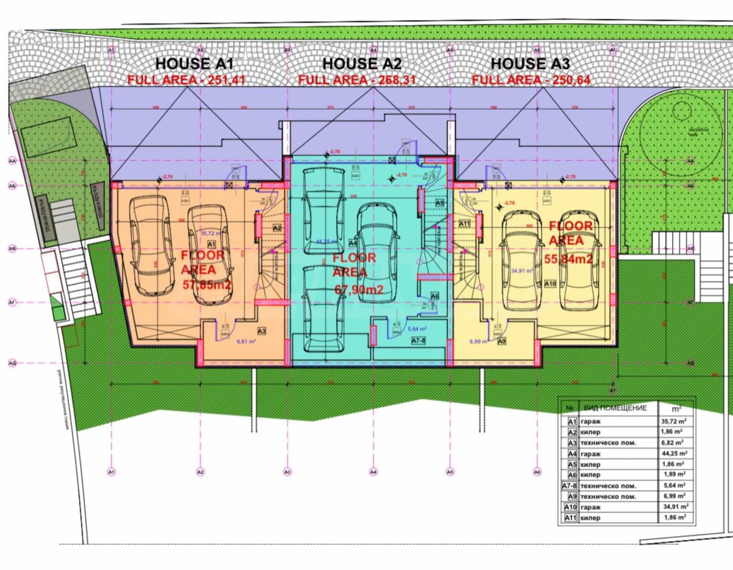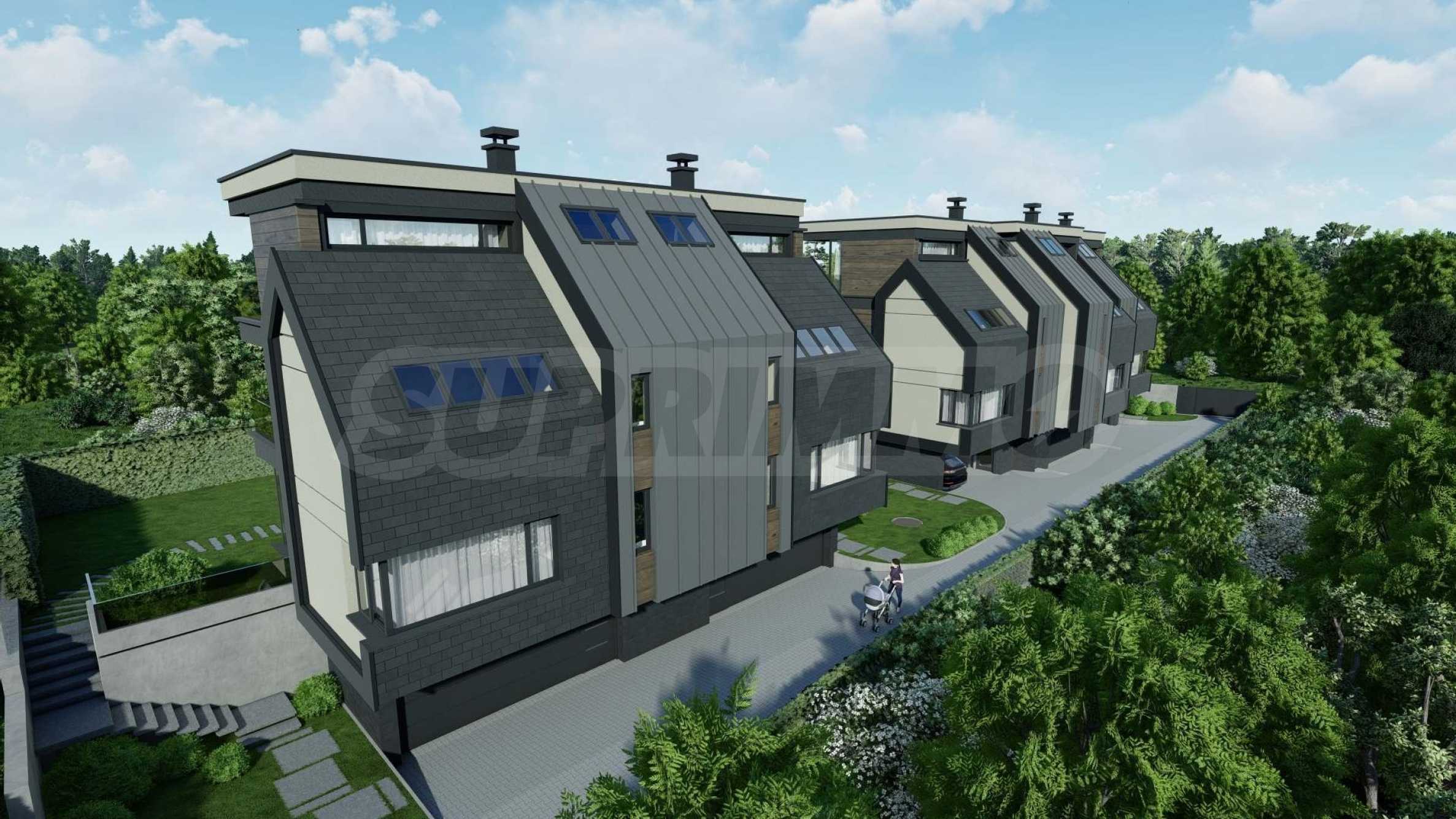 The complex includes five exclusive houses, with the offered house A2 having a triple garage and a separate technical room.