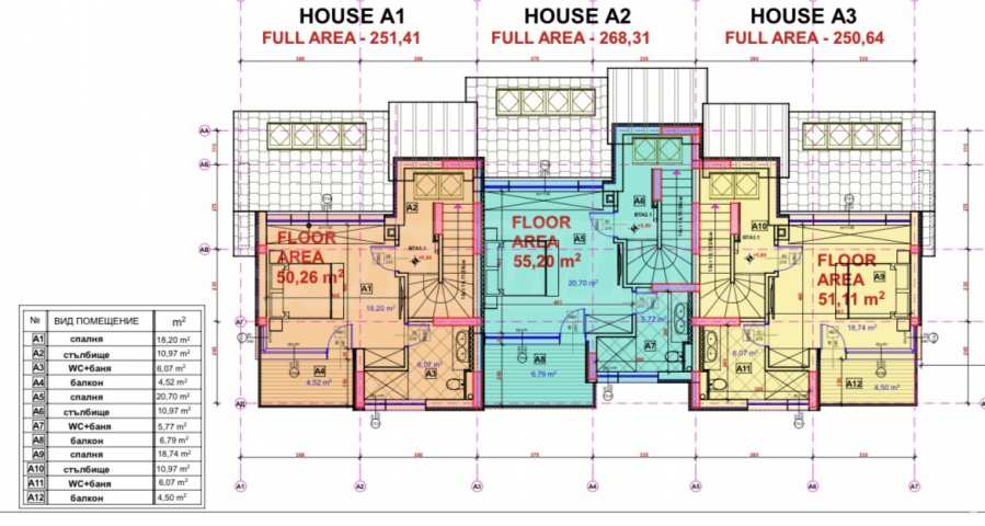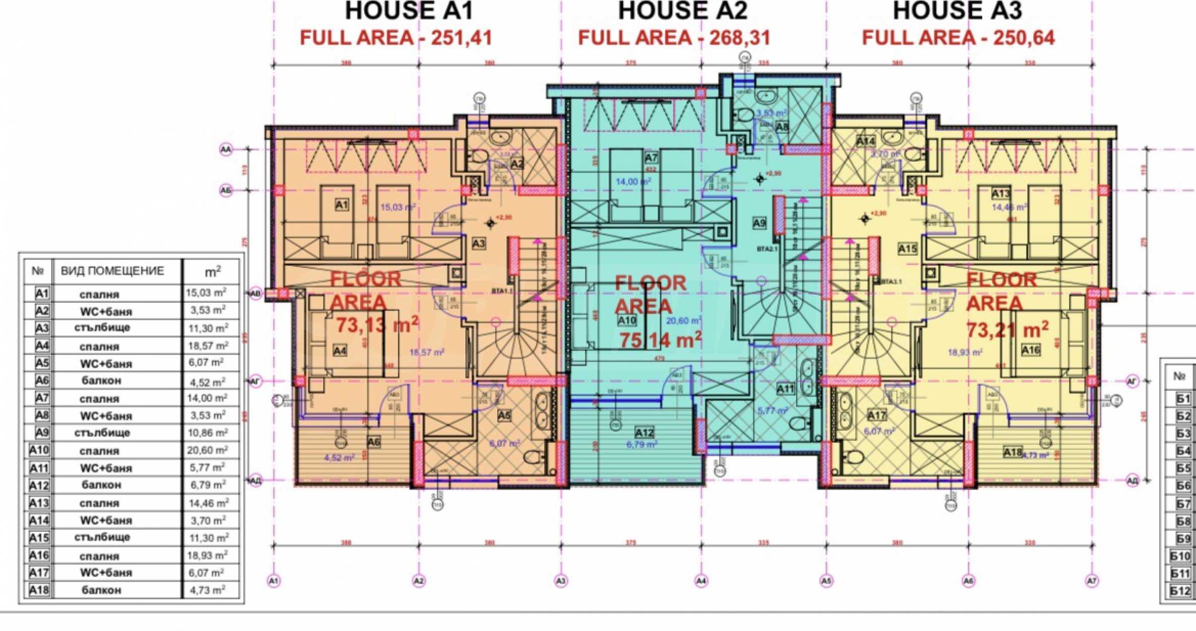 Second floor (75.14 sq m) – here are two bedrooms, a terrace and two bathrooms with toilets;