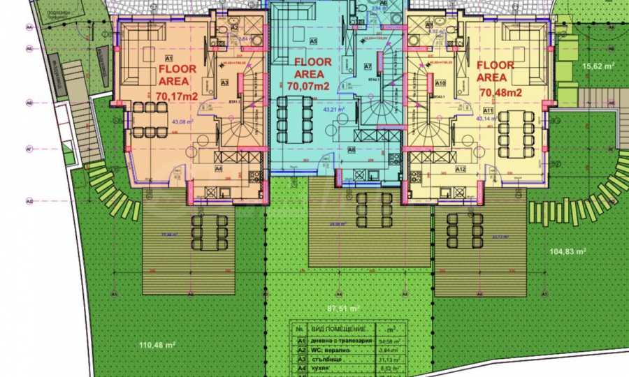 First floor (70.07 sq m) – consists of a living room with dining area and kitchen, as well as a bathroom with toilet;