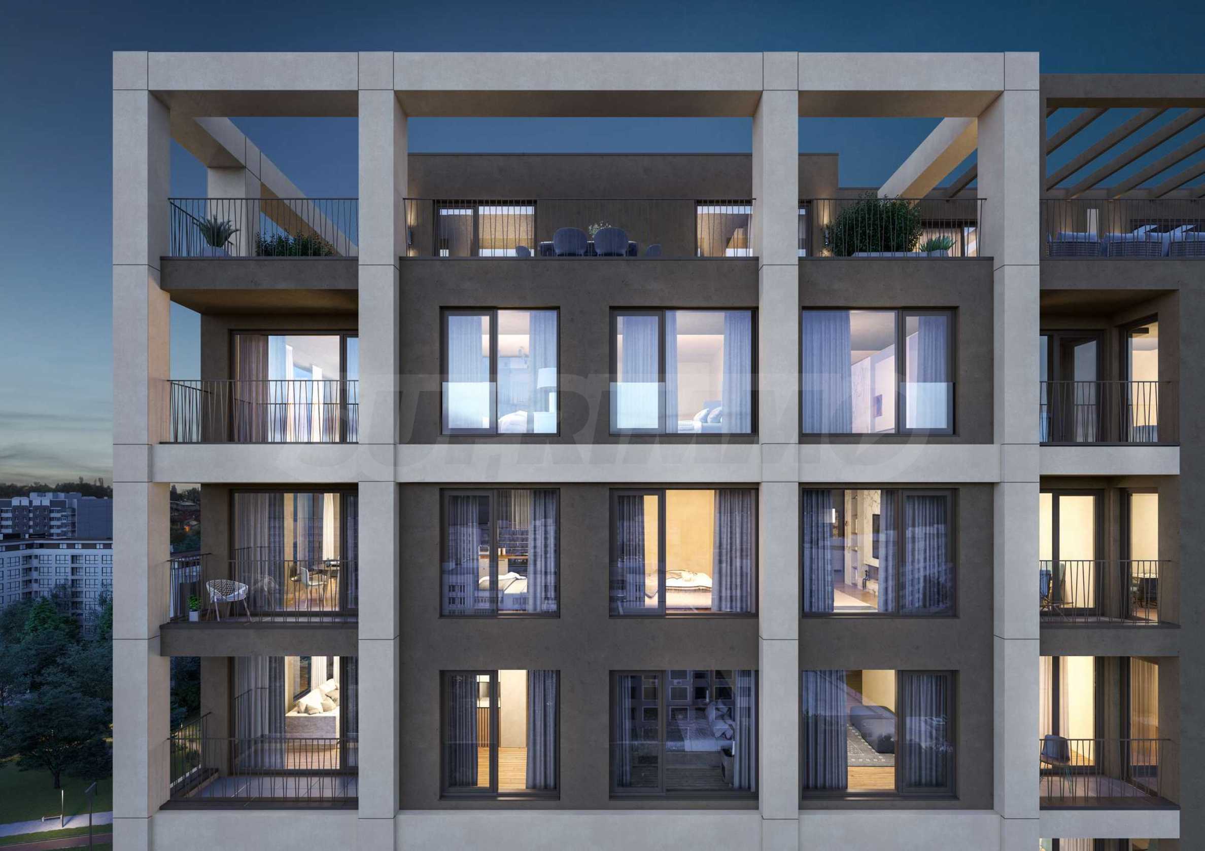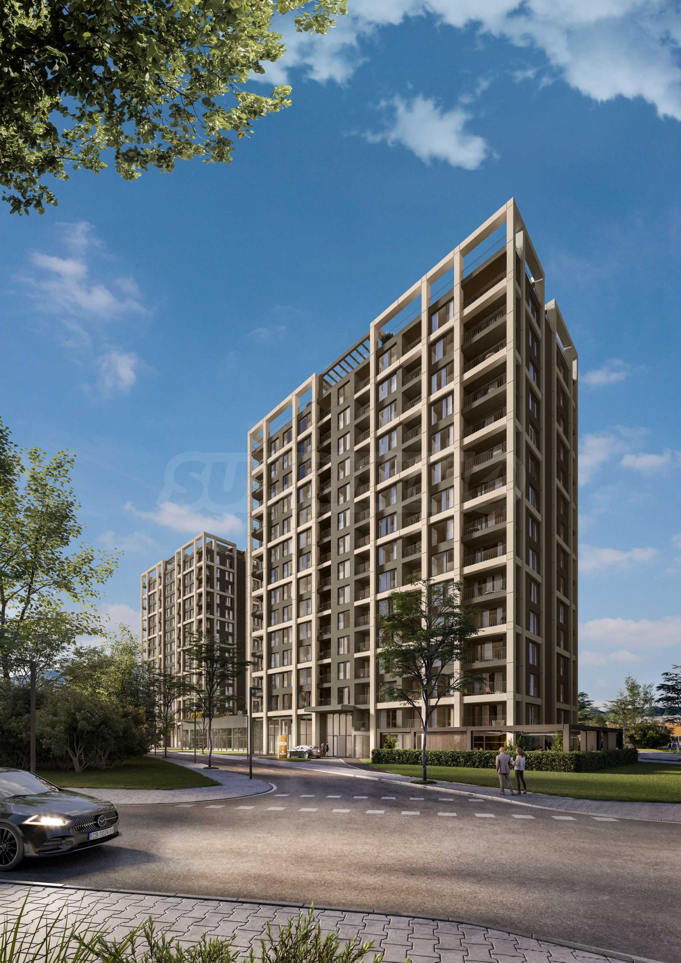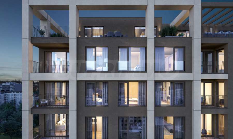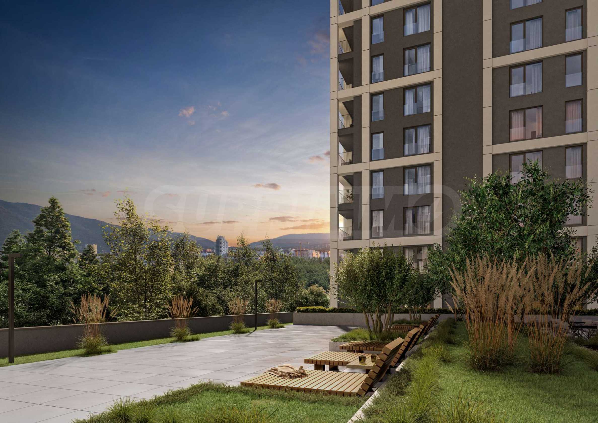 The concept of the project is to provide its future residents with a peaceful and comfortable living environment in one of the preferred districts of the capital. The two buildings are planned with park-terraces, connected to each other, creating a sense of completeness and a natural environment with lots of greenery. The park will include recreation areas, sports opportunities and children's games, in order to satisfy the needs of both families and people with an active lifestyle. The courtyard between the buildings creates a natural filter and helps the residential complex to fit better into the environment. The space has 40% landscaping with lawns, hedge strips, evergreen and deciduous shrub plantings and tall deciduous and coniferous species.