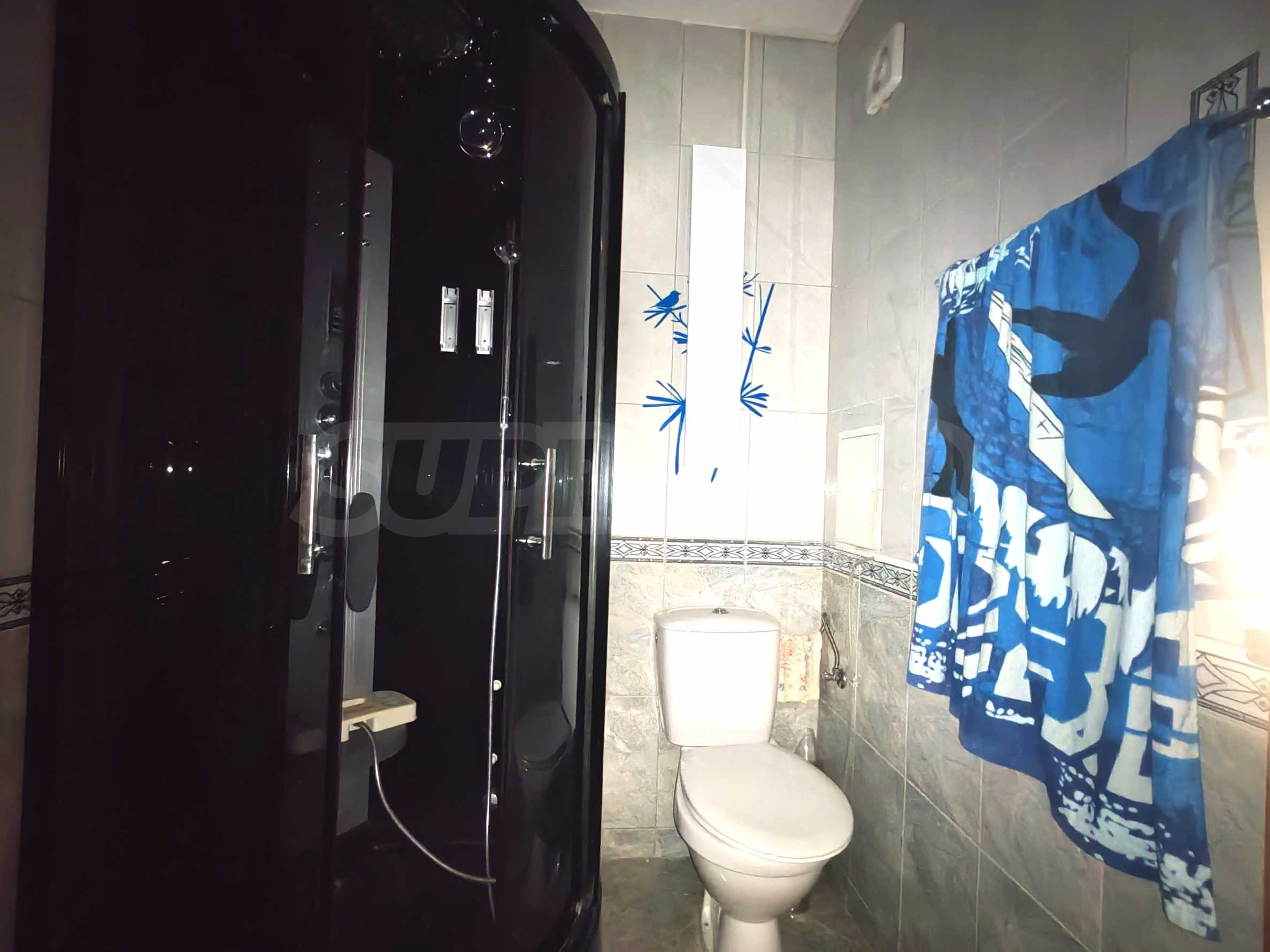- bathroom with shower cabin and toilet,