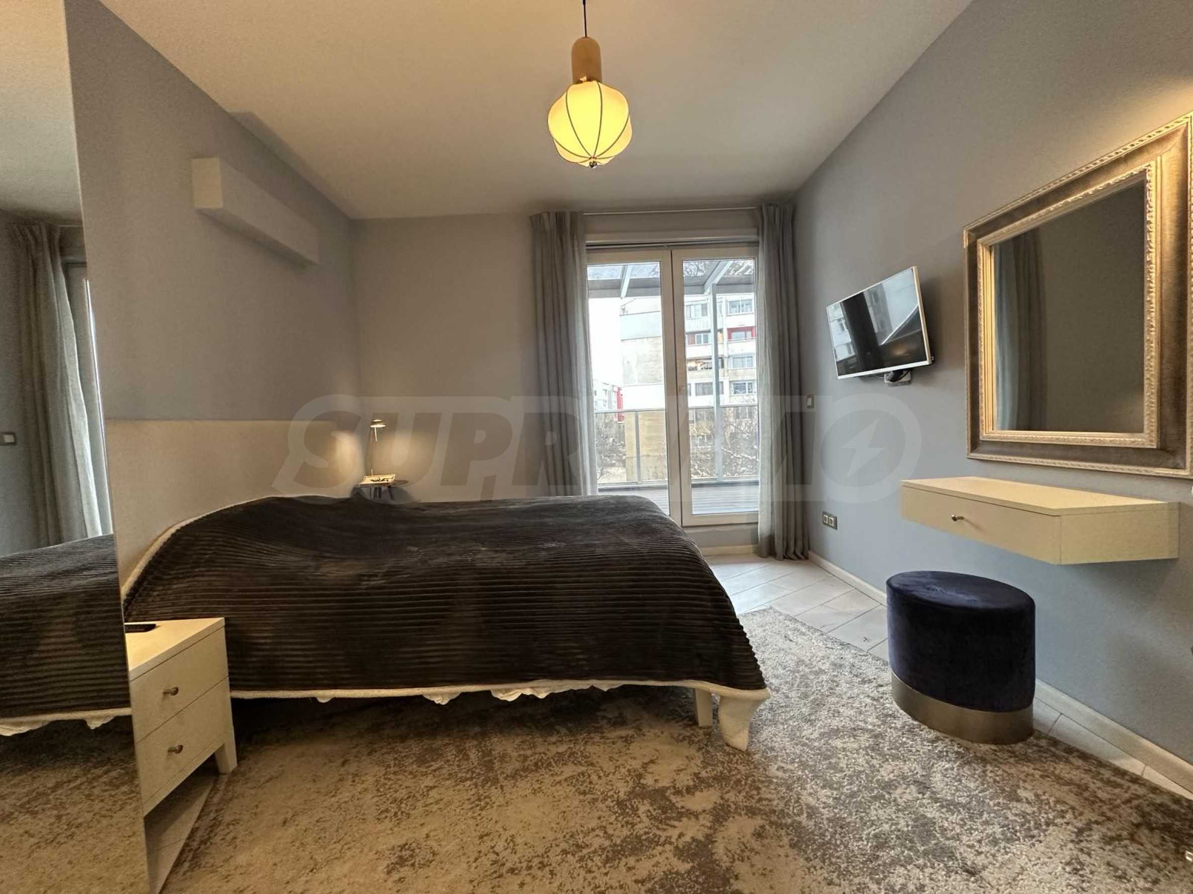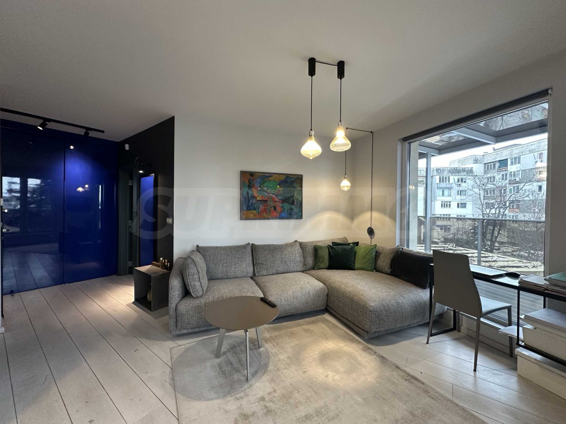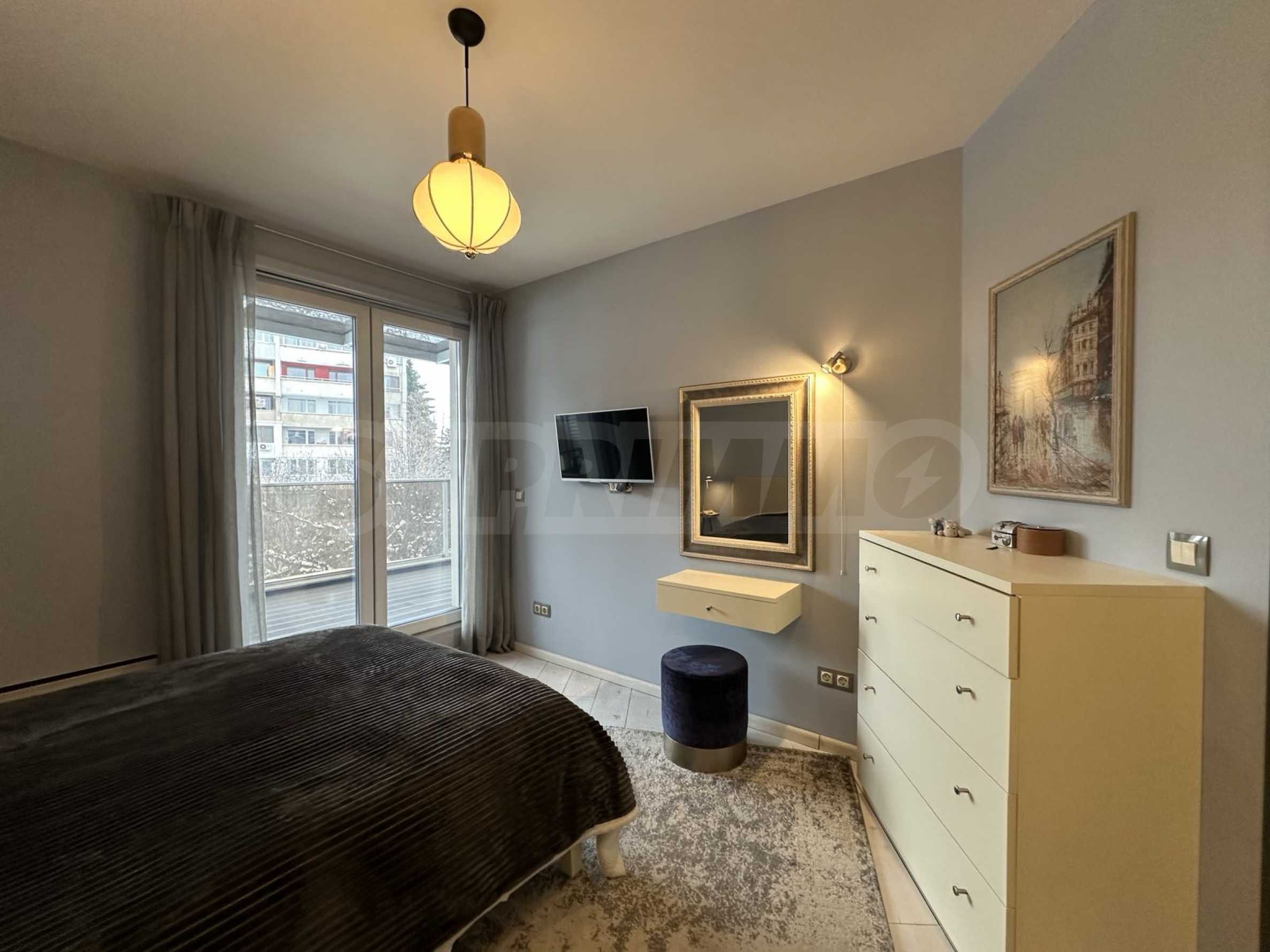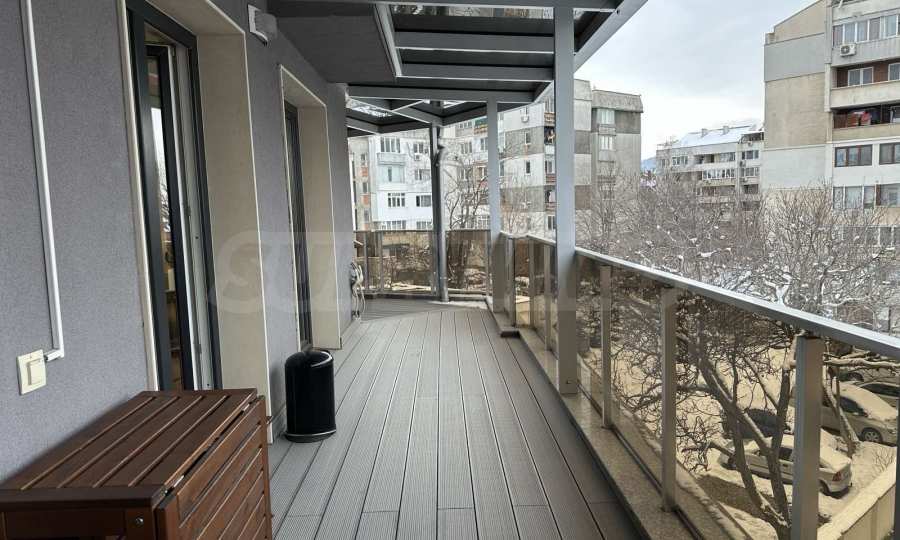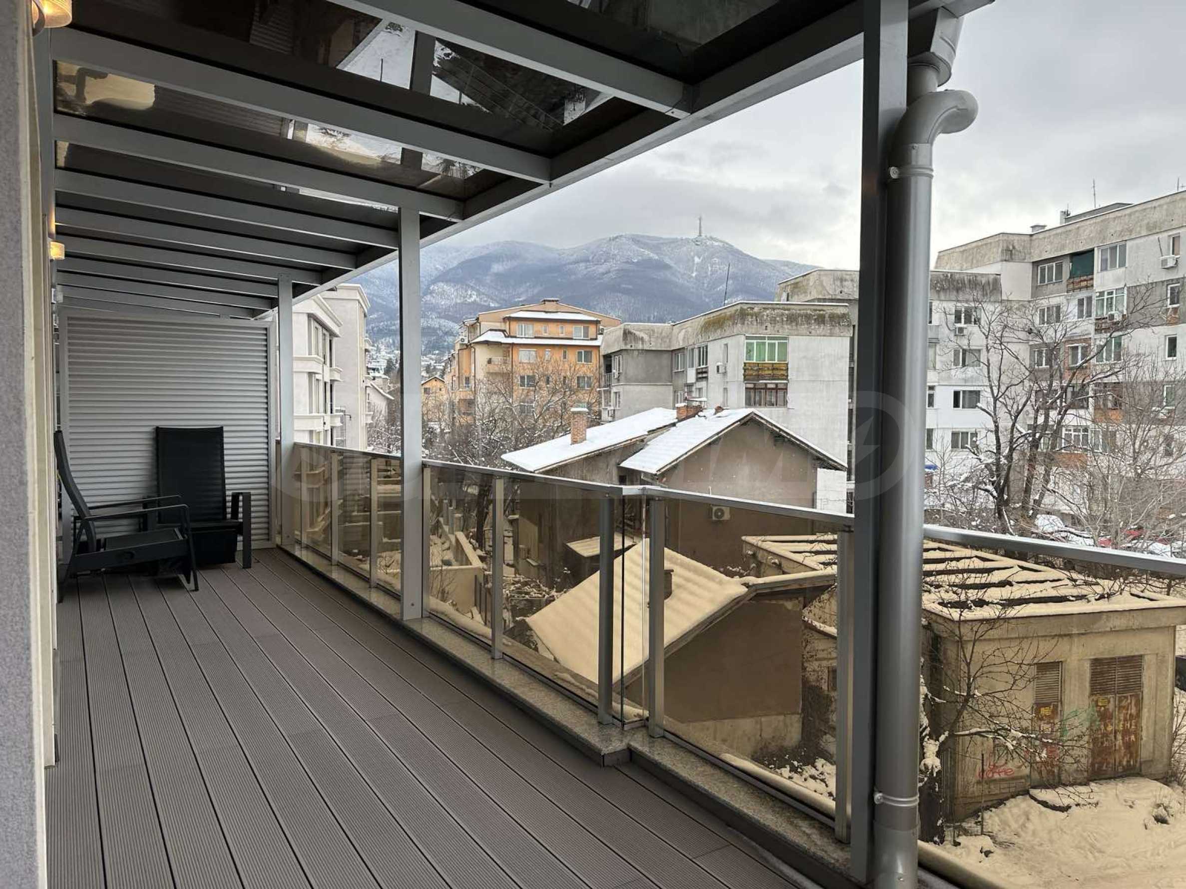The apartment is located on the 4th floor and offers a wonderful view of Vitosha Mountain. It is located in a small and boutique building with luxurious common areas and an elevator. The maintenance fee is 25 BGN per month.