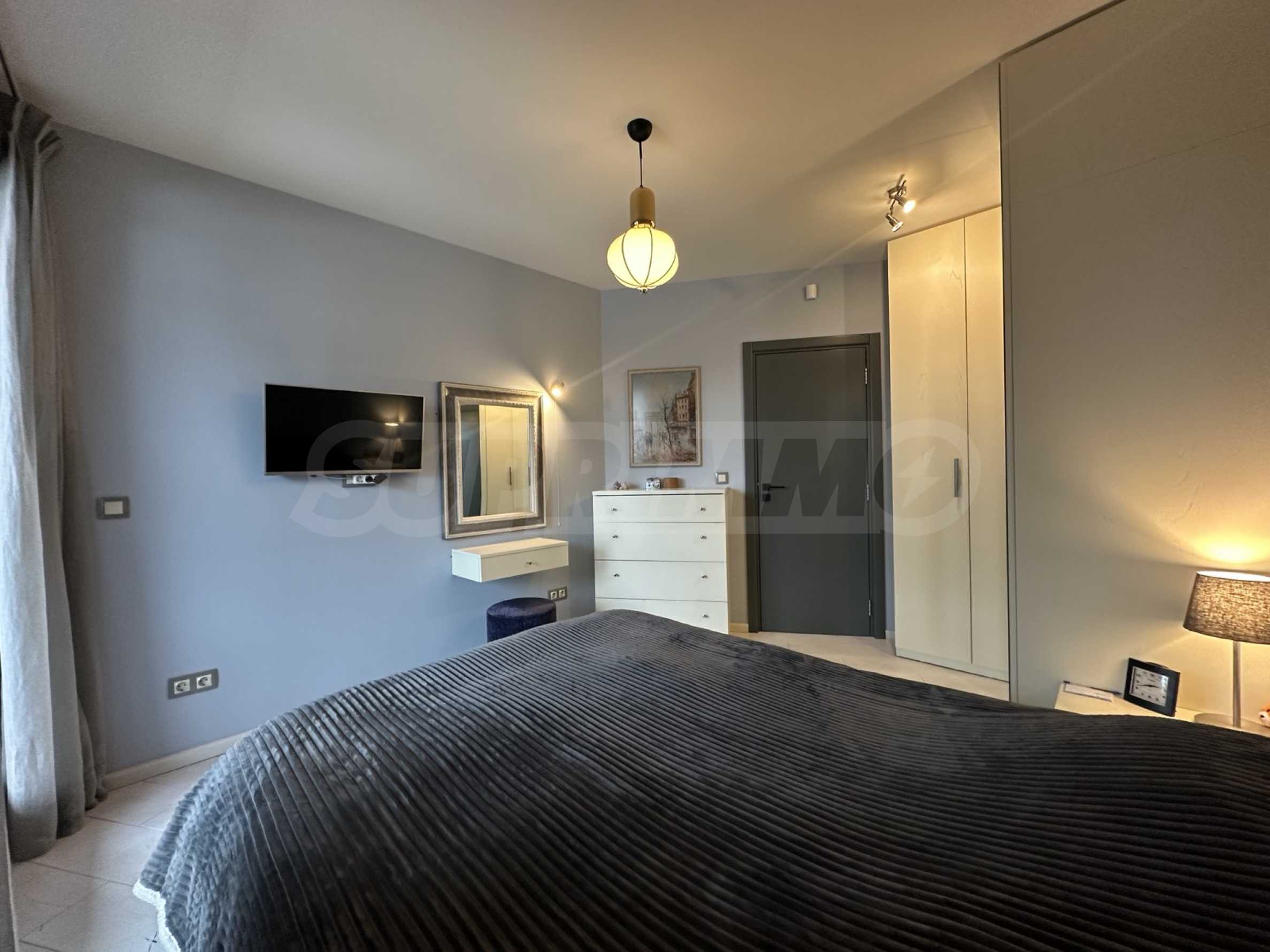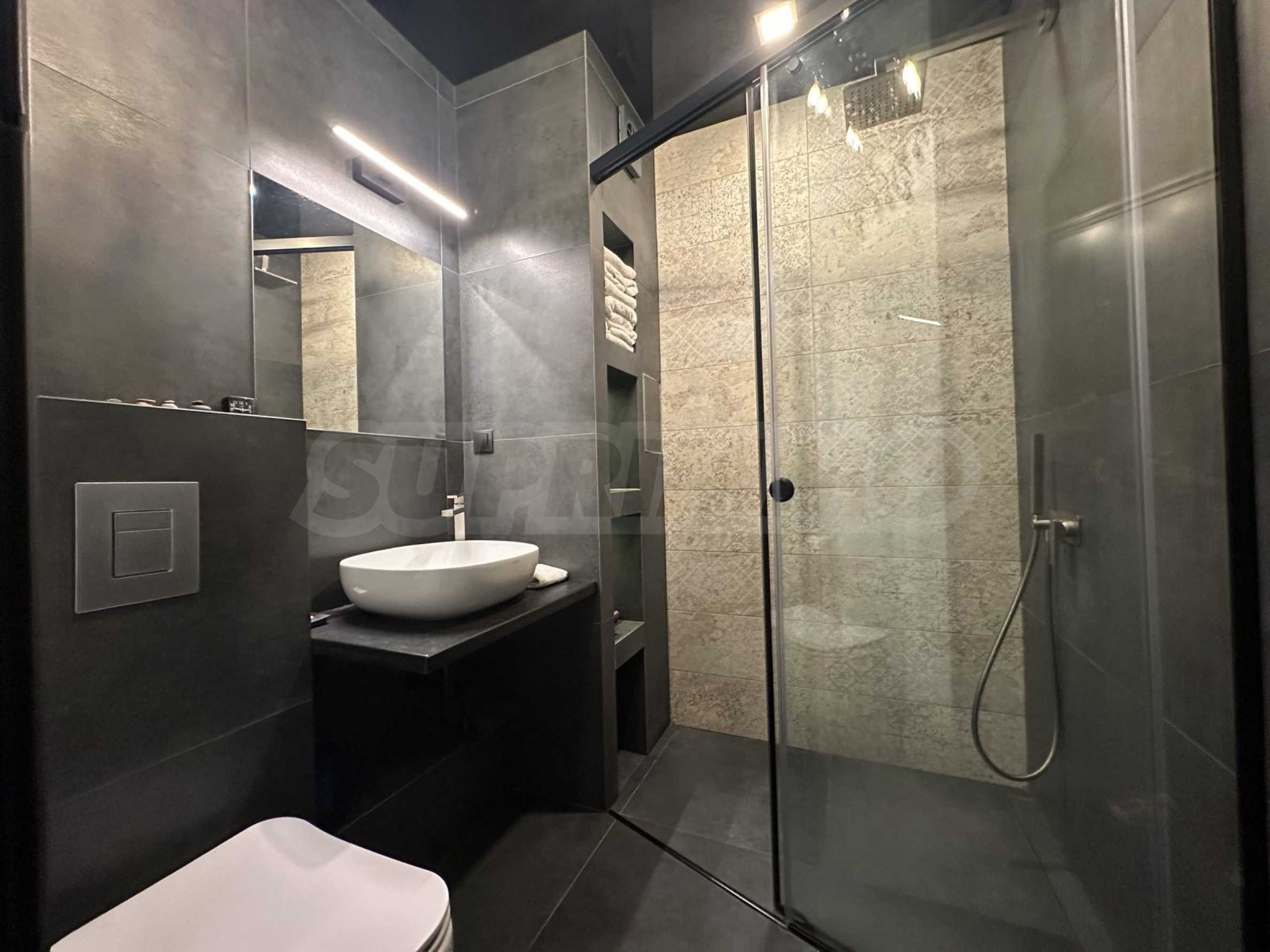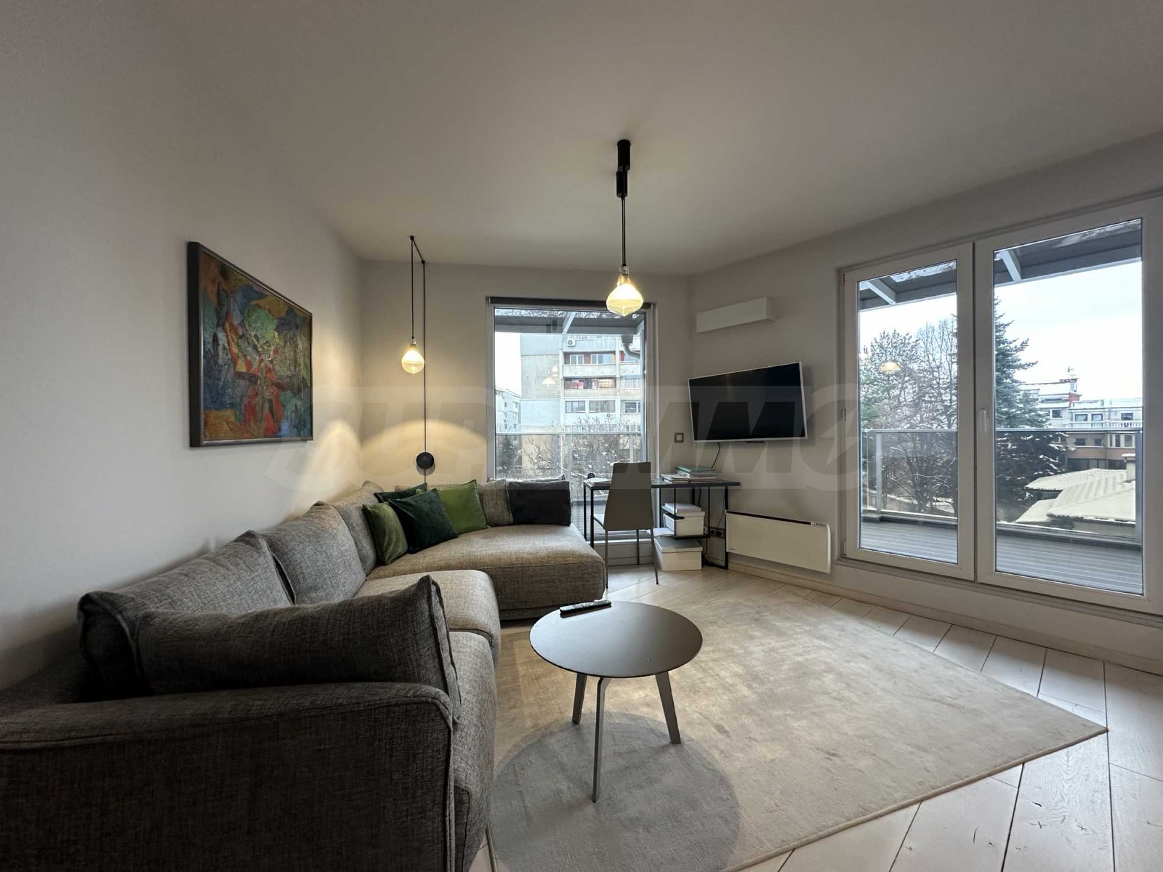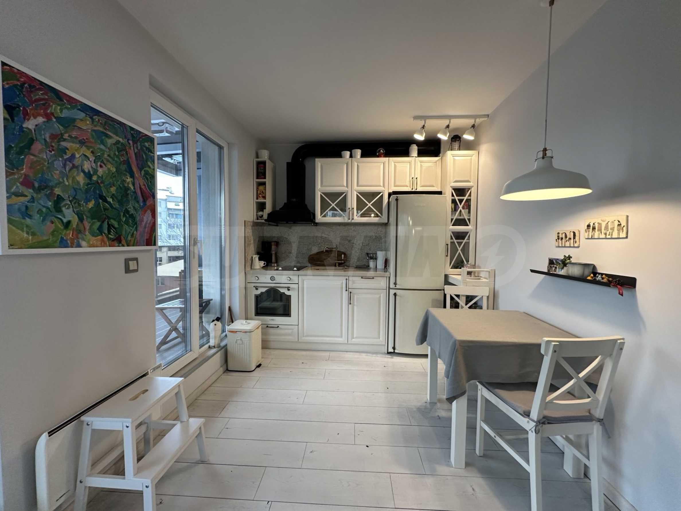 The apartment is located on the 4th floor and offers a wonderful view of Vitosha Mountain. It is located in a small and boutique building with luxurious common areas and an elevator. The maintenance fee is 25 BGN per month.