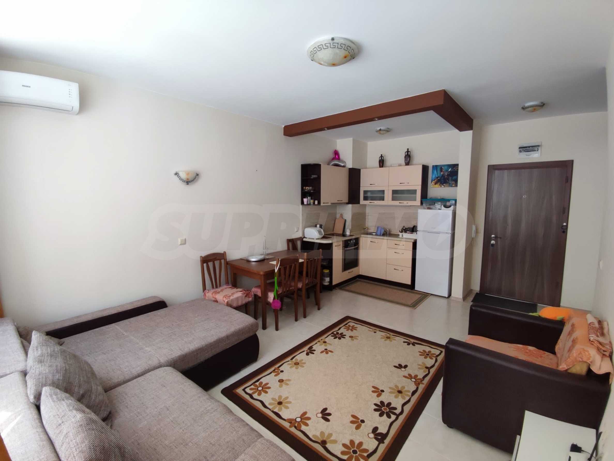We present for sale a fully furnished and equipped one-bedroom apartment in a gated complex on the beach in Ravda.
