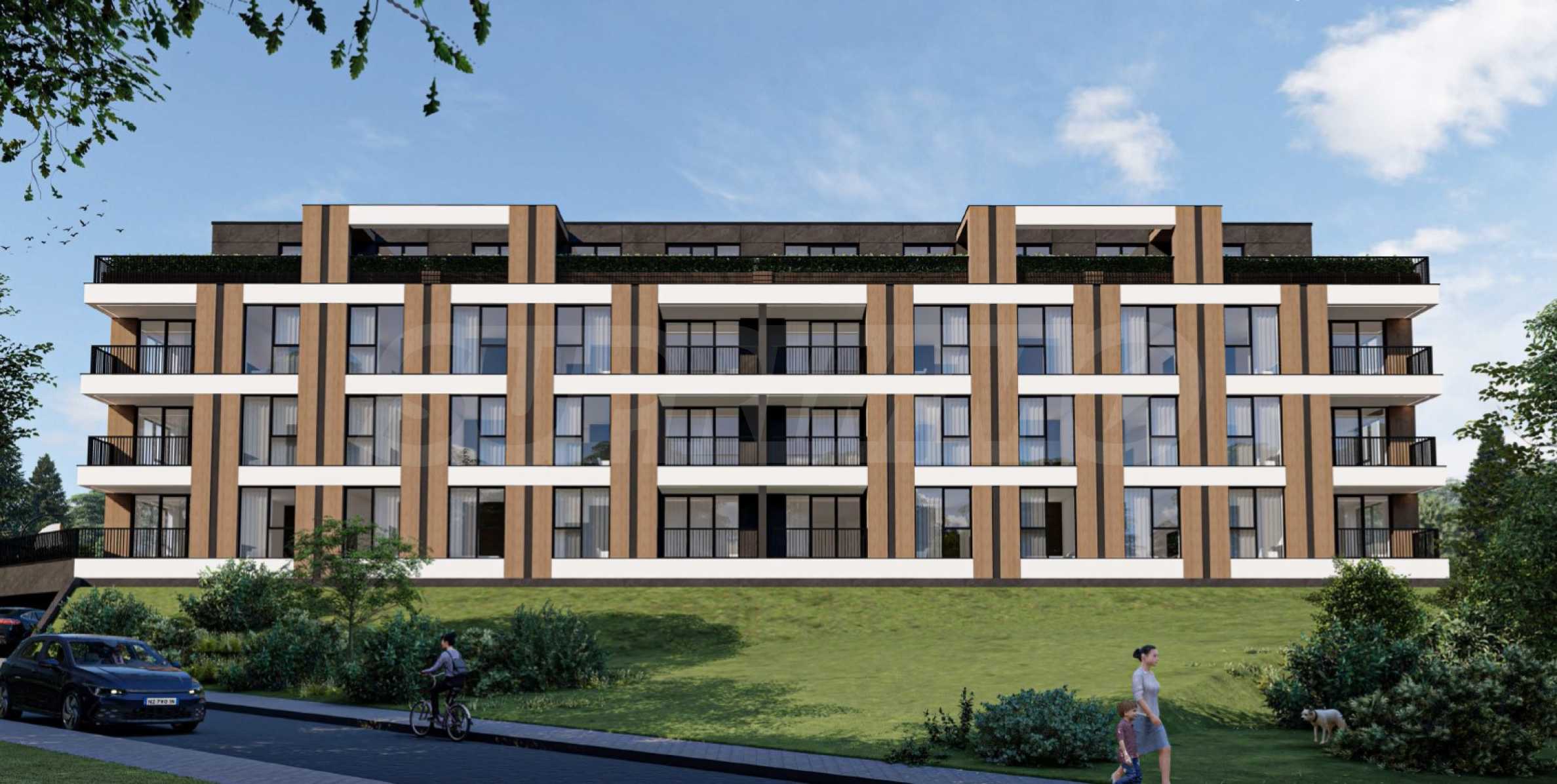The building has a total area of 3799.46 m2 and its own park of over 1 decare, beautifully landscaped, with a children's playground. The low-rise construction (3+1 floors) and the small number of apartments provide maximum comfort for the residents. On the ground floor are located properties with their own yards, and the premium apartments on the top floor offer unique views and spacious terraces with options for a jacuzzi, barbecue and landscaping.