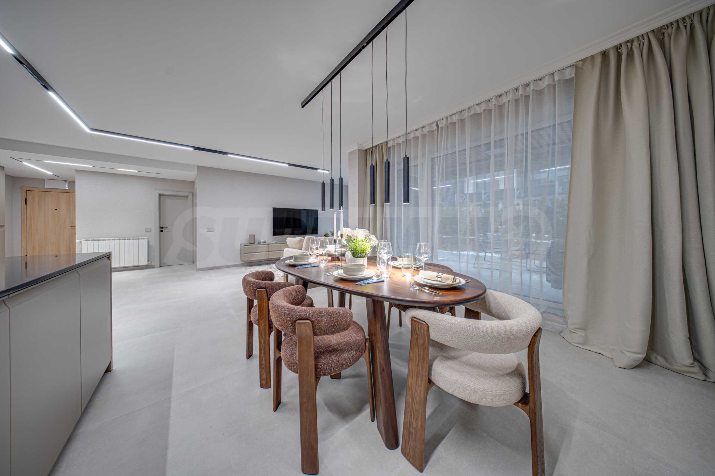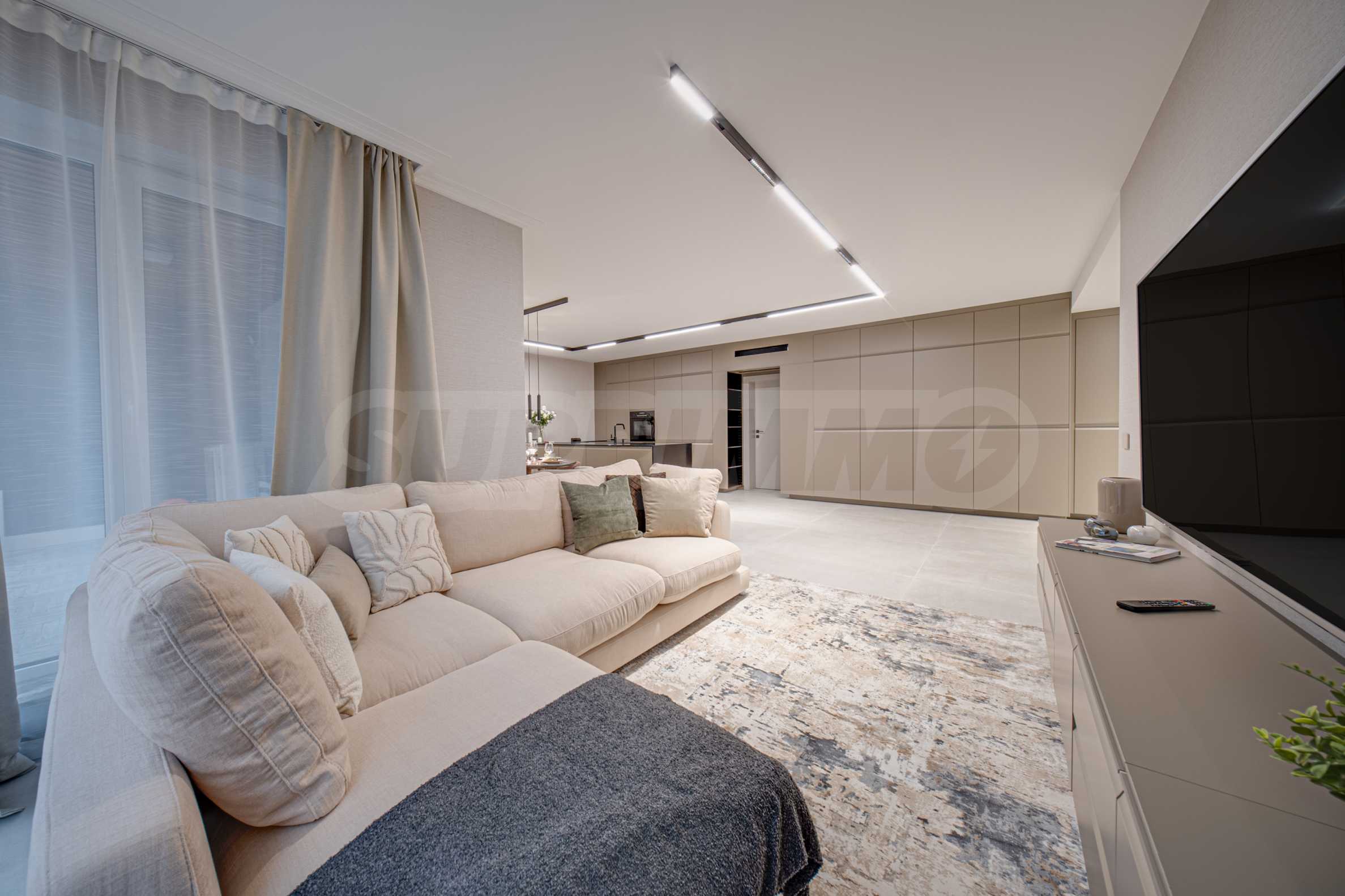 The apartment is offered with high-class finishing works and occupies the ground floor of a total of 10 floors.