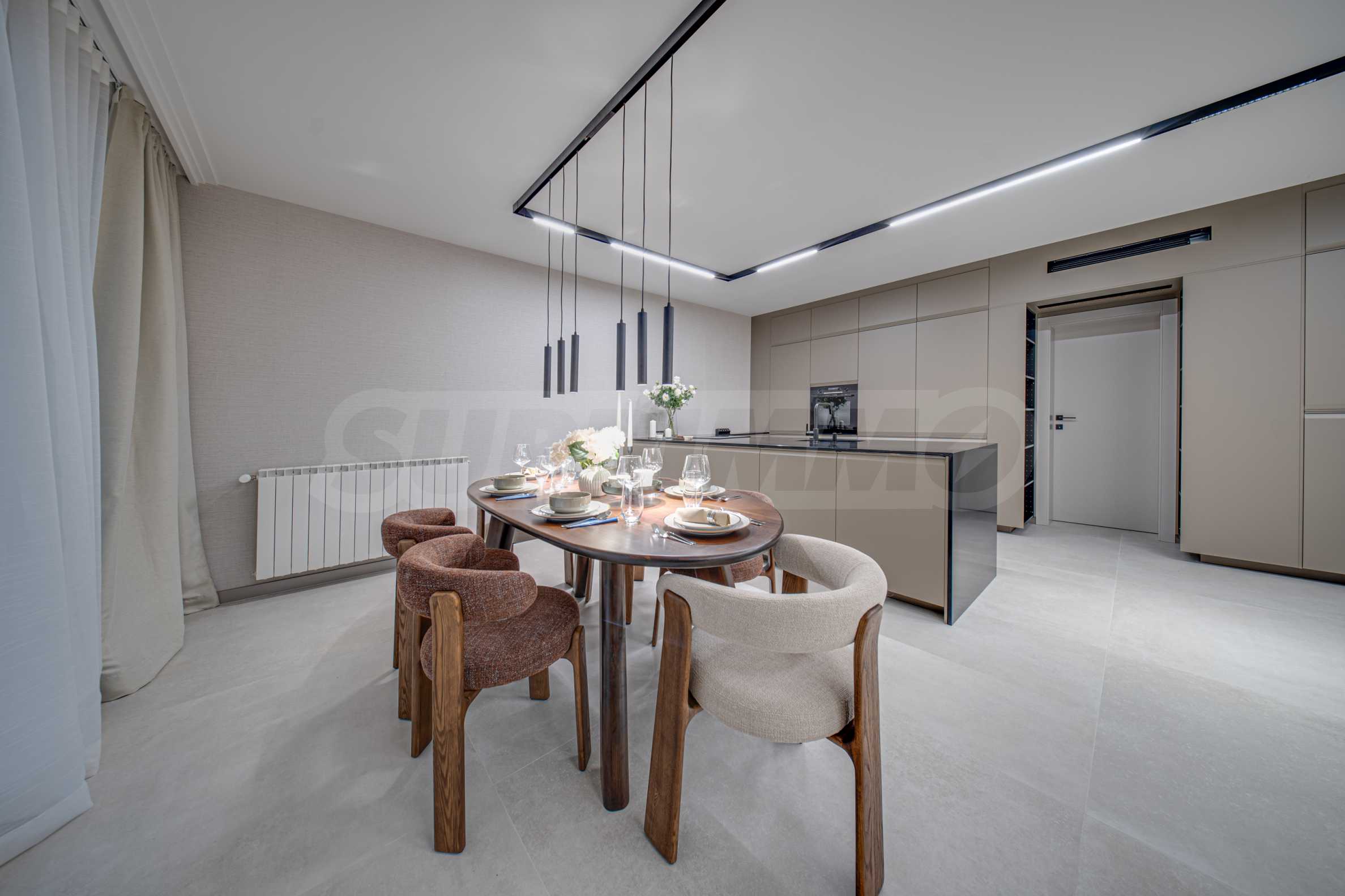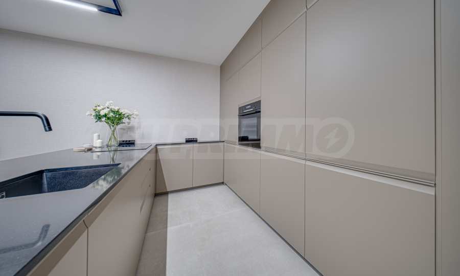 Inspired by Zen philosophy, the architectural project creates a sense of movement, dynamism and a desire for expression in a natural way and is a natural complement to nature, through the materials used - stone, wood and iron. The forms are as clean as possible, the facades are made of milled limestone fascias, and the large windows create a feeling of purity, spaciousness and perfect synchronization between each of the elements used. Particular attention has been paid to the internal common areas, which are impressive and combine a combination of paneling, plaster and granite.