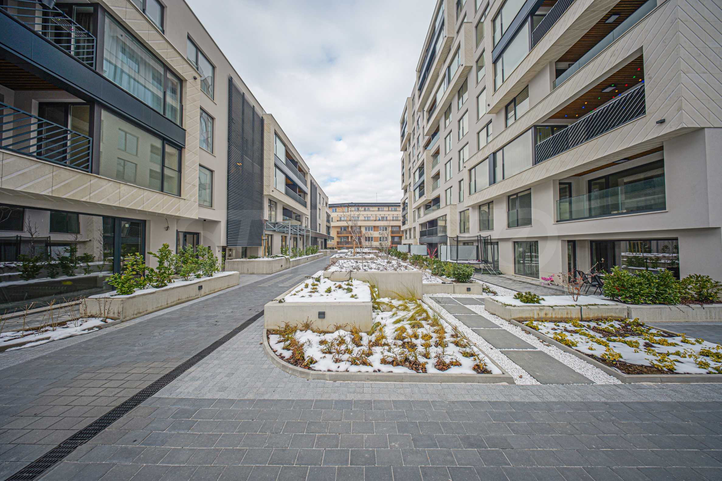 The project consists of two buildings with a common underground parking lot and a beautiful garden with lots of greenery located between them. Of the total area of the terrain of 3400 m2., on which the complex is built, 800 m2. are allocated for an inner courtyard with a separate park environment and places for residents to relax. The building has a built-in video surveillance and access control system.