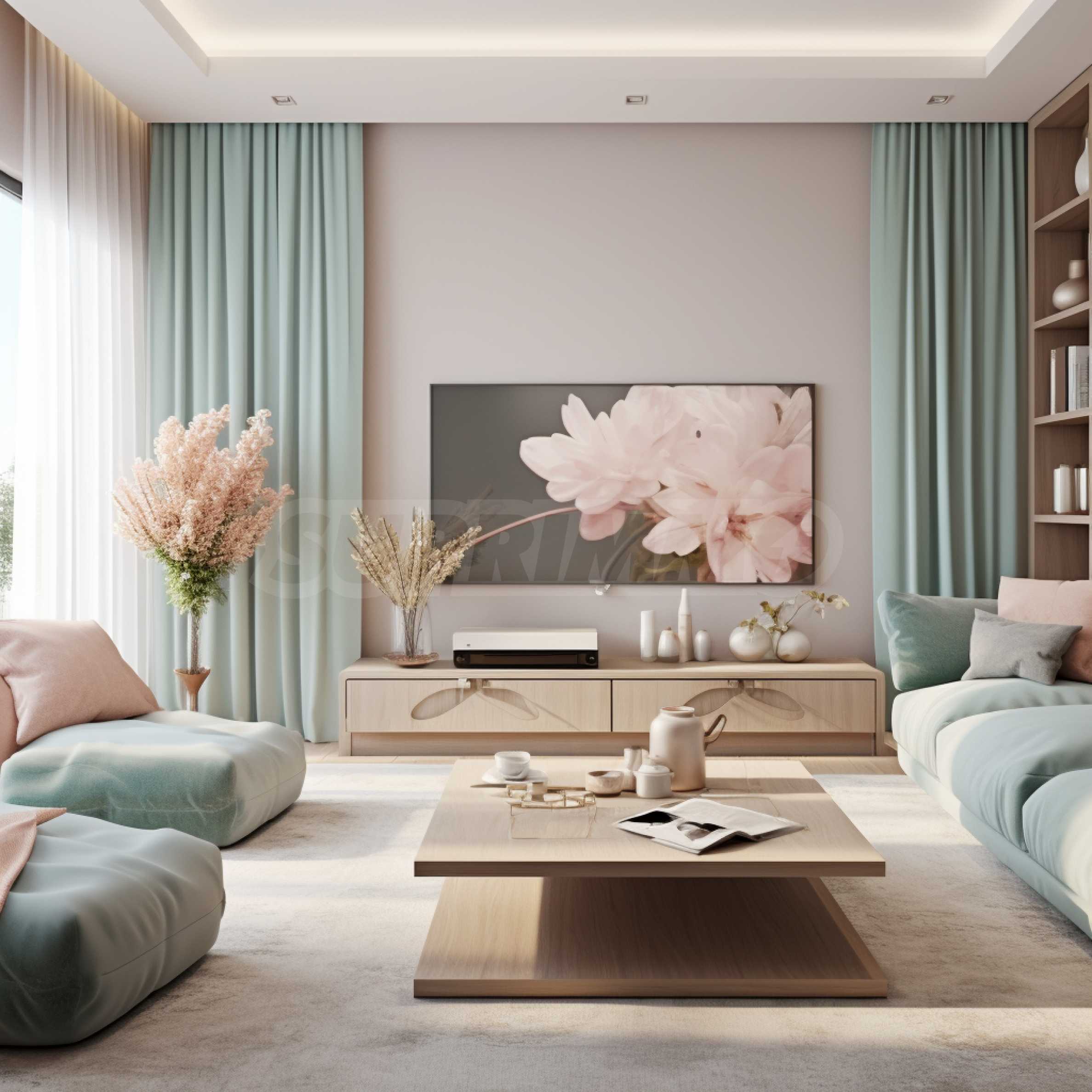 There is a possibility for finishing works according to individual interior projects. The images with furniture are exemplary.
