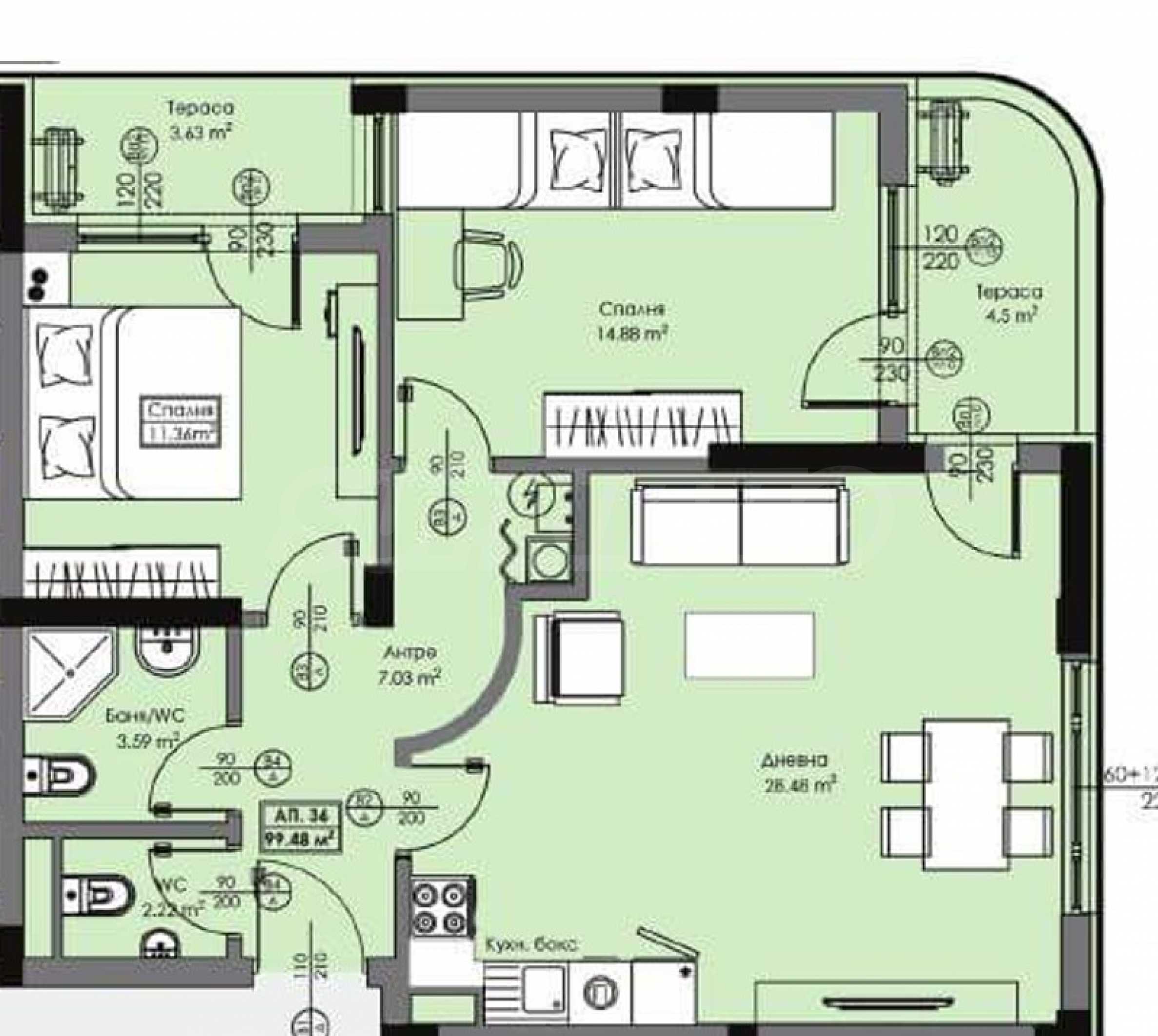 We present for sale a two-bedroom apartment in a modern residential building in a newly developing area - Madika area in Burgas, "Slaveykov" quarter.