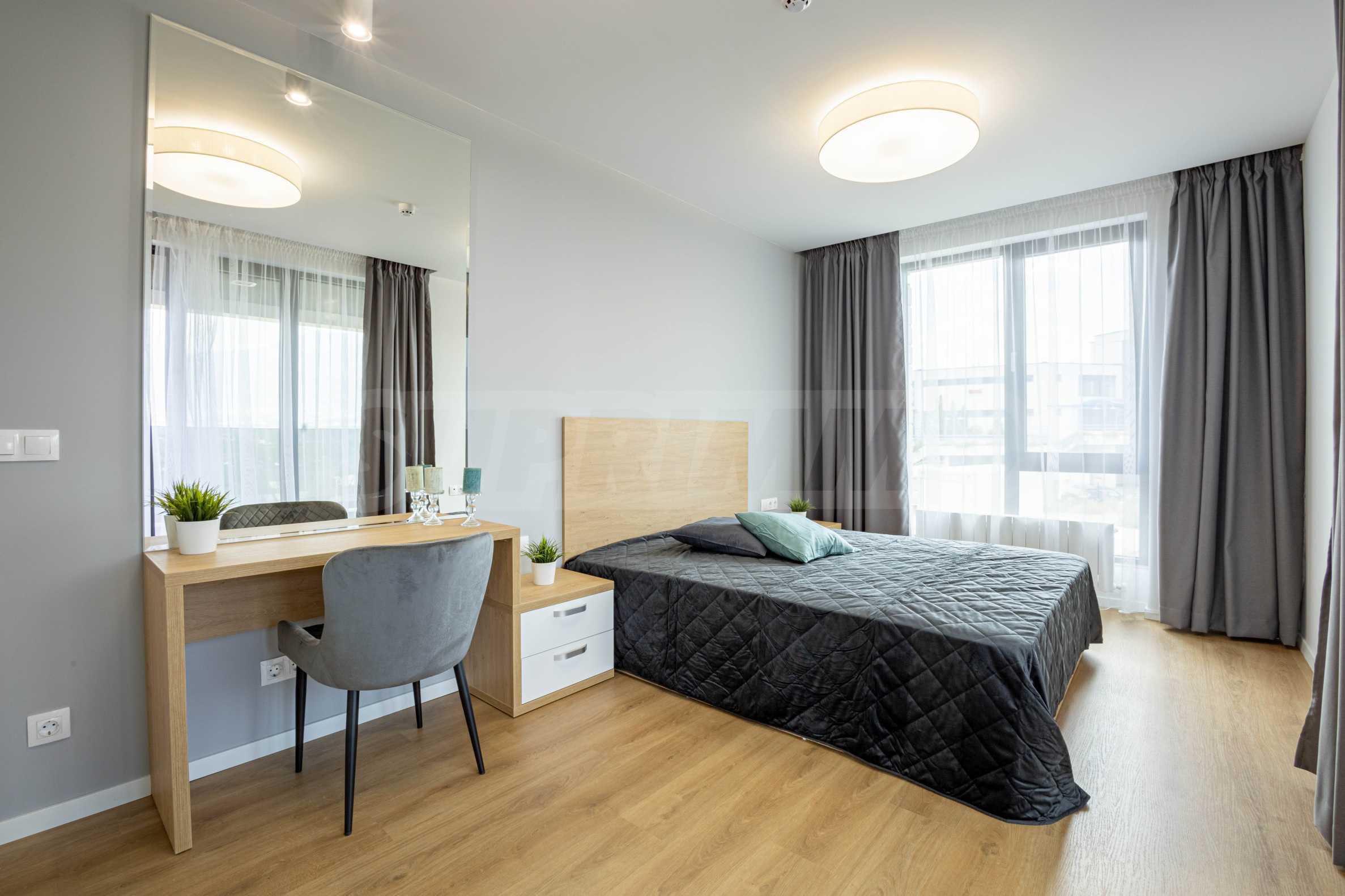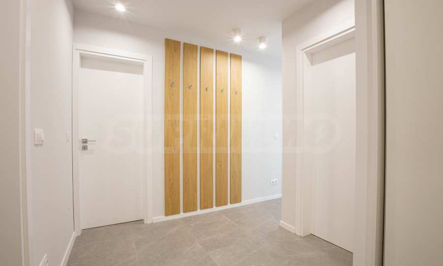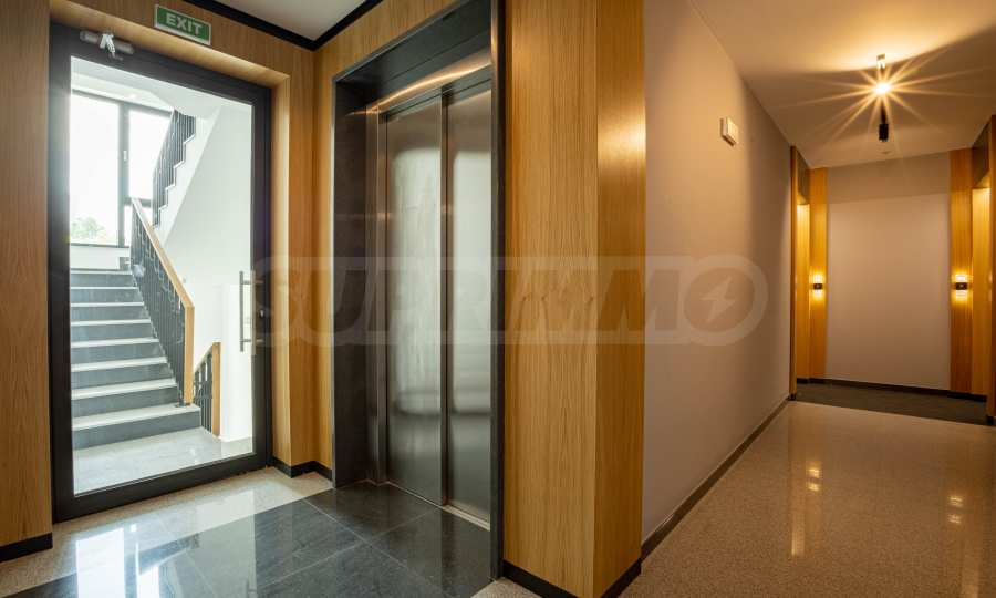 The apartment is located in a new, modern complex with a wonderful landscaped yard in the "Mladost" district, near the "Bulgarian School" school. The building has a video surveillance system, built with a DVR device and cameras with night vision, installed on all approaches to the building. The park area around the building is abundantly landscaped, with an automatic irrigation system, park lighting and alleys, implemented according to an individual project.