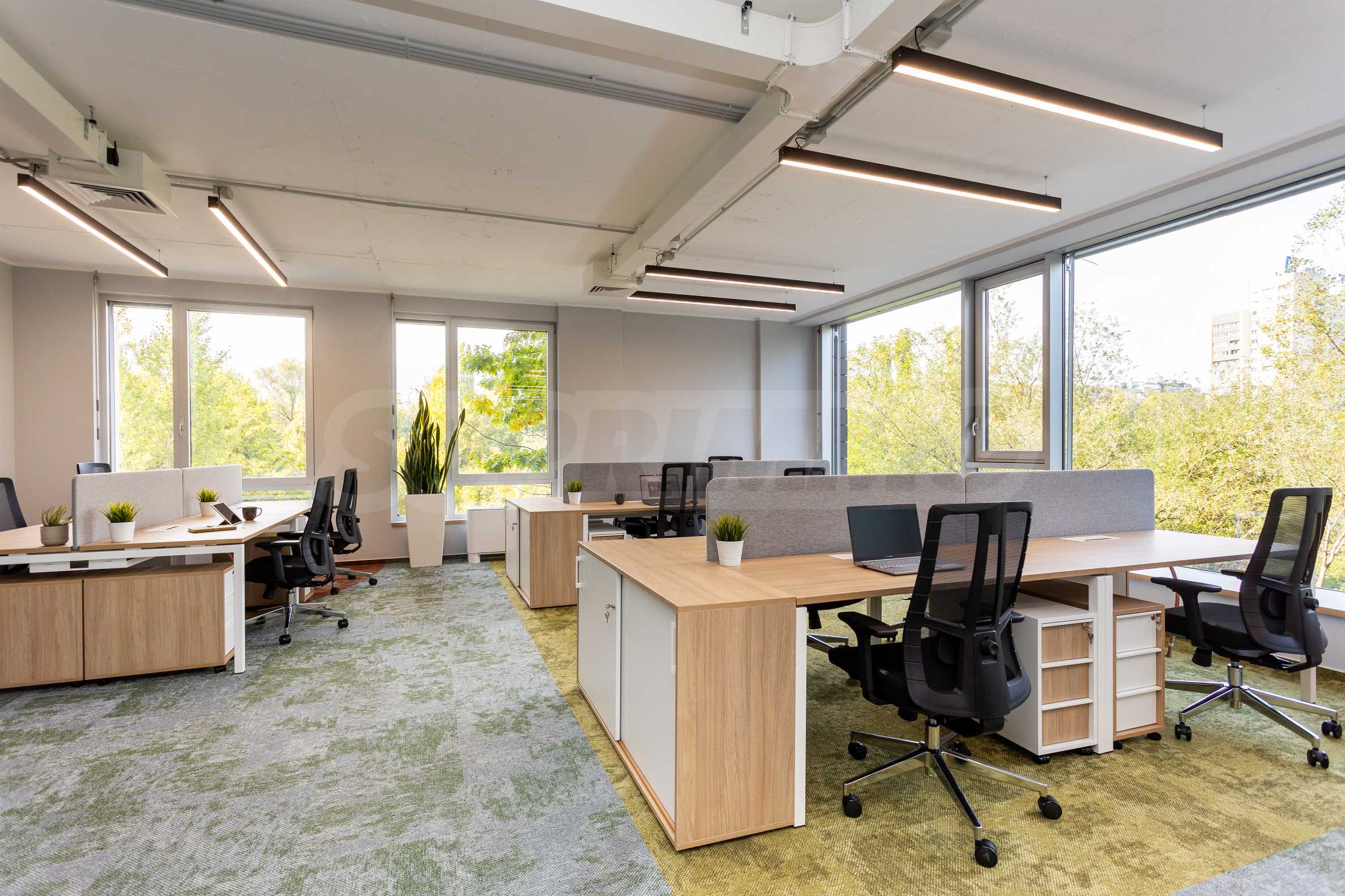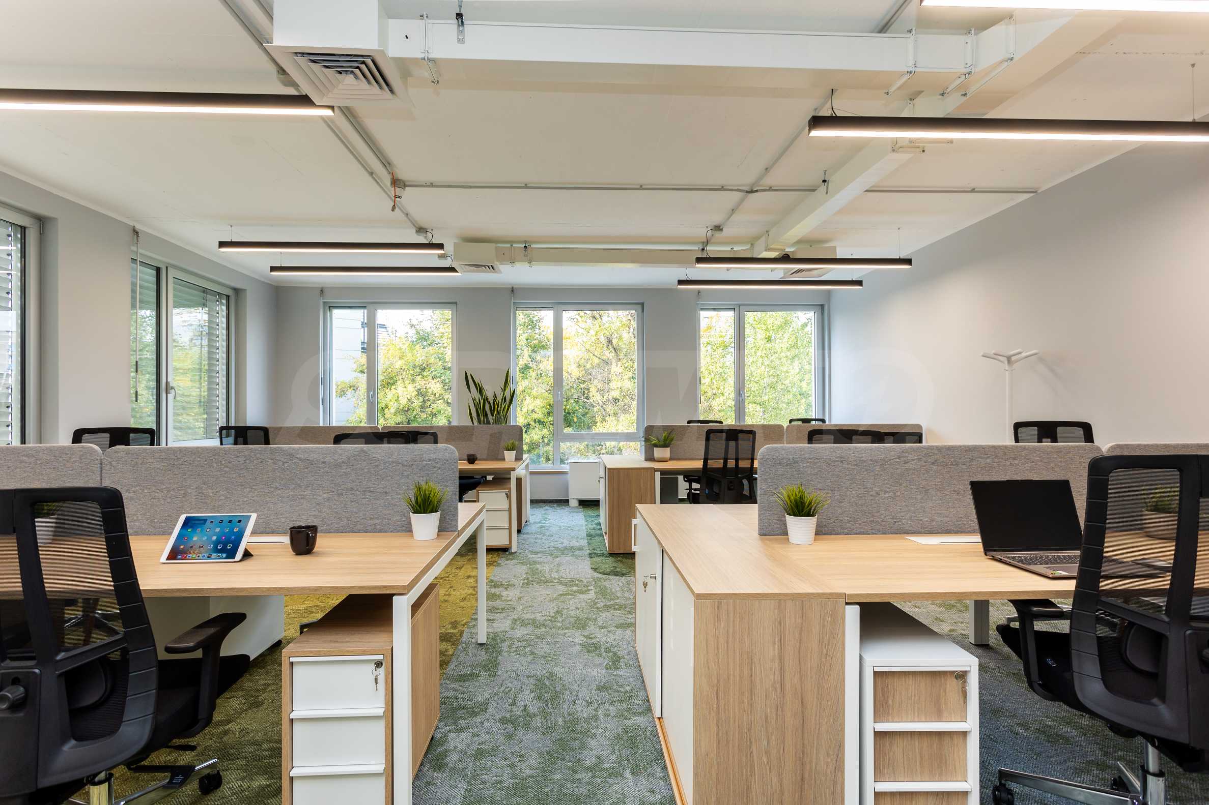 Modern office space in a prestigious class "A" building 700 meters from the metro station "G. M. Dimitrov". The area brings all the advantages of a business location. The main roads are Tsarigradsko Shosse Blvd., G.M. Dimitrov Blvd. Access is easy and convenient, only 9 minutes by car to the airport and 5 minutes to the center. The building has a representative luxurious lobby with a reception and a 24/7 concierge, as well as halls, a restaurant, a cafe and terraces for common use, three elevators and two staircases.