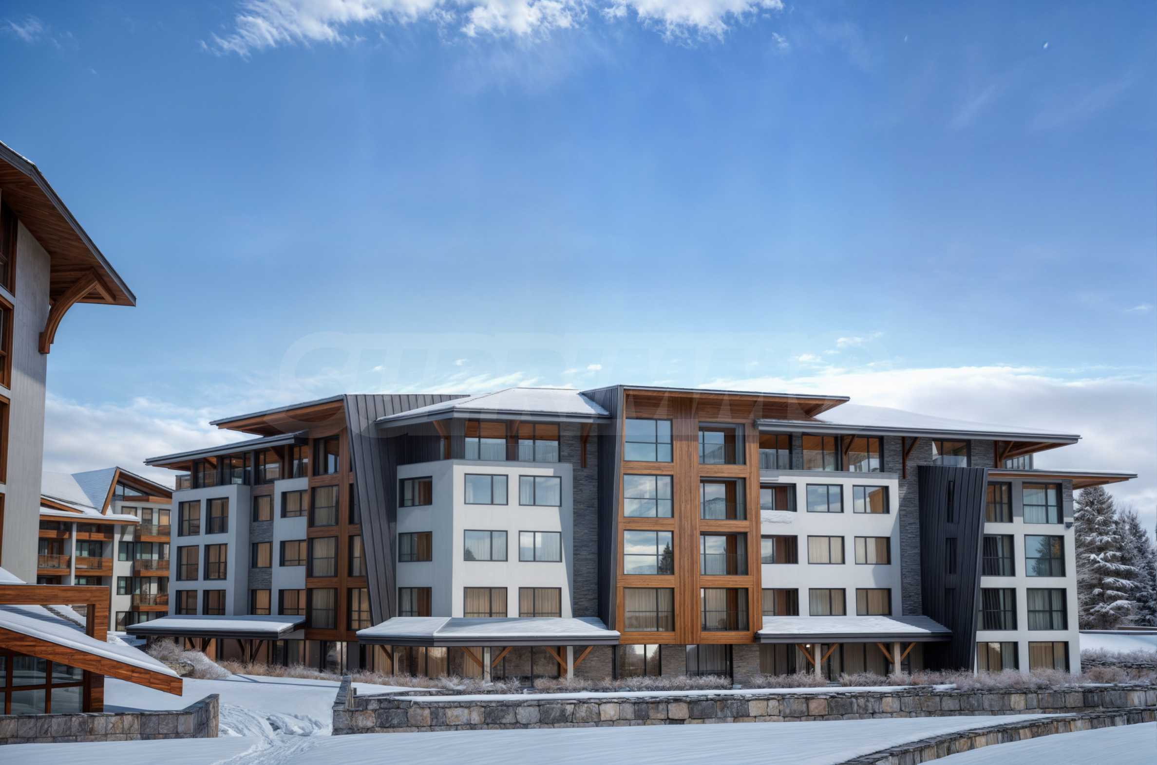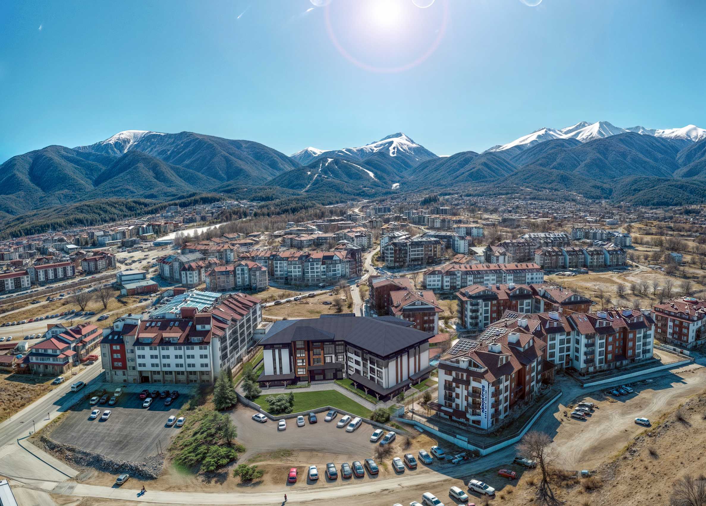 The newly built and already fully operational "Belvedere Holiday Club" is an exceptional high-class holiday complex and one of the best mountain destinations for recreation in Bulgaria. The complex is gated, consisting of functional apartments and complemented by excellent amenities and facilities for relaxation and entertainment. It is located in the new modern area of Bansko, only about 400 m from the gondola lift and in close proximity to the new shopping centre Mall of Bansko.