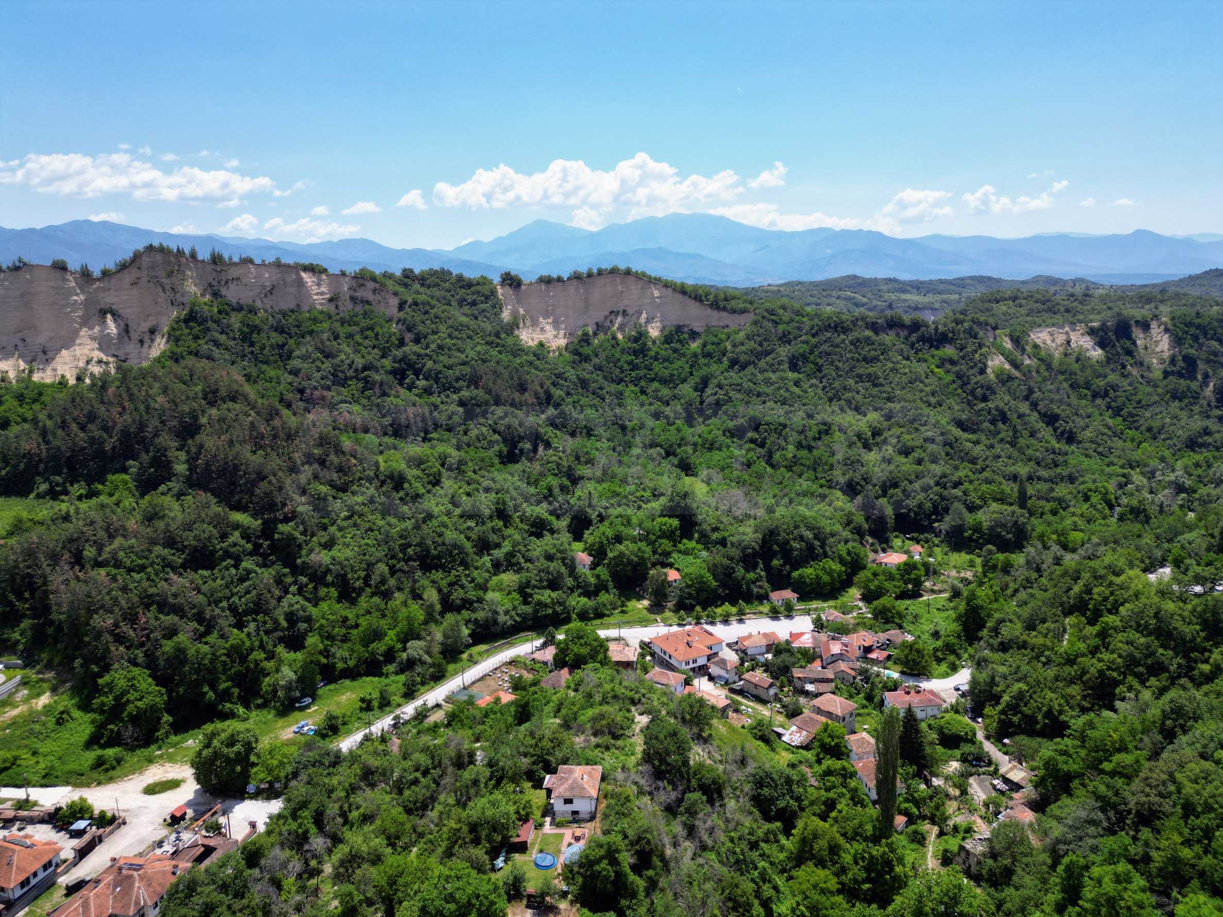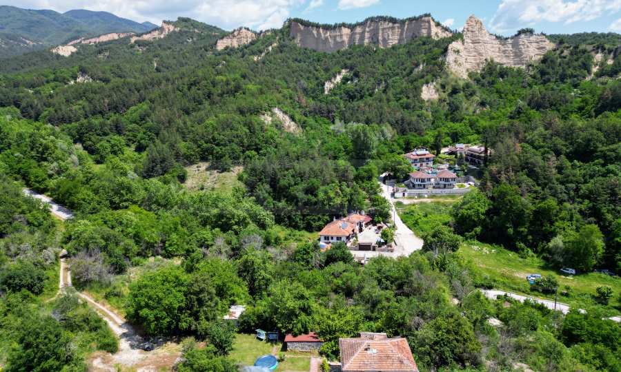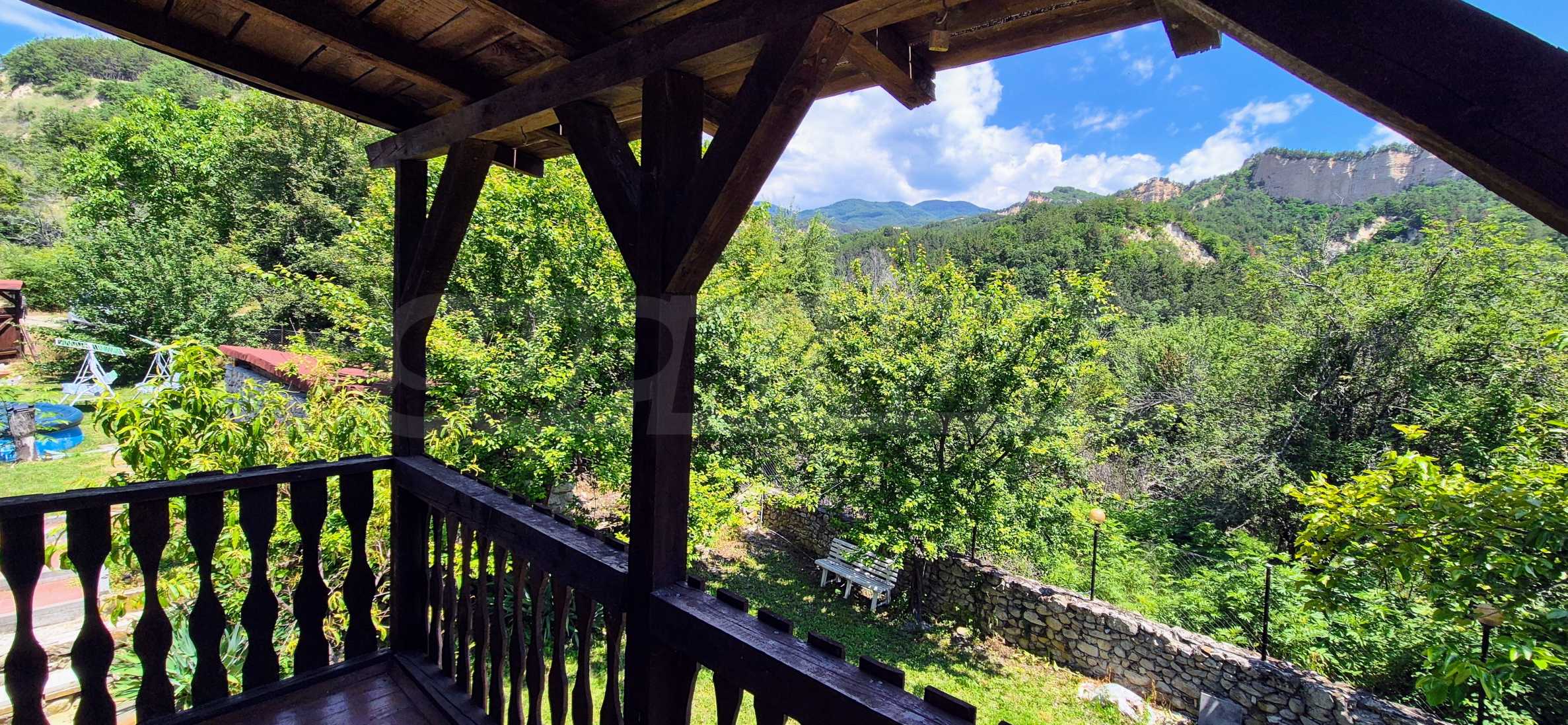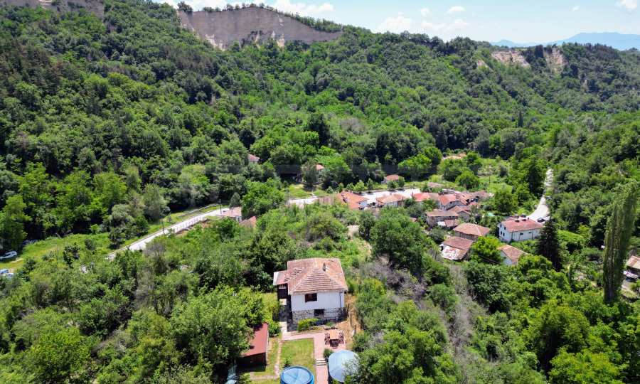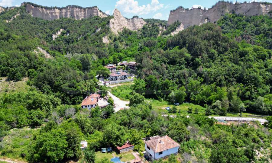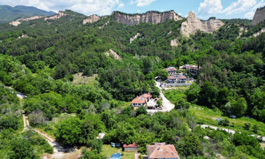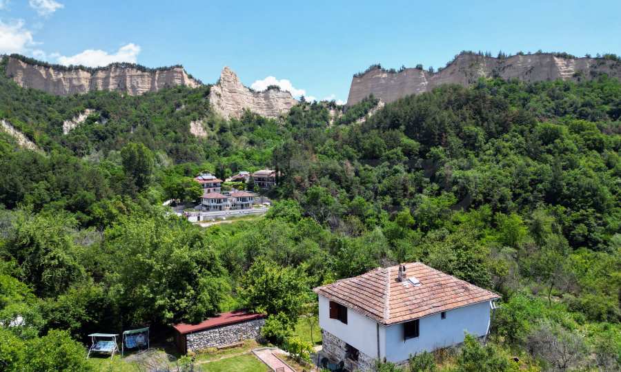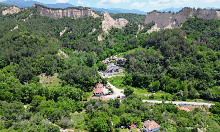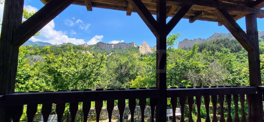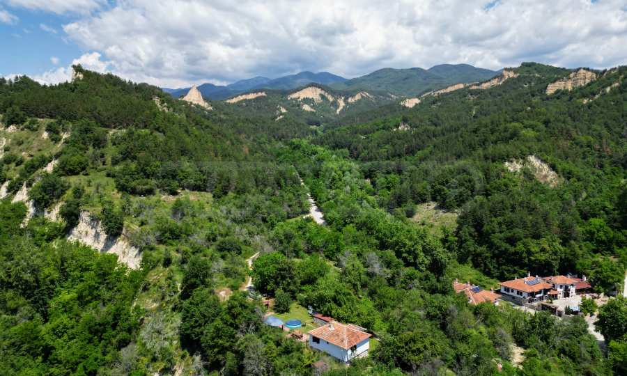 We present a wonderful property in the heart of nature – a two-story house in authentic style and modern first-class amenities, located in the village of Rozhen, in close proximity to the Rozhen Monastery. Its biggest advantage is the unique location – independently located on a hill, without neighbors and prying eyes, with panoramic views of the Melnik Pyramids and the majestic Pirin Mountain.