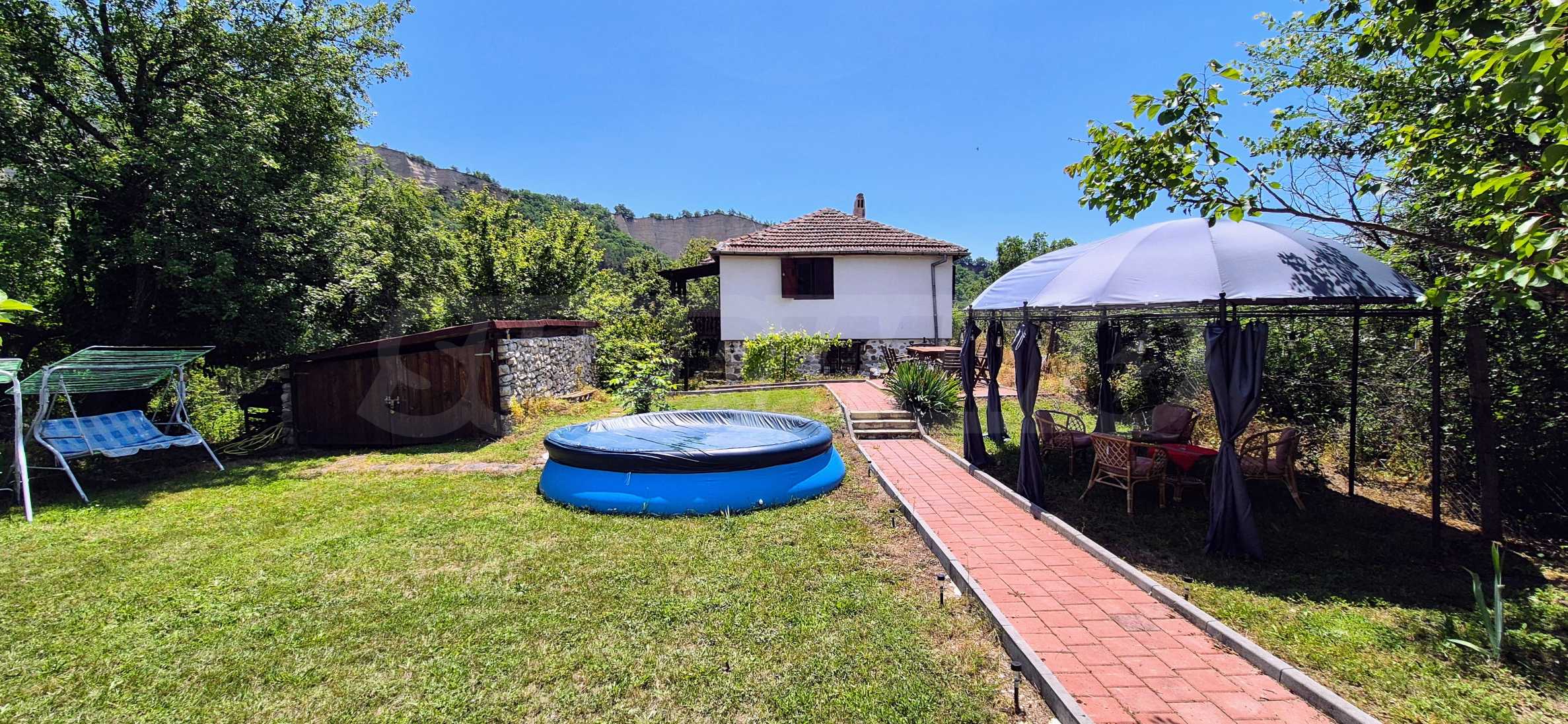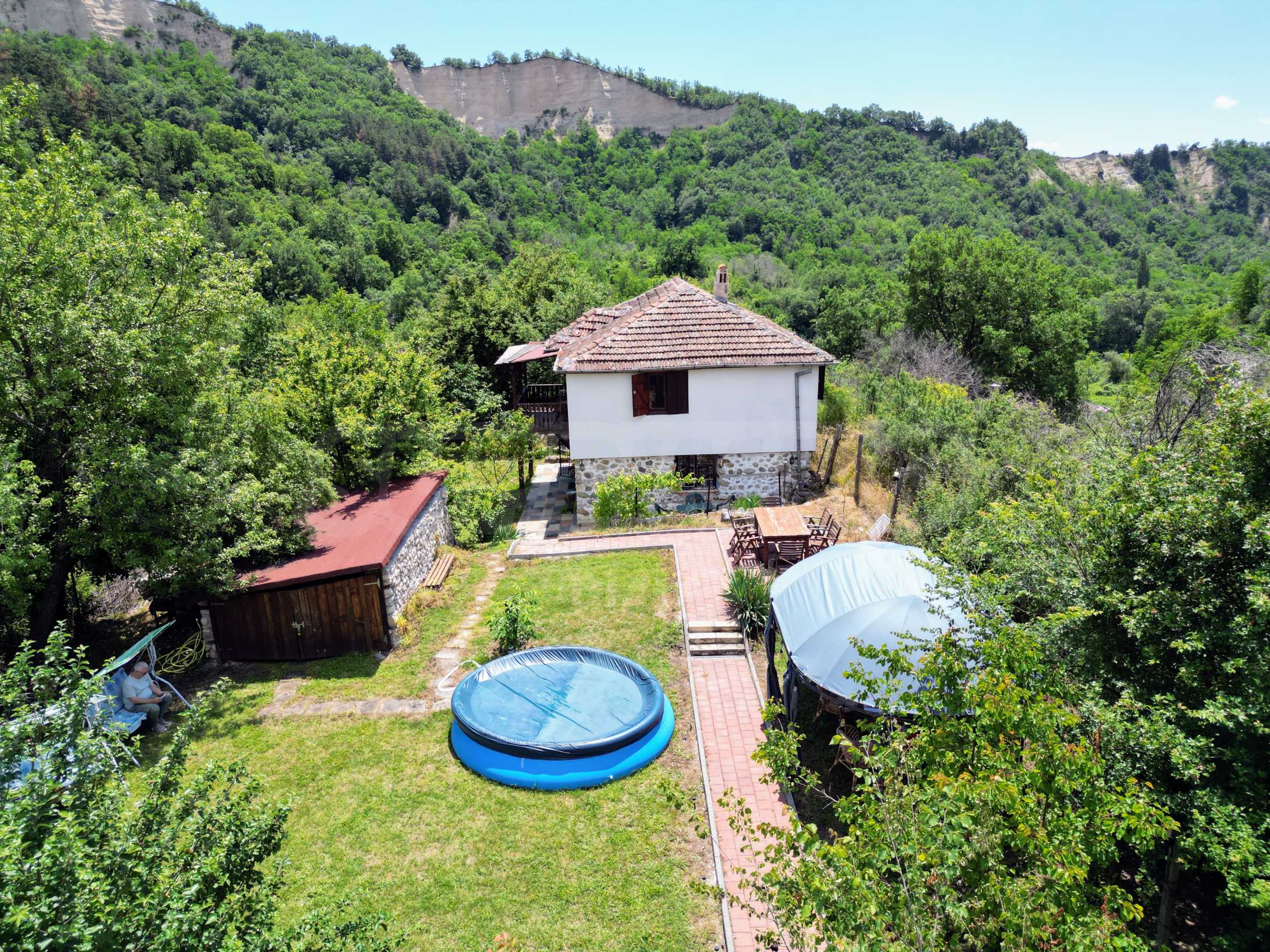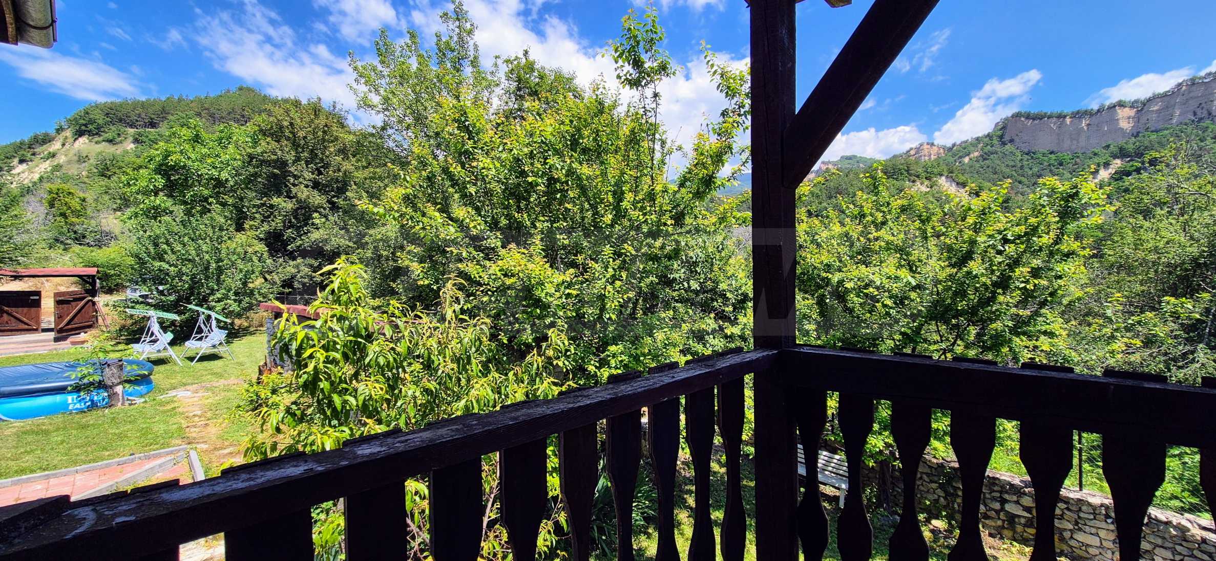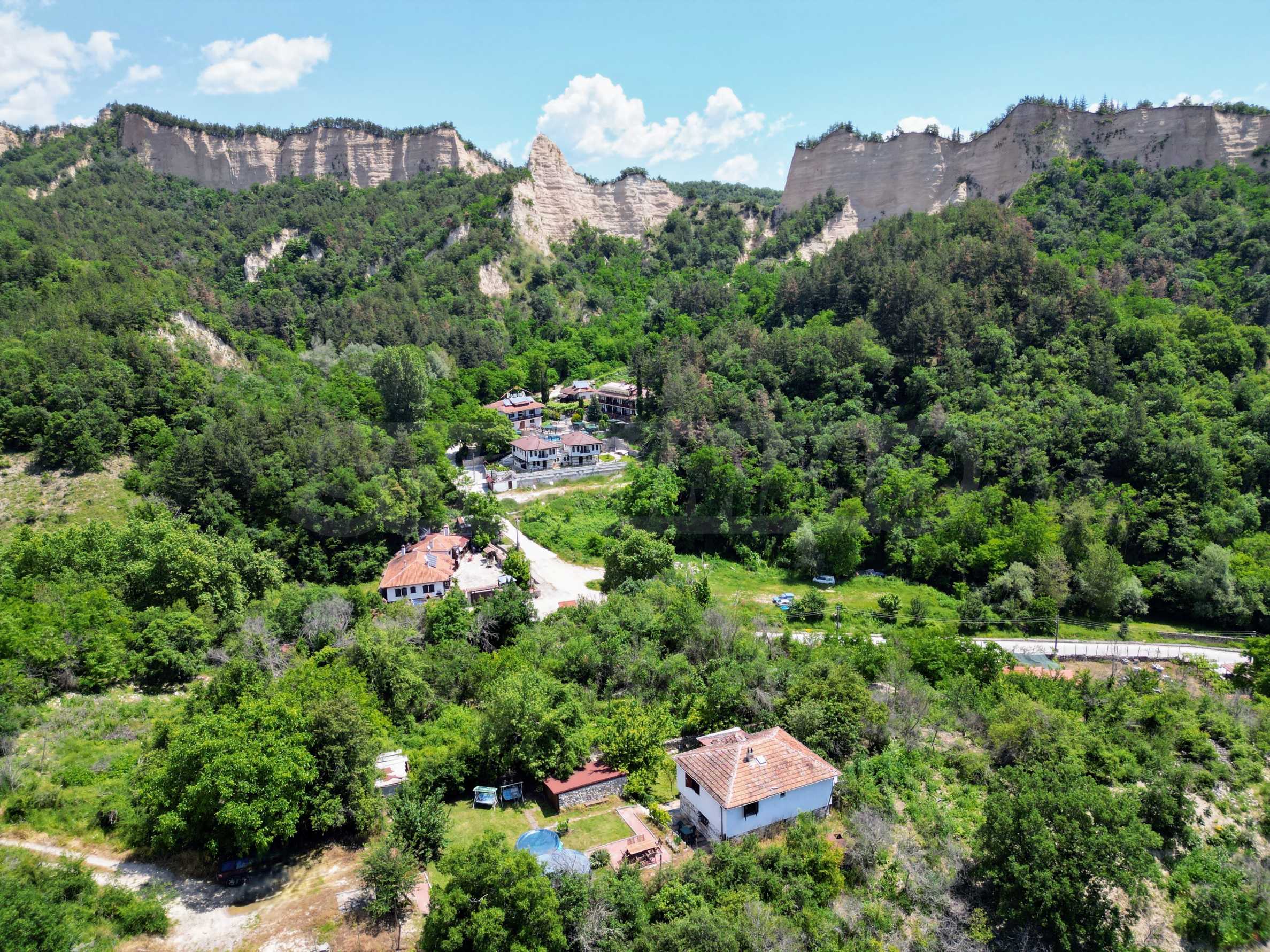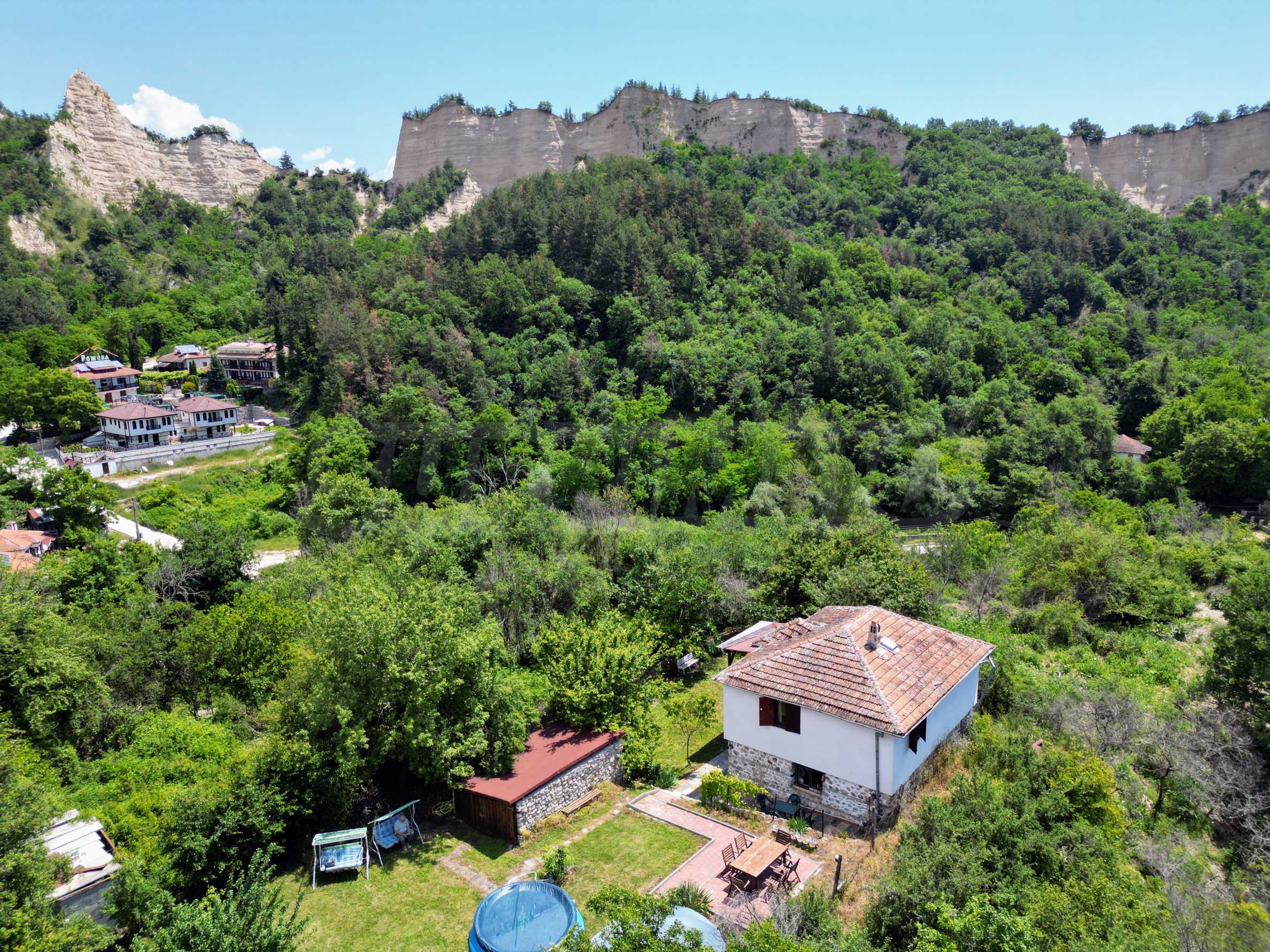 We present a wonderful property in the heart of nature – a two-story house in authentic style and modern first-class amenities, located in the village of Rozhen, in close proximity to the Rozhen Monastery. Its biggest advantage is the unique location – independently located on a hill, without neighbors and prying eyes, with panoramic views of the Melnik Pyramids and the majestic Pirin Mountain.