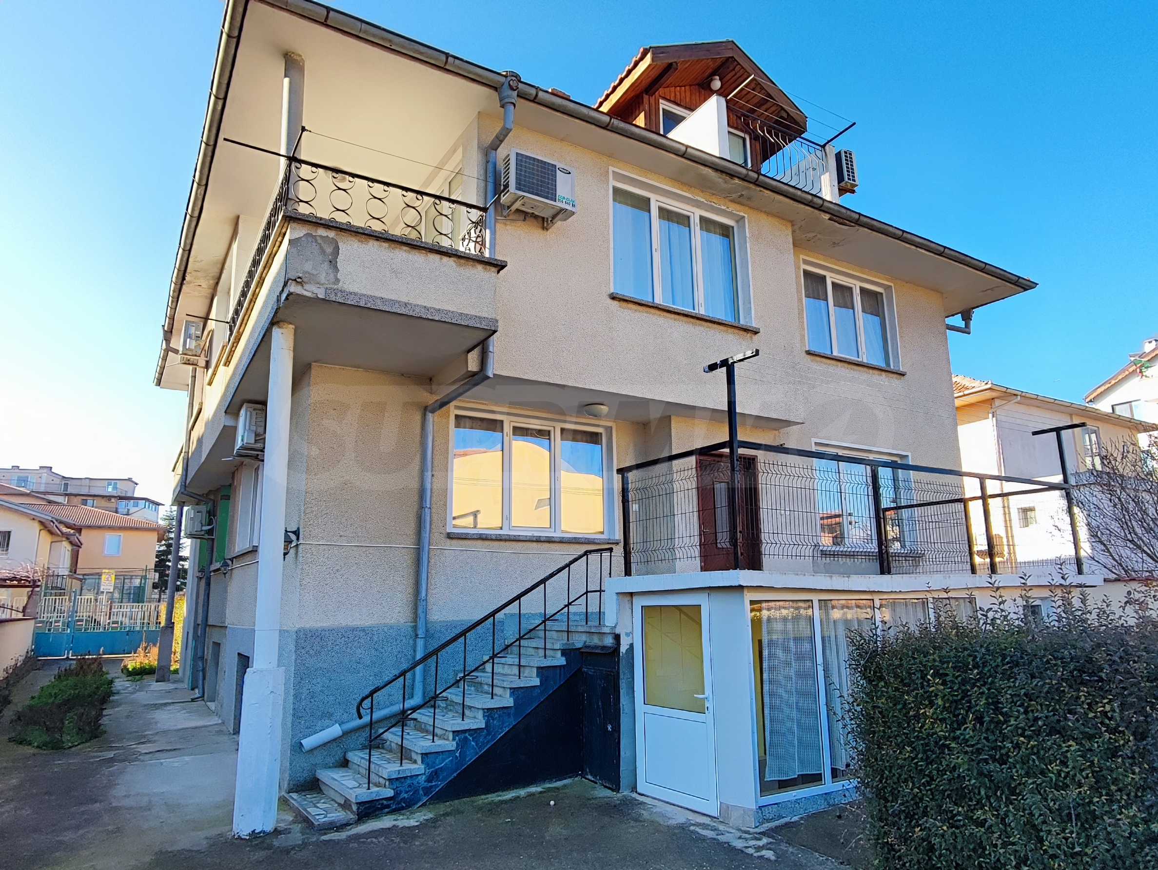 The property has a total area of 180 sq m, has 9 rooms, 4 bathrooms and its own yard. It is offered with the existing furniture and equipment.