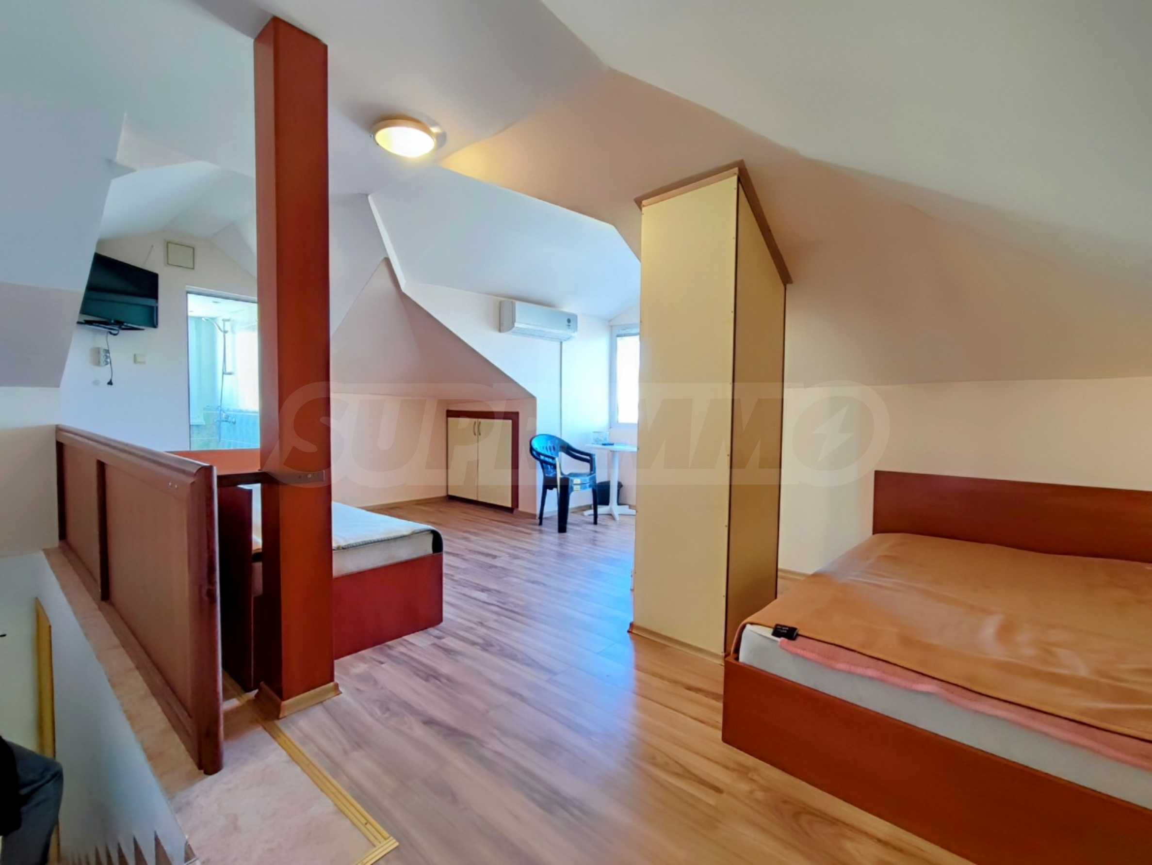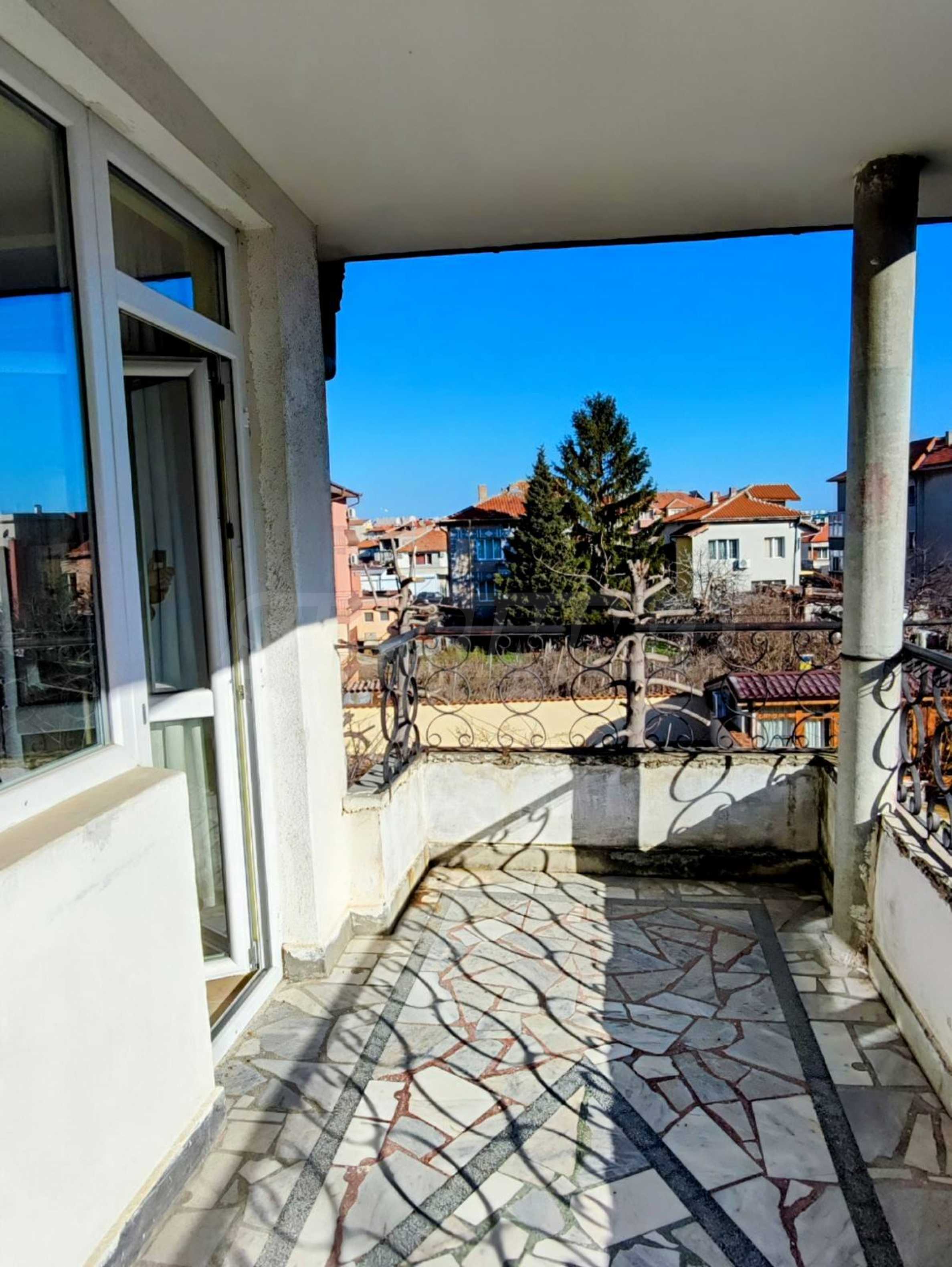 The property has a total area of 180 sq m, has 9 rooms, 4 bathrooms and its own yard. It is offered with the existing furniture and equipment.