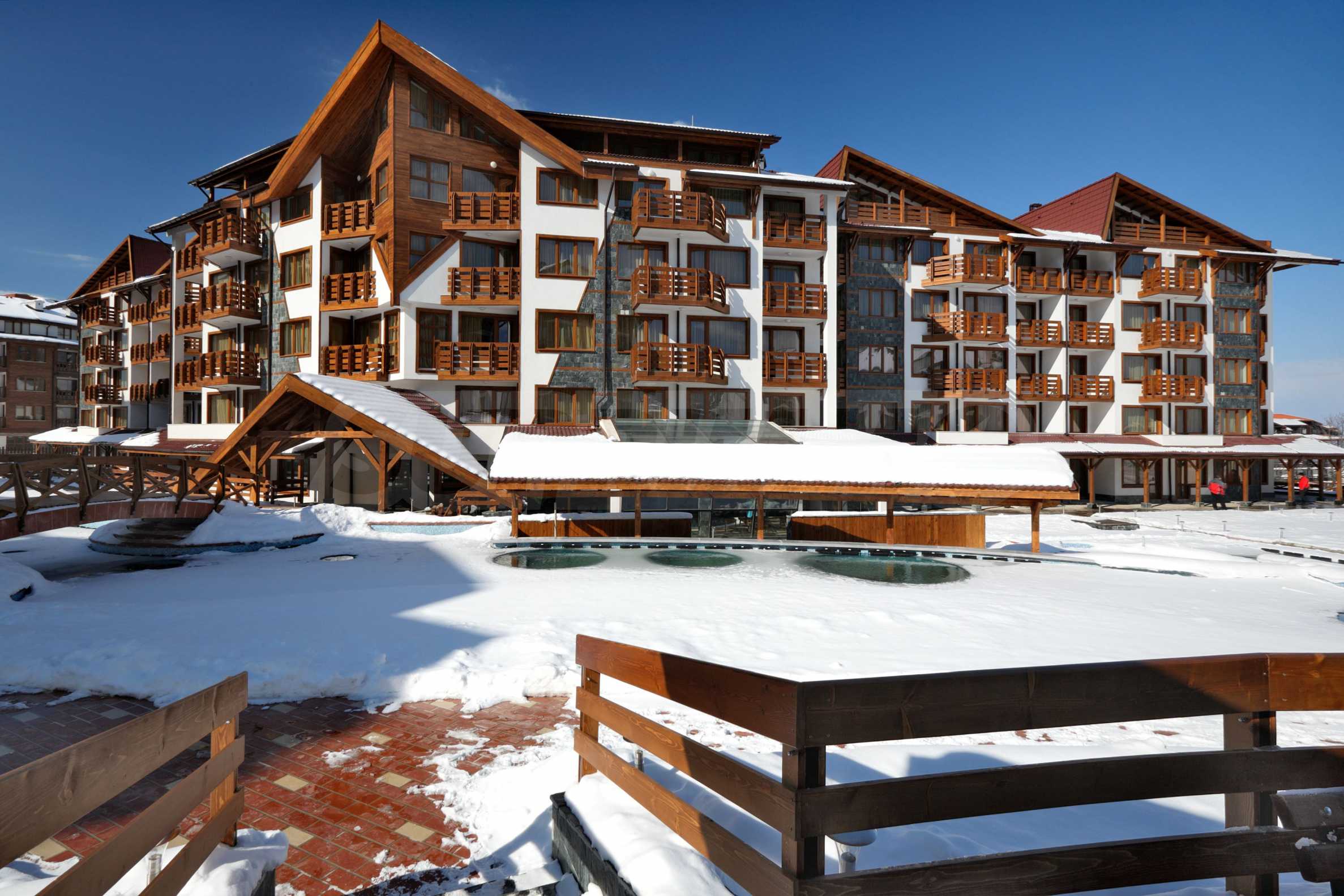 The newly built and now fully operational "Belvedere Holiday Club" is an exclusive high-class holiday complex, one of the best mountain resorts in Bulgaria! The complex is of a gated type, consisting of functional apartments and complemented by superb amenities and facilities for recreation and entertainment. It is located in the new modern area of Bansko, only about 400 m from the gondola lift and in close proximity to the new shopping center Mall of Bansko.