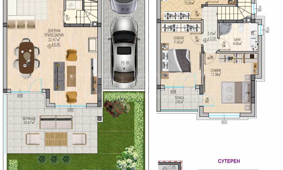 - basement with the possibility of individual use (cinema room, fitness center, SPA, playground);