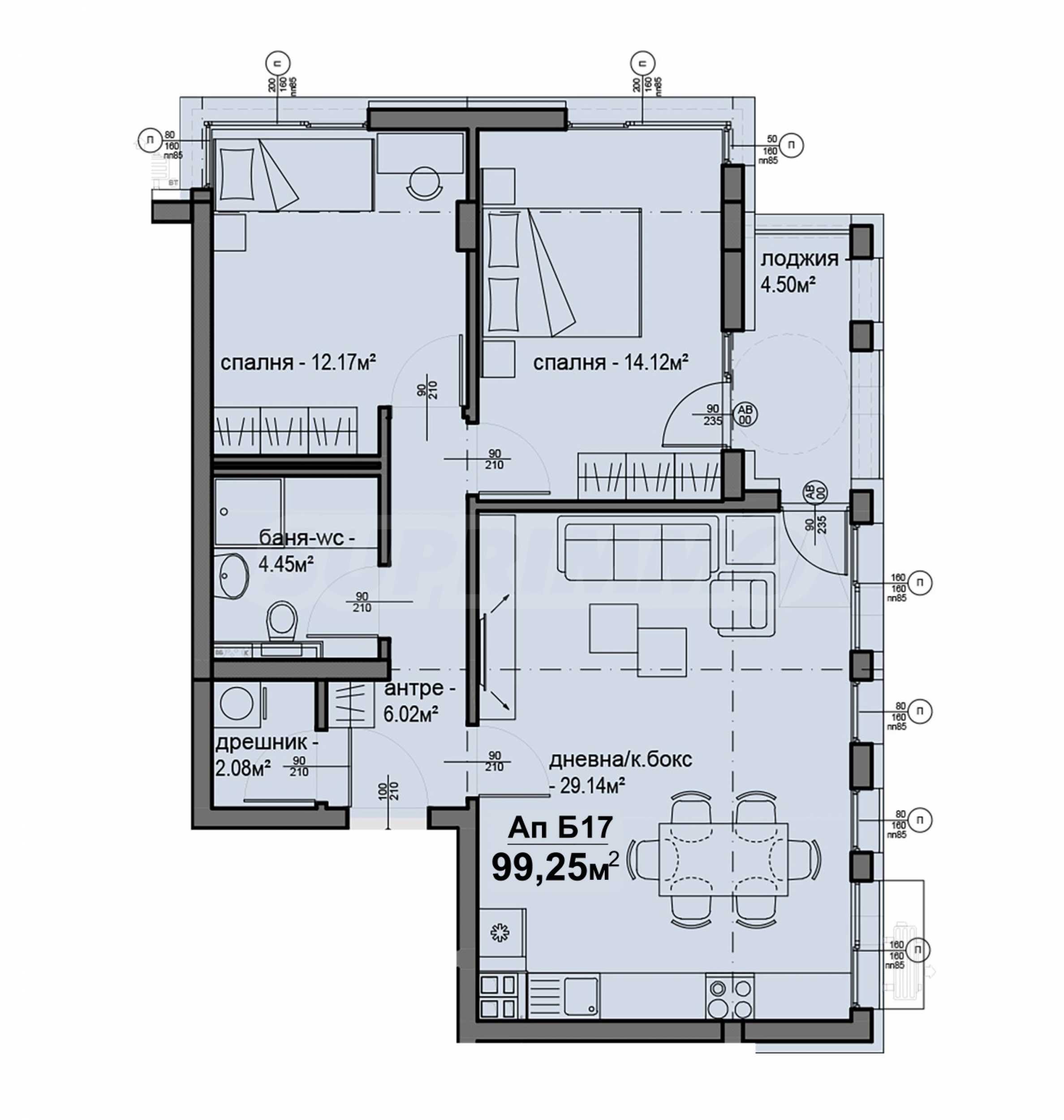 • Total area - 99.25 sq m (10.96 sq m common areas);