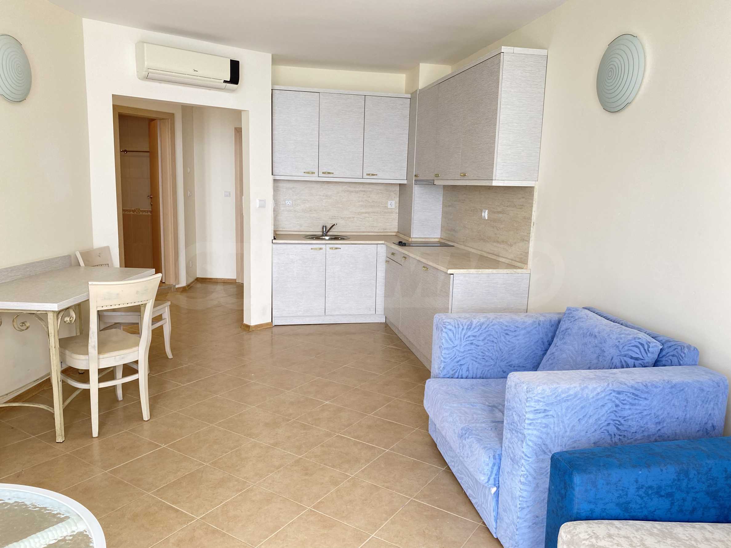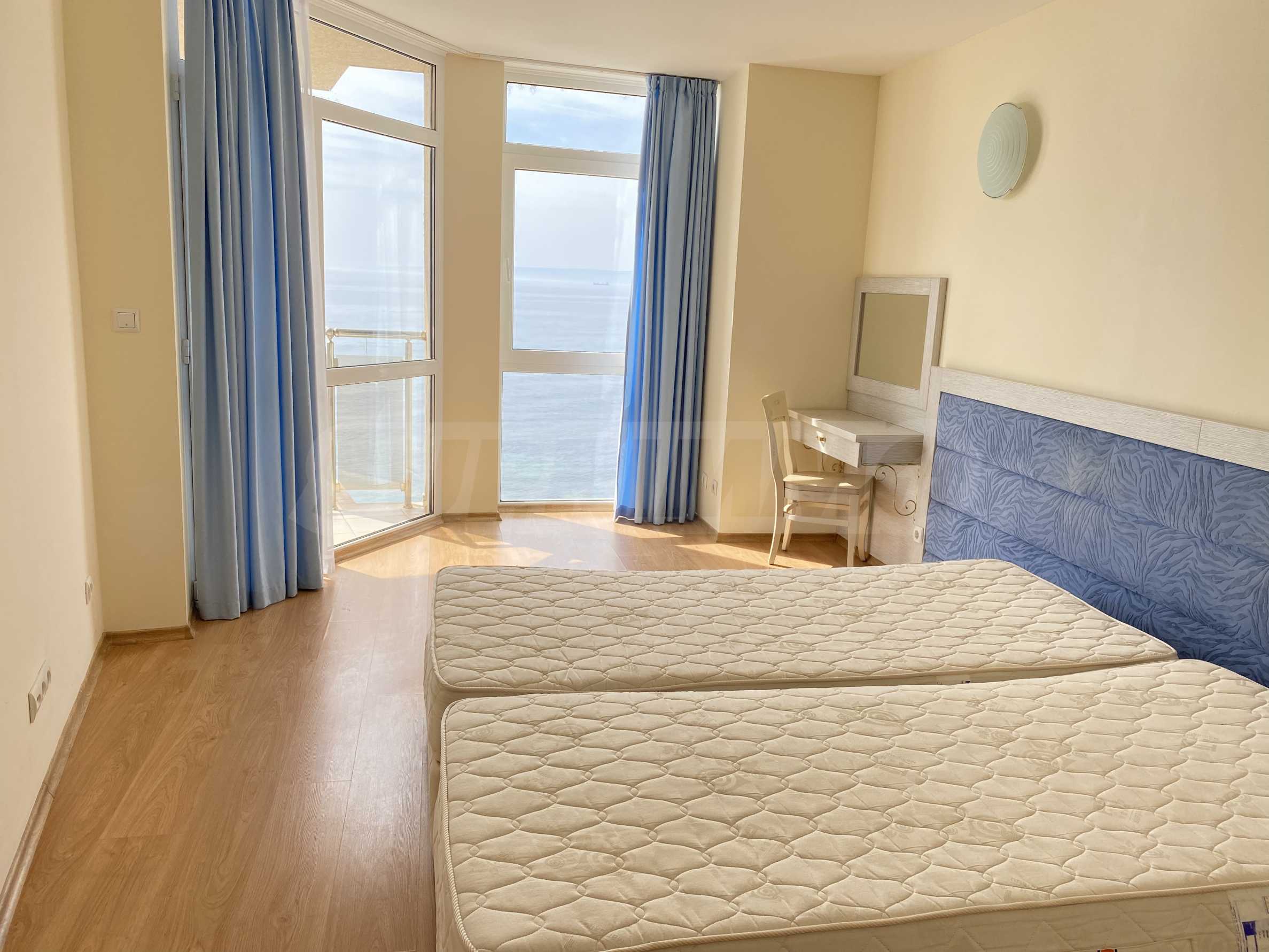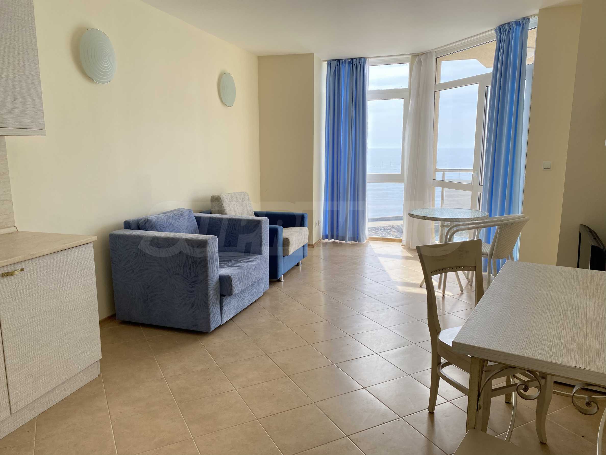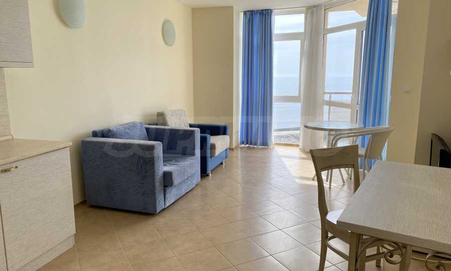 We present a one-bedroom apartment in a well-maintained gated complex, located on the seaside between Balchik and Kavarna, in the Ikantalaka area. The area is rich in natural landmarks, architectural sites, golf courses, SPA complexes and restaurants. Top location in a picturesque bay with pastoral landscapes, just 10 m from the beach.
