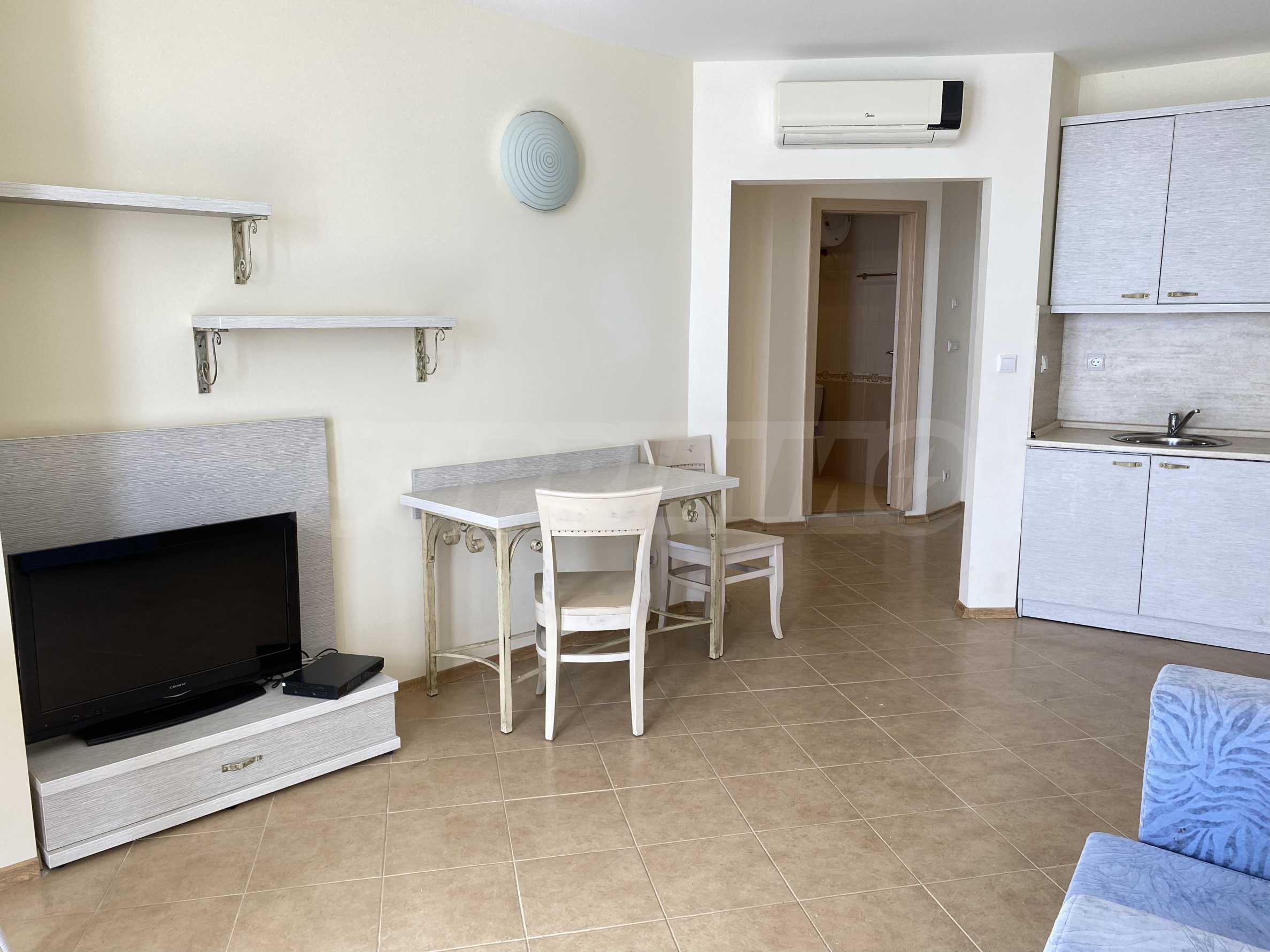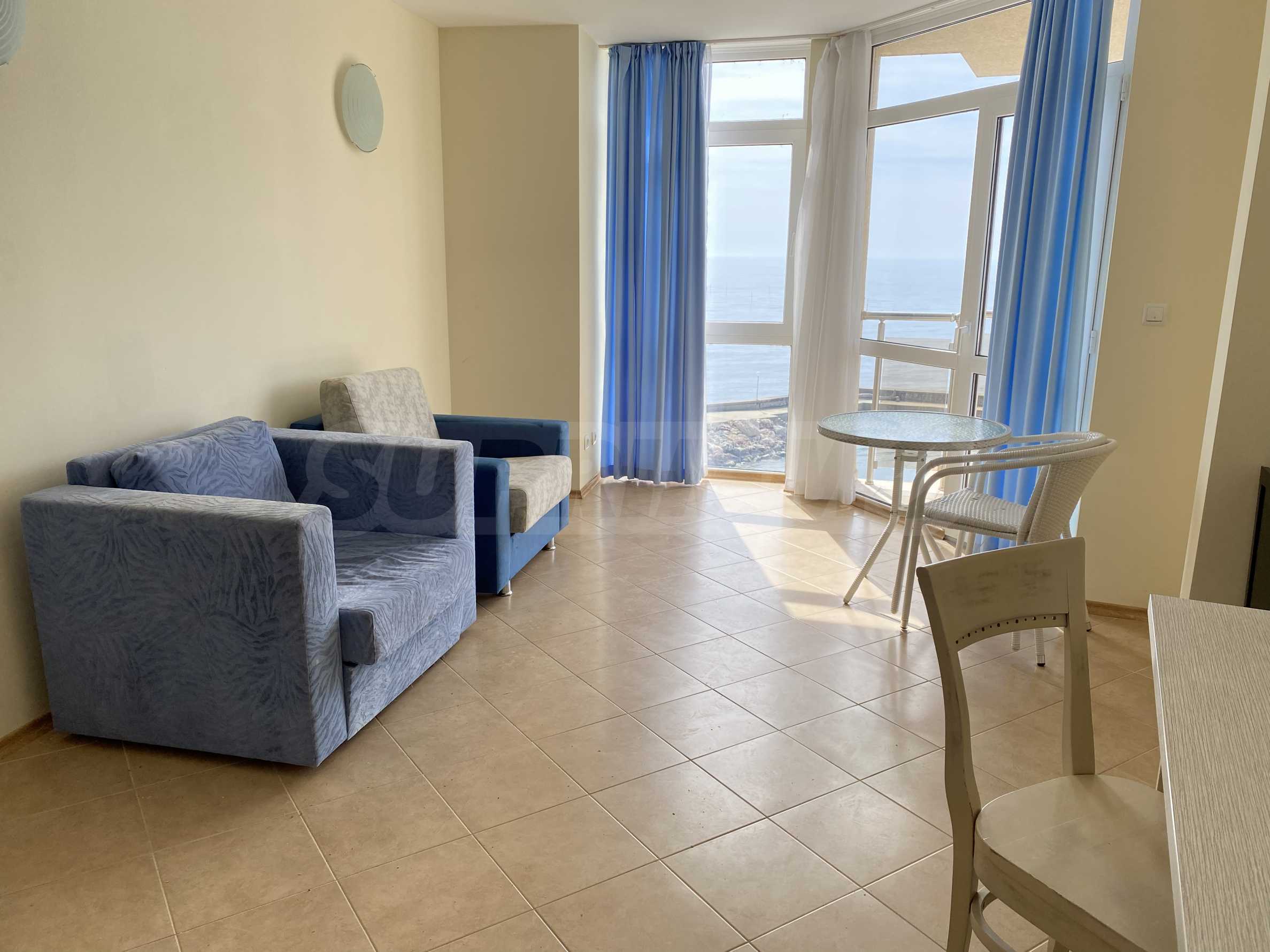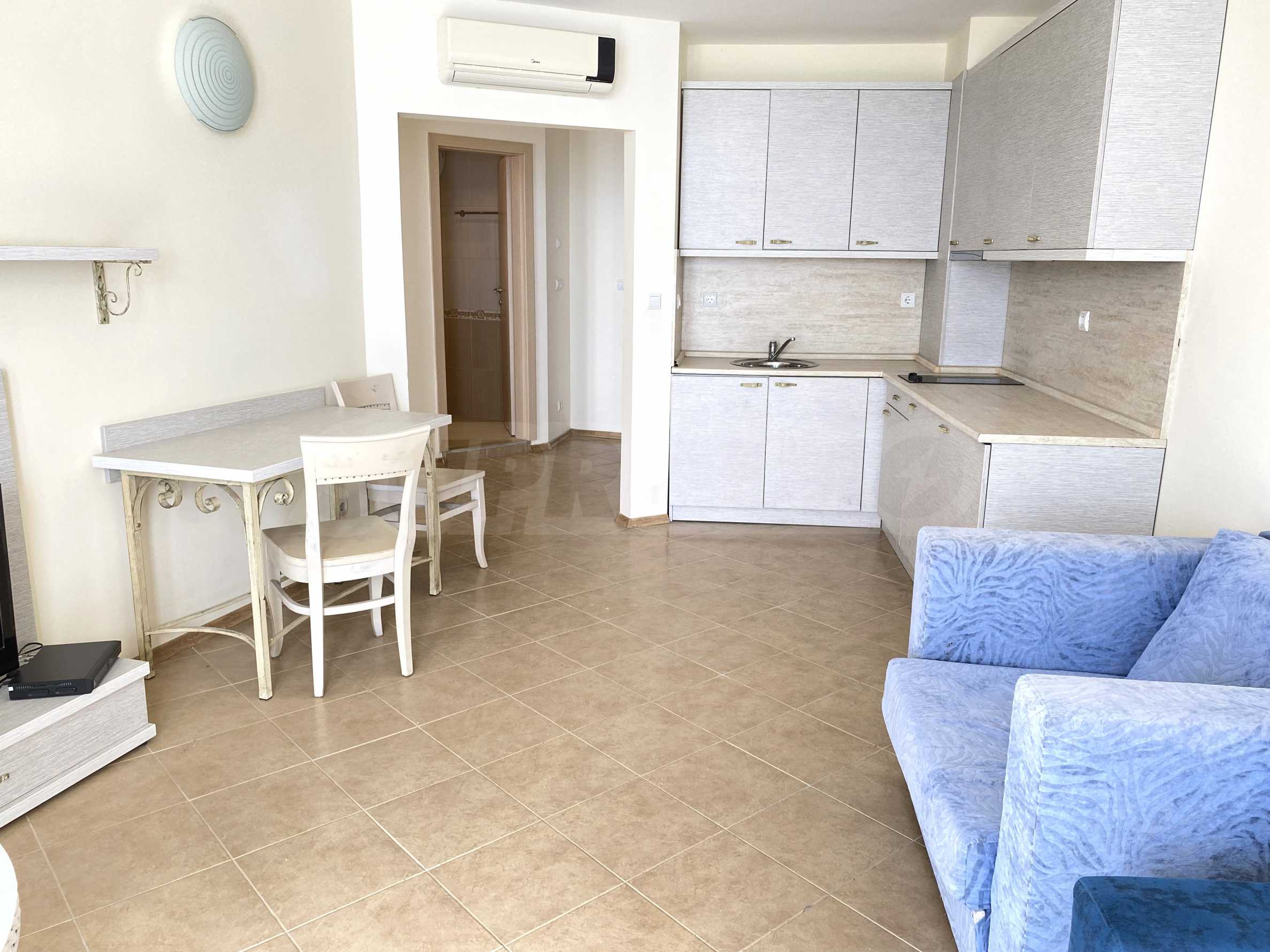 We present a one-bedroom apartment in a well-maintained gated complex, located on the seaside between Balchik and Kavarna, in the Ikantalaka area. The area is rich in natural landmarks, architectural sites, golf courses, SPA complexes and restaurants. Top location in a picturesque bay with pastoral landscapes, just 10 m from the beach.